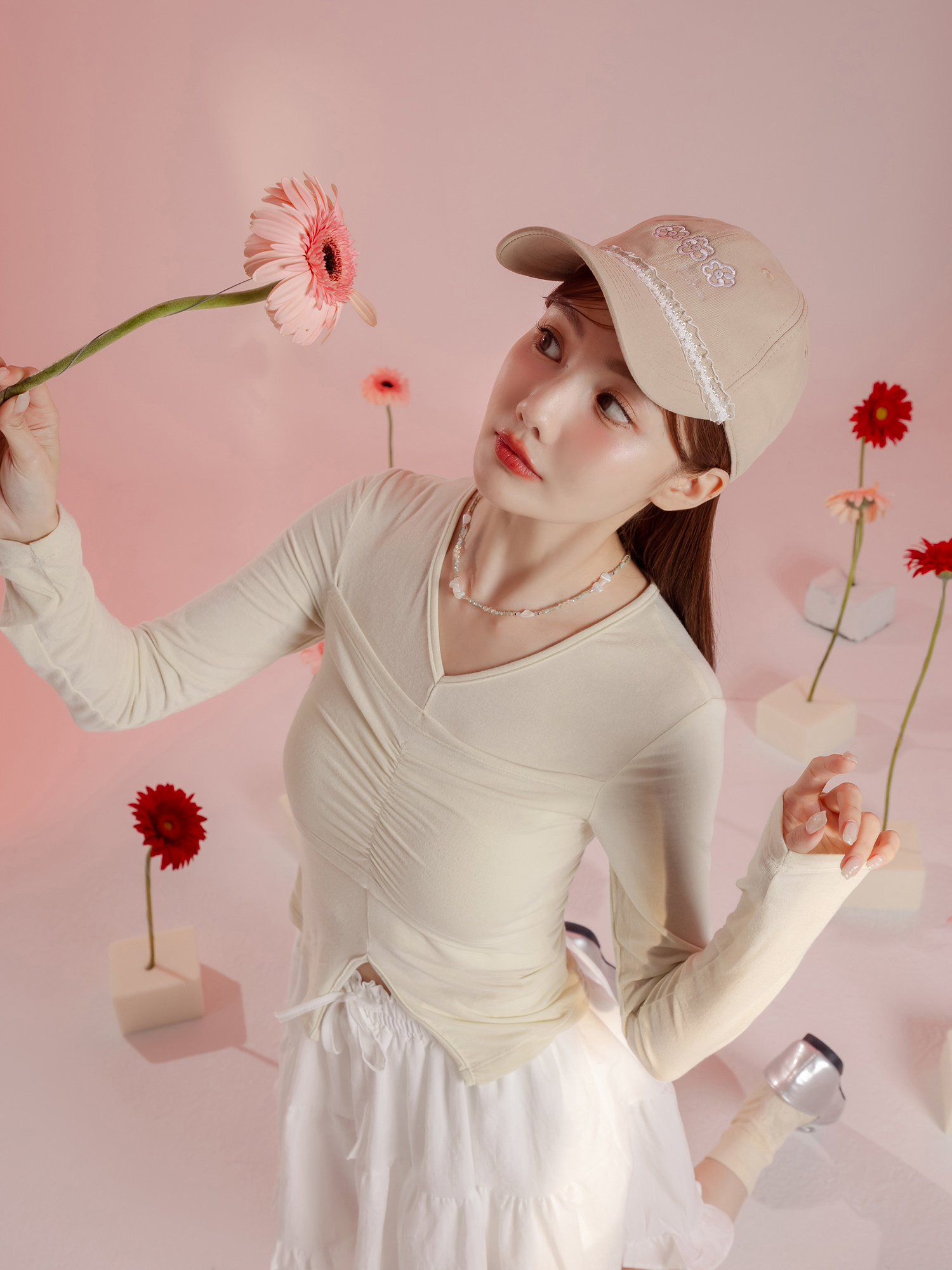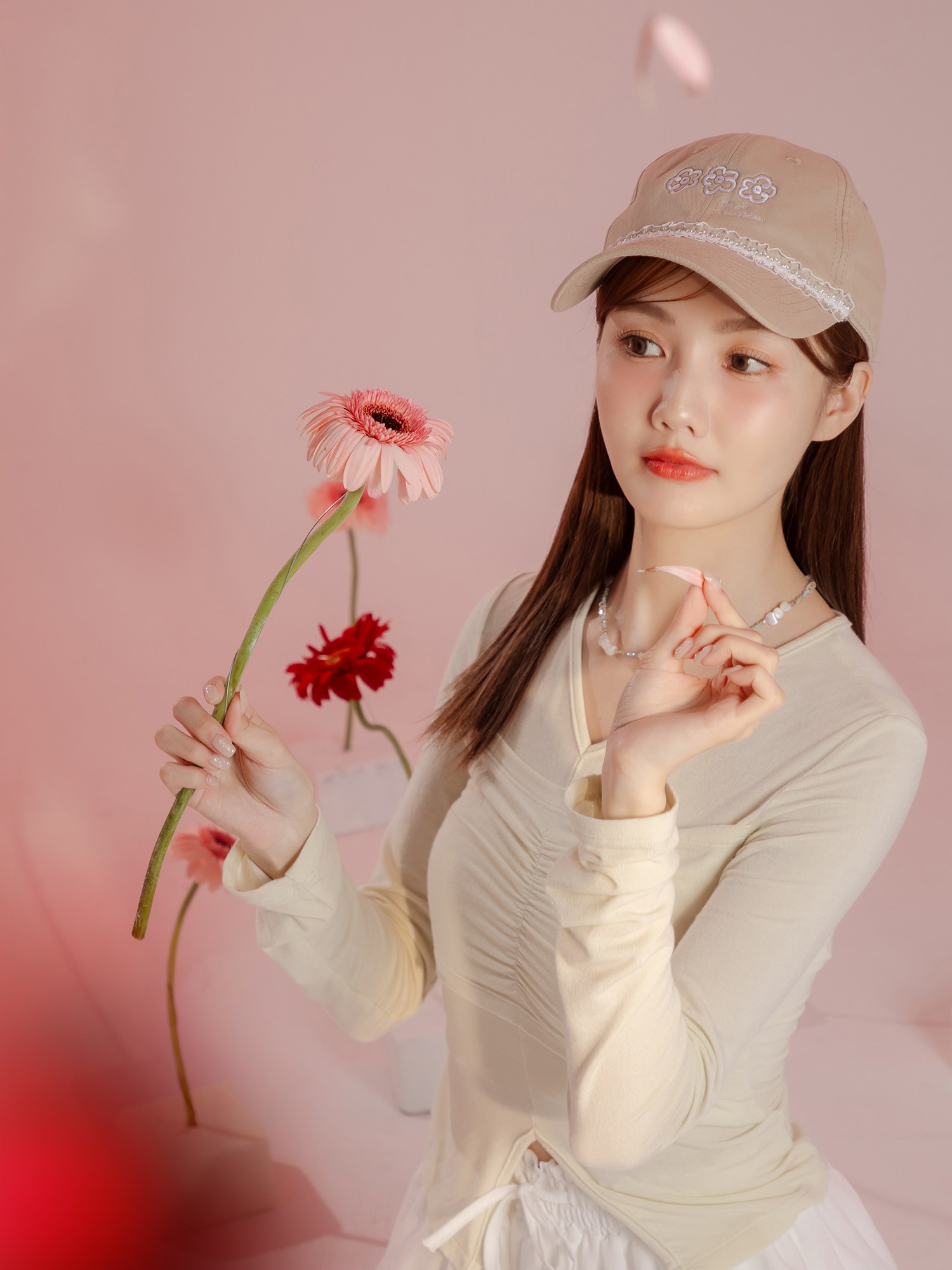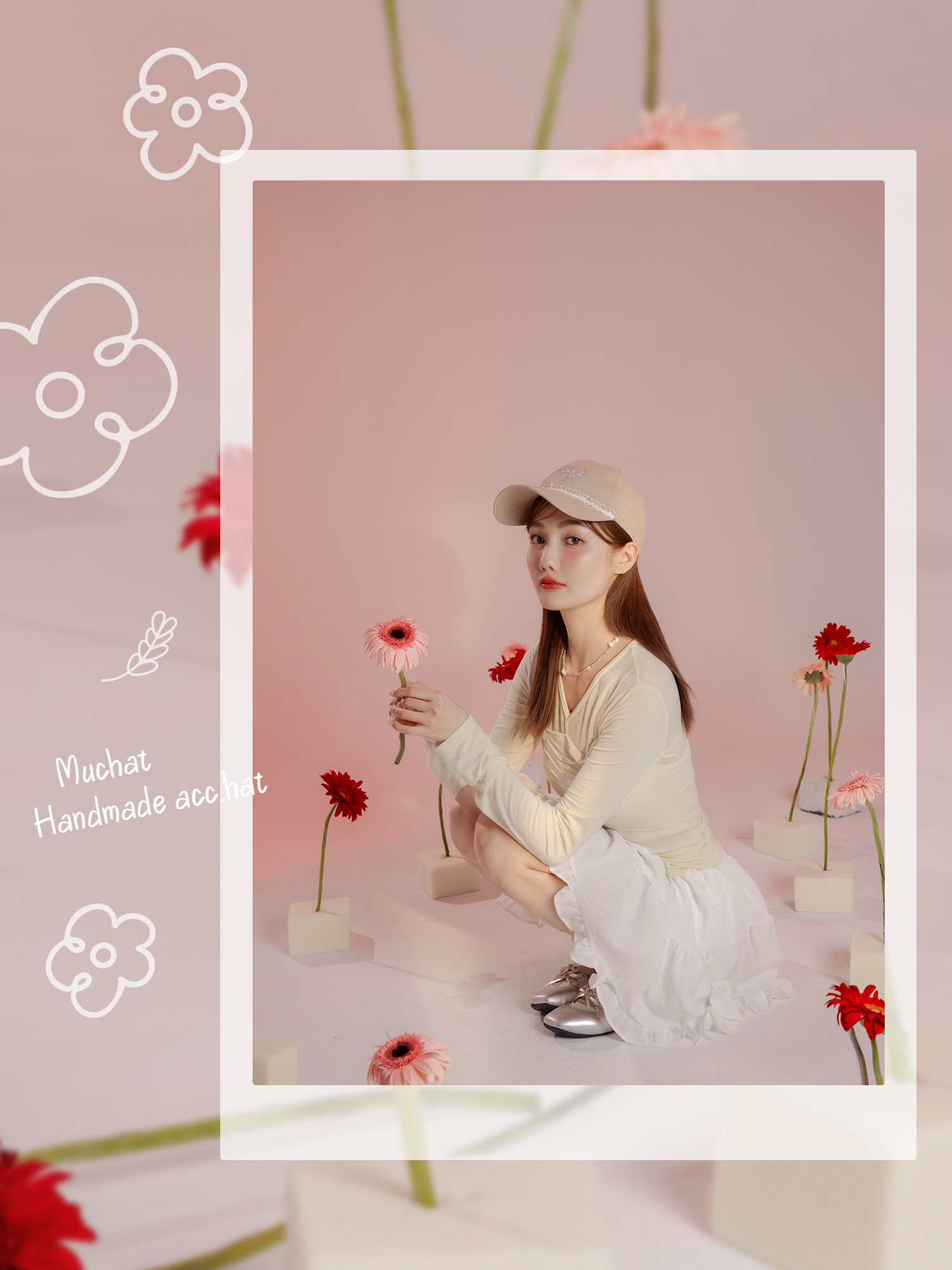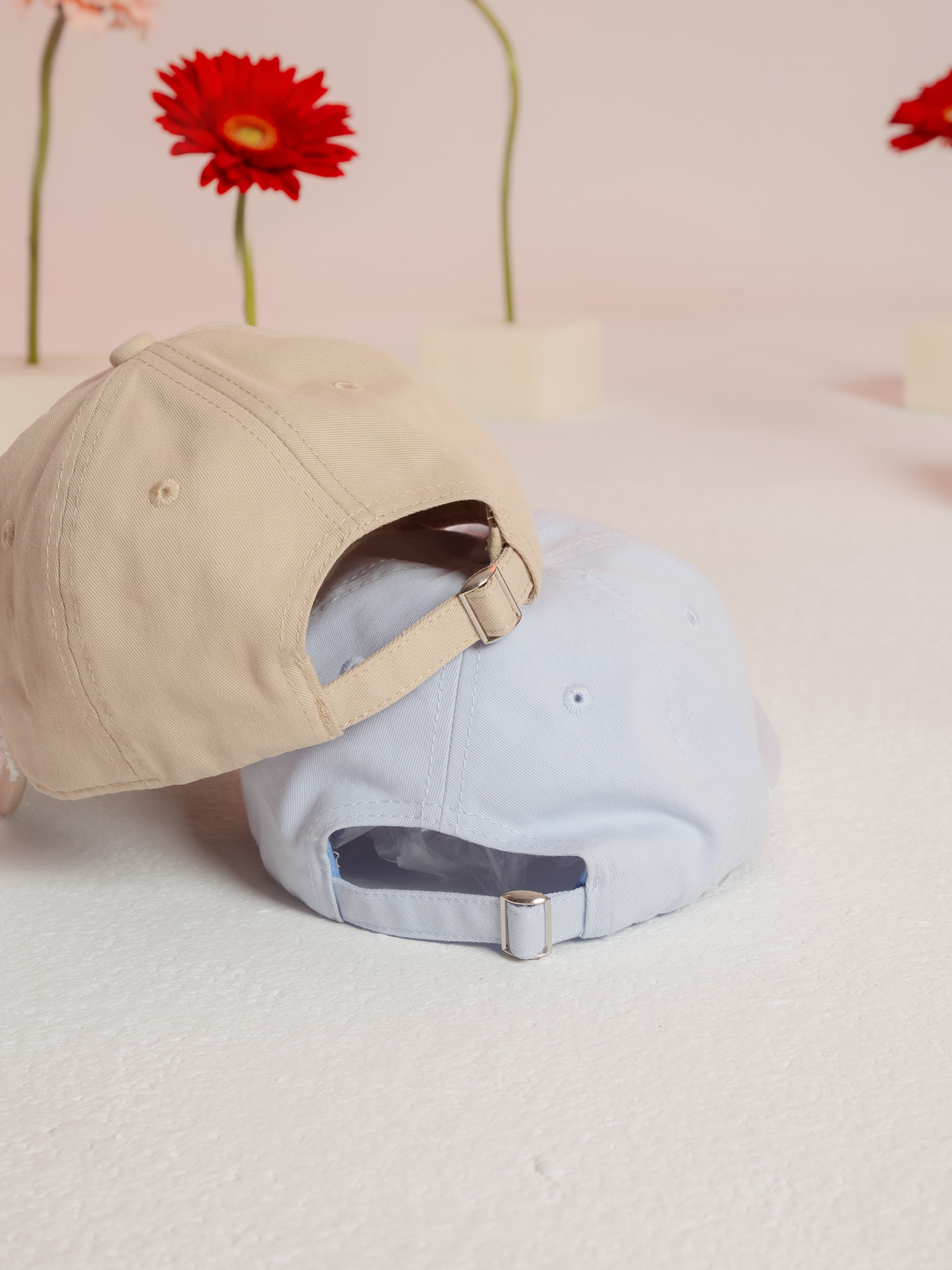 週末計畫。MUCHAT手作刺繡小花蕾絲棒球帽 (素帽卡其不含別針)