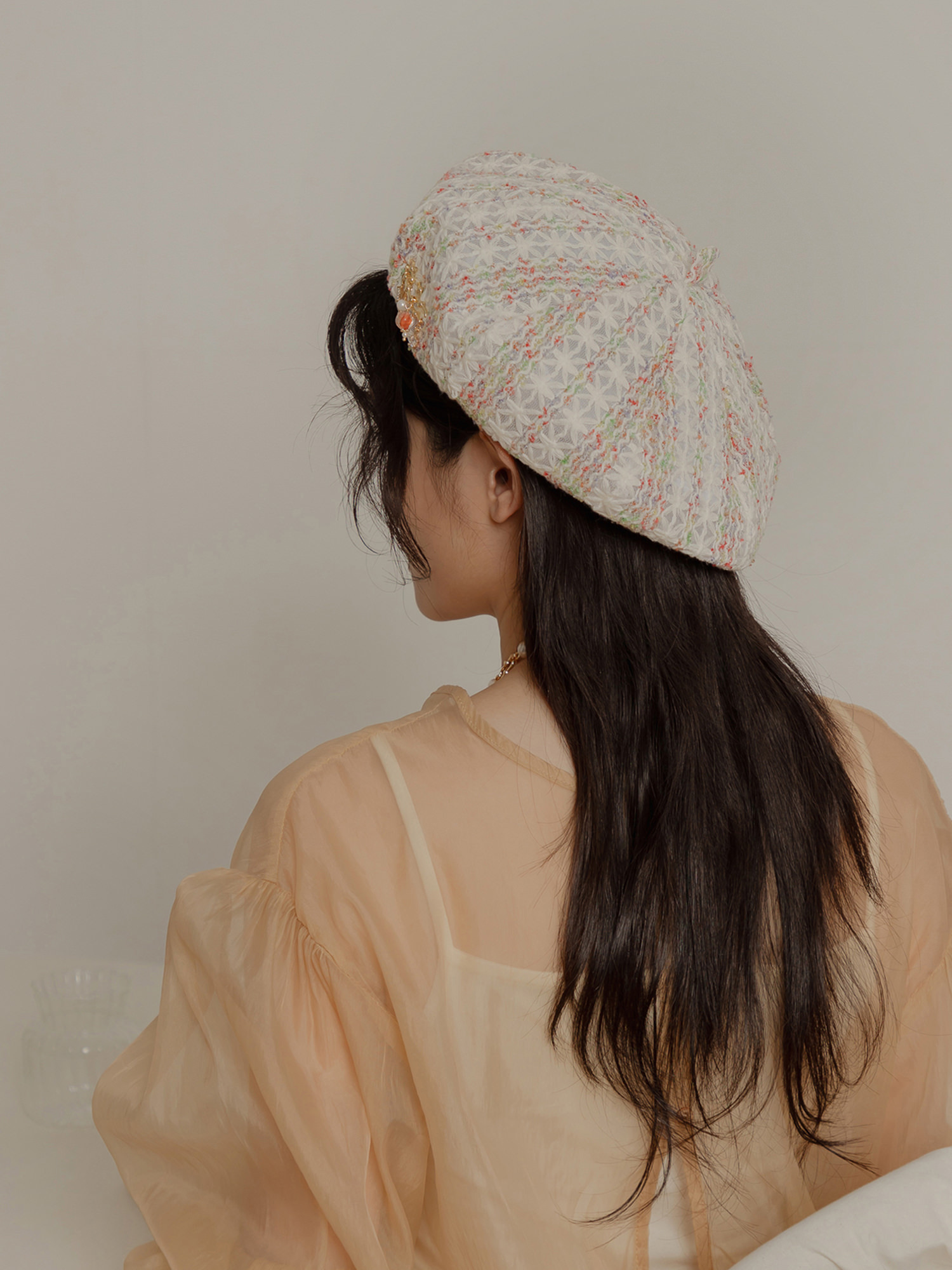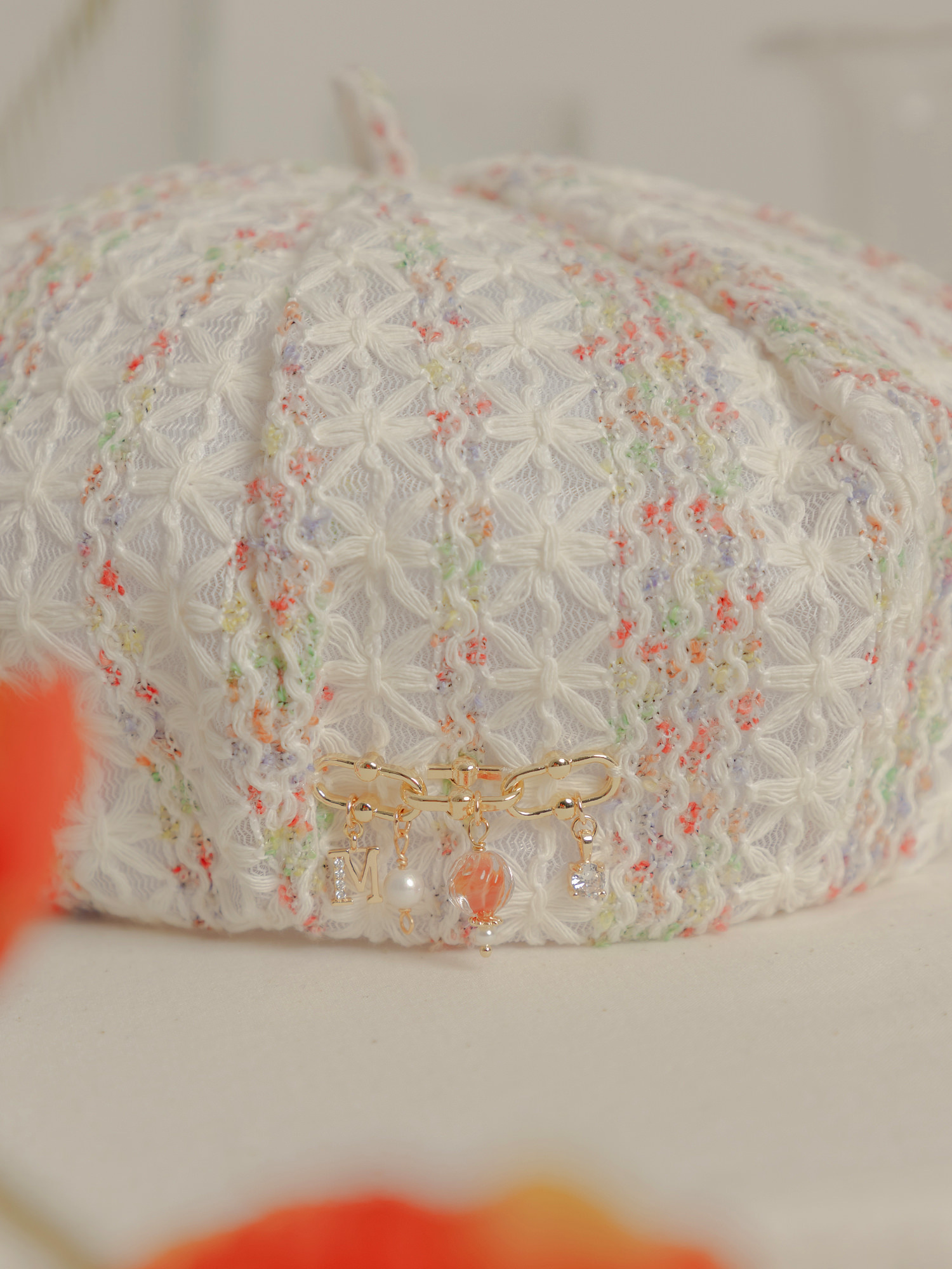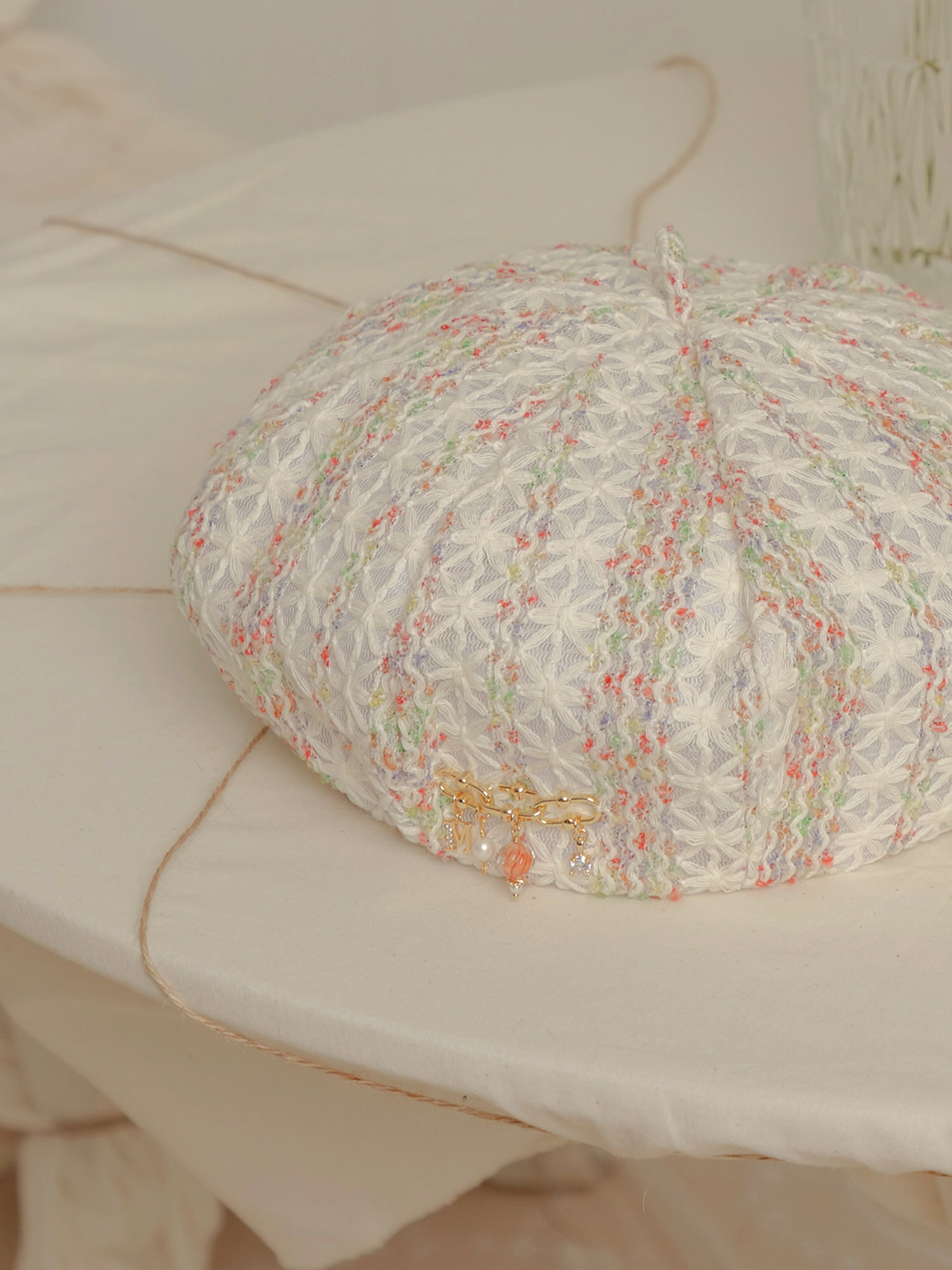 藝術油畫派。MUCHAT手作琉璃珠彩色編織貝蕾帽