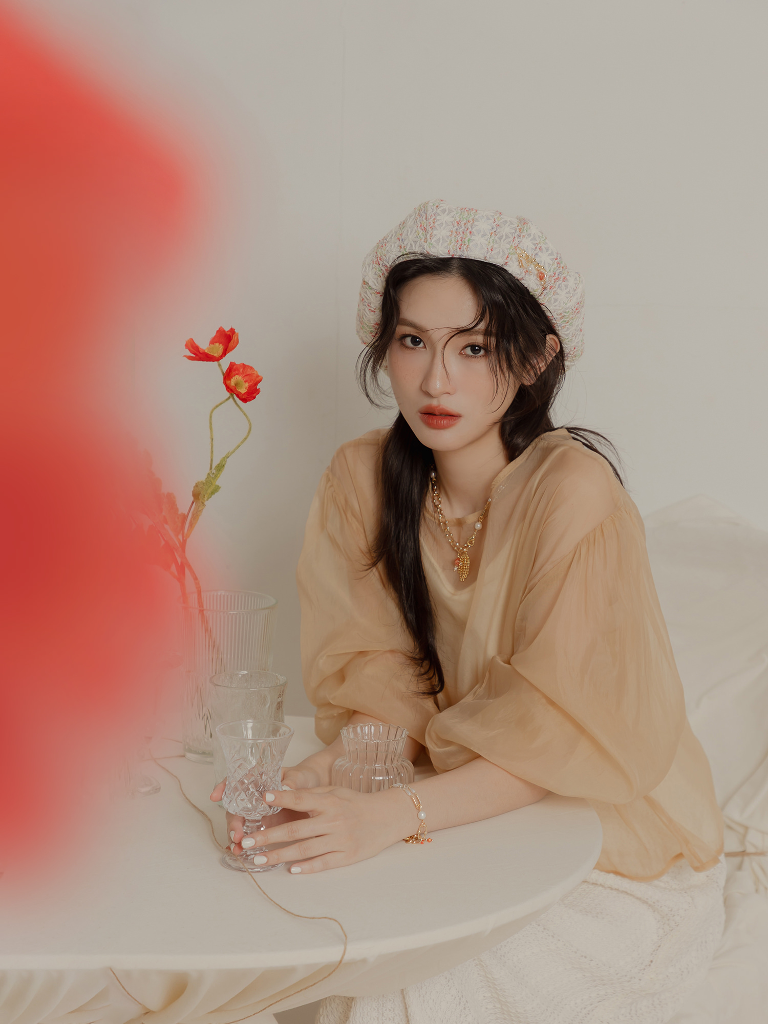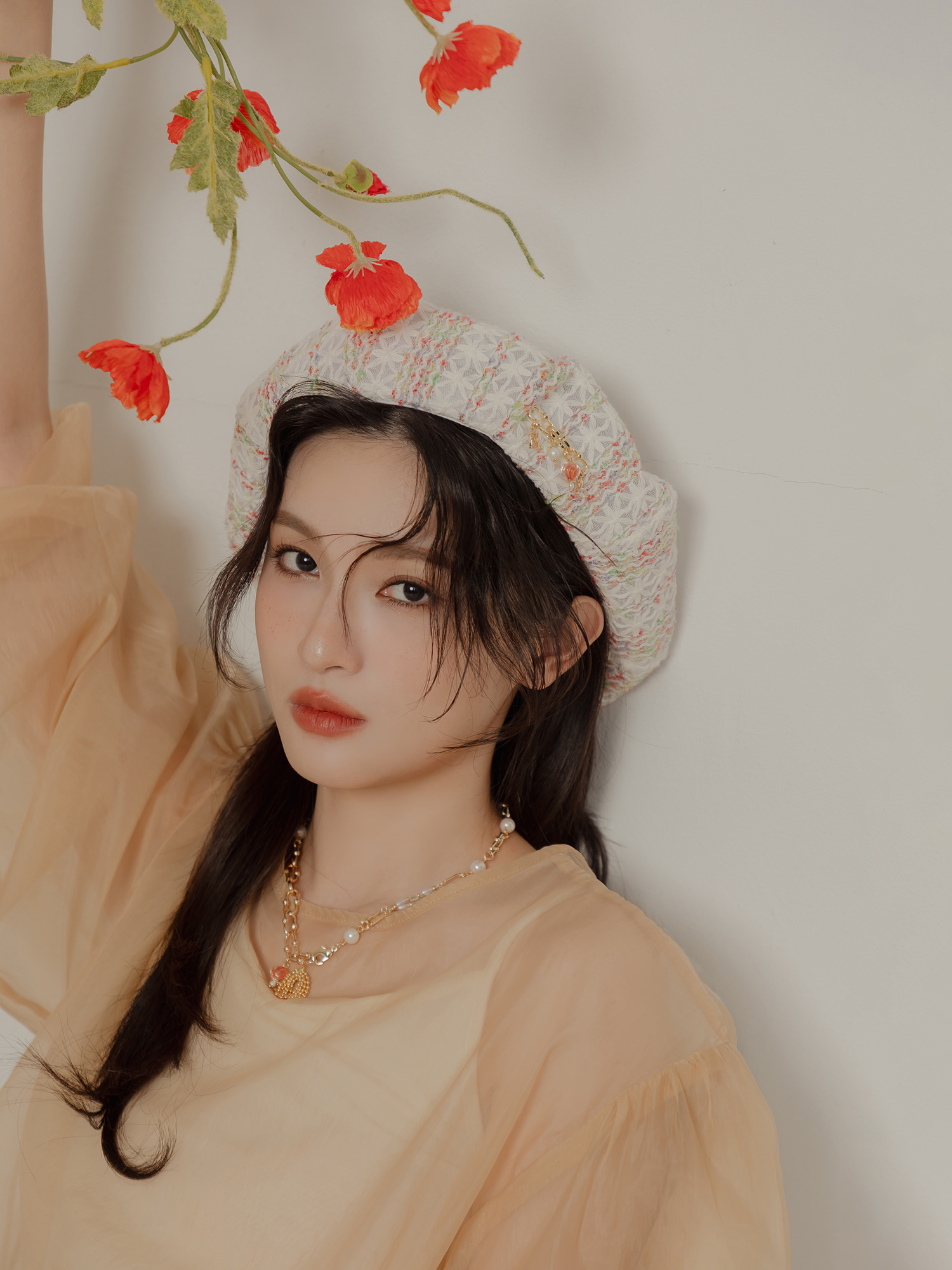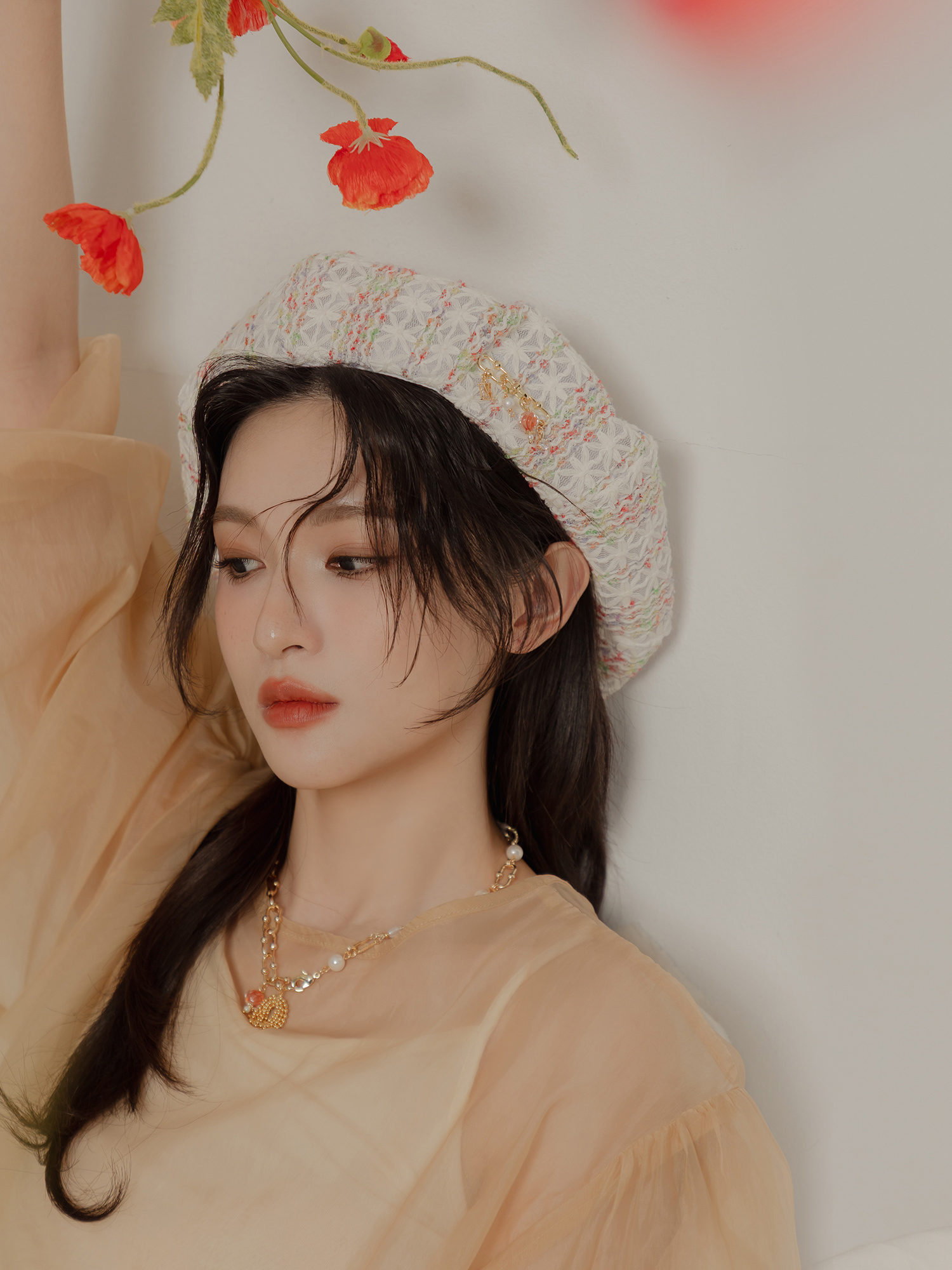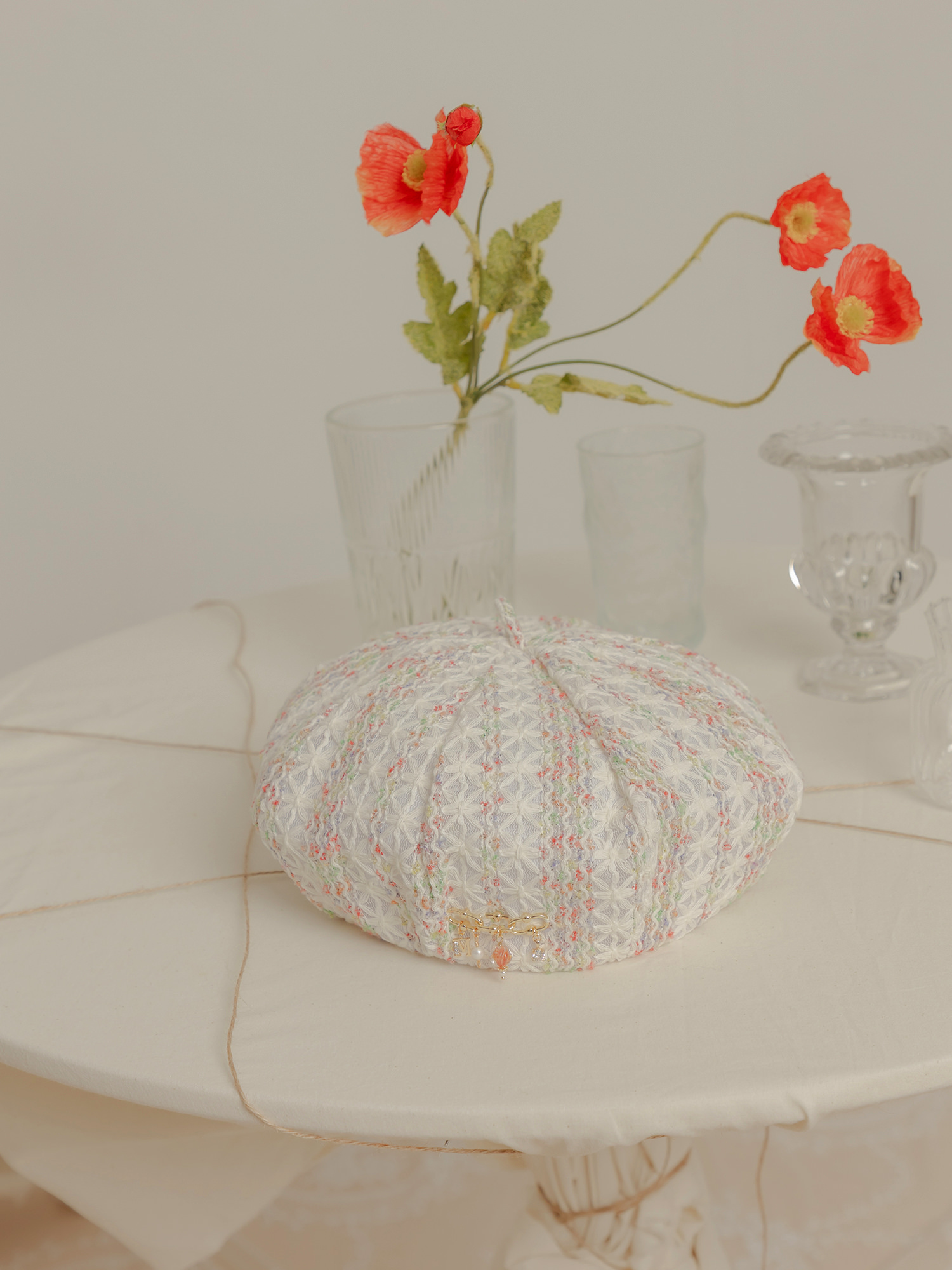 藝術油畫派。MUCHAT手作琉璃珠彩色編織貝蕾帽