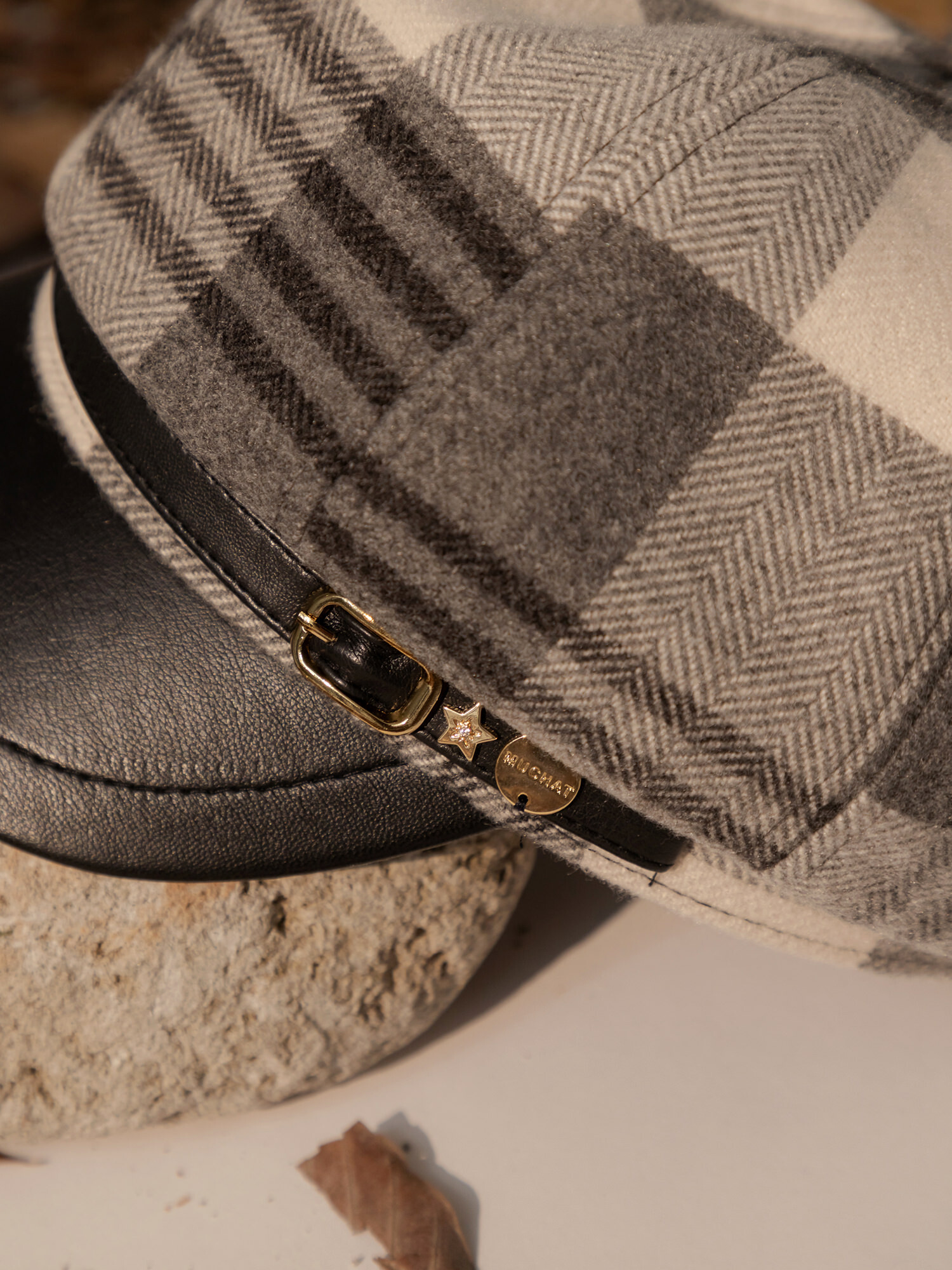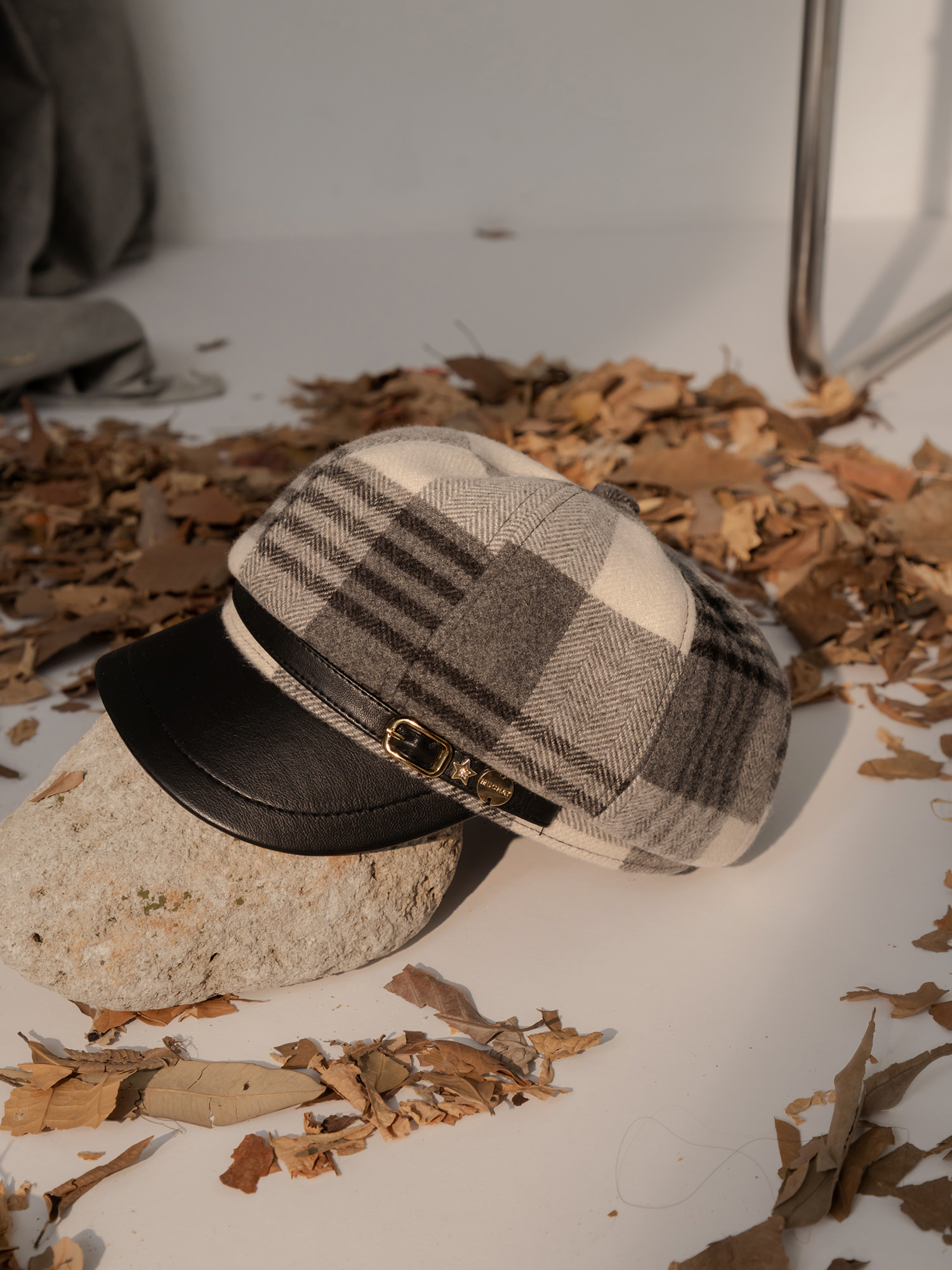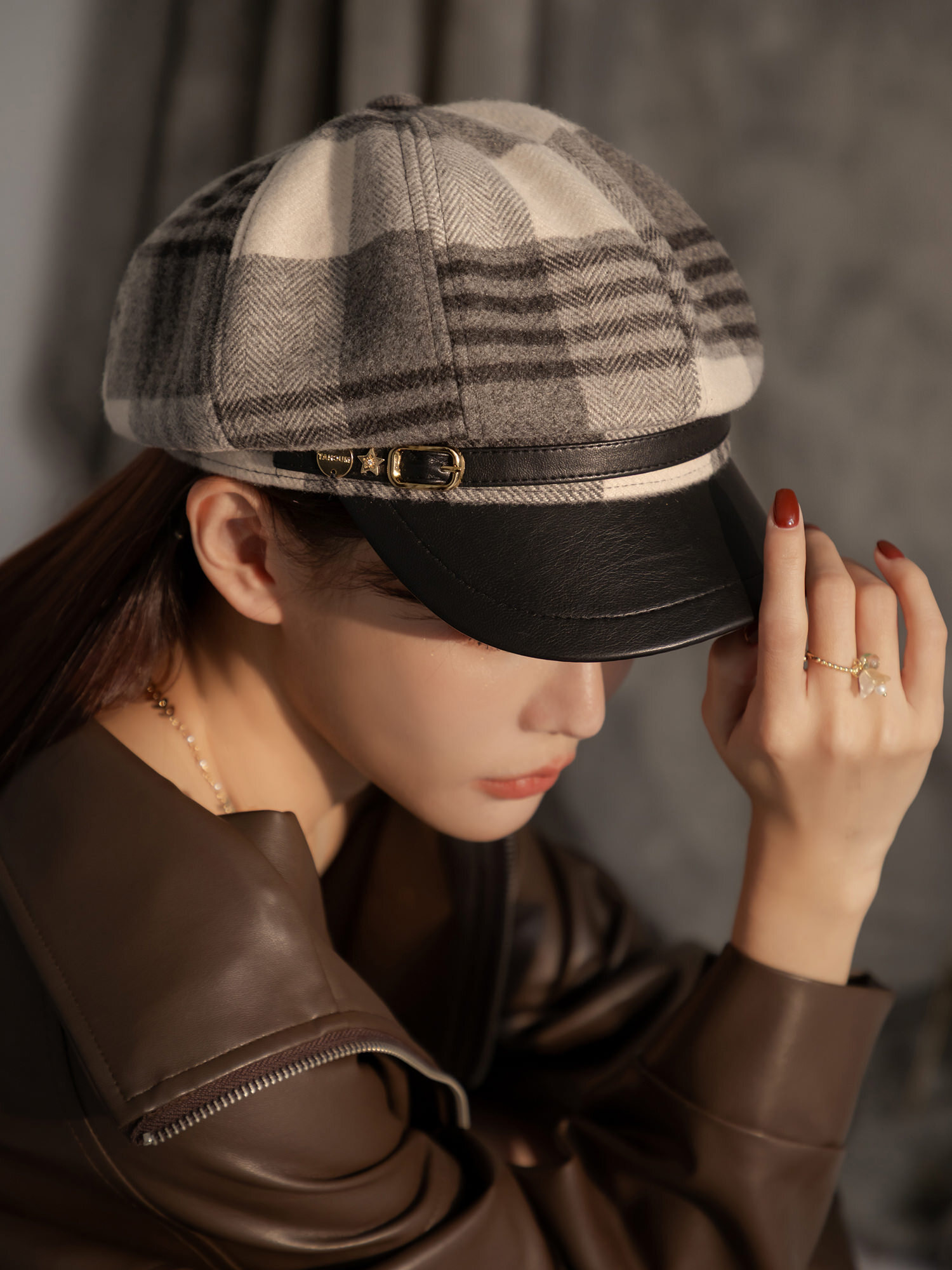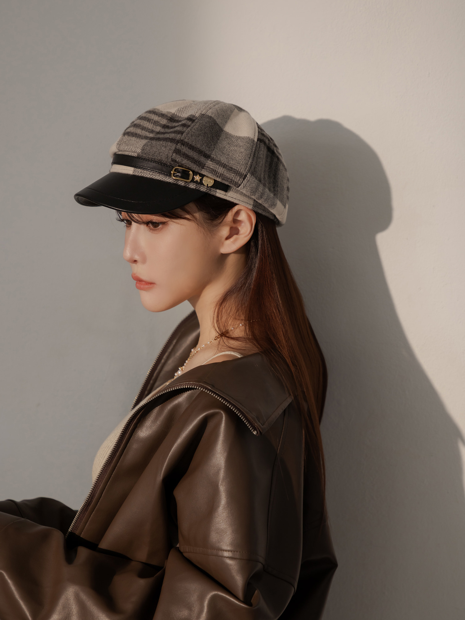 行李已過期。MUCHAT手作星星格紋皮革報童帽