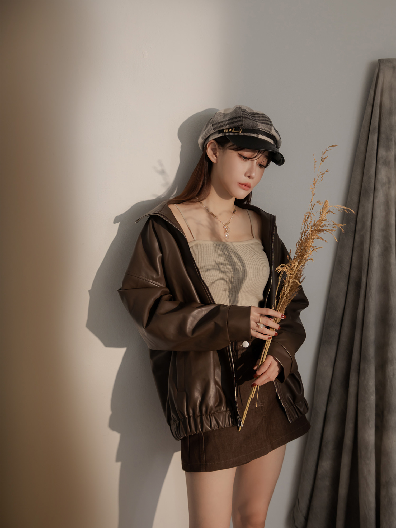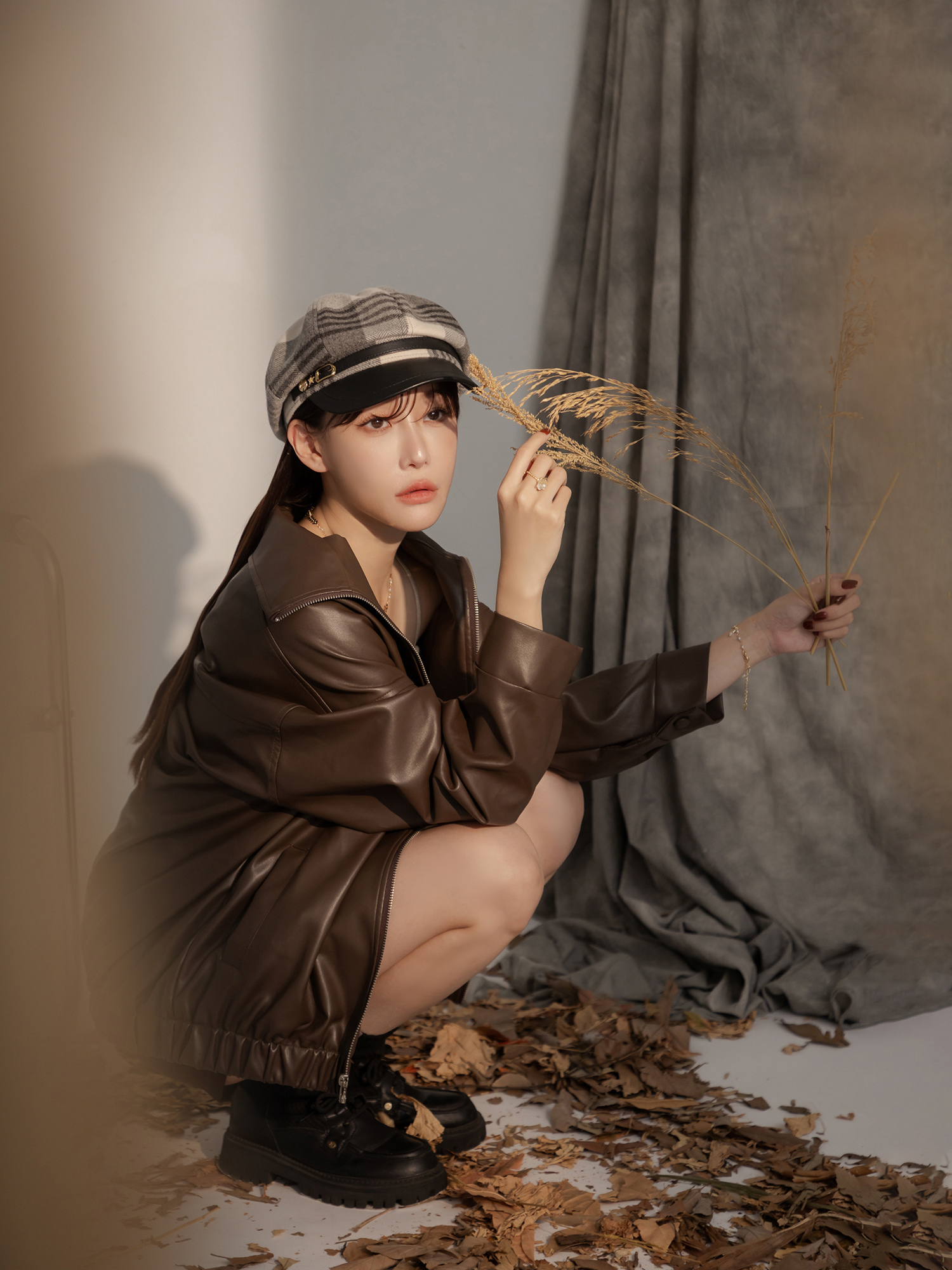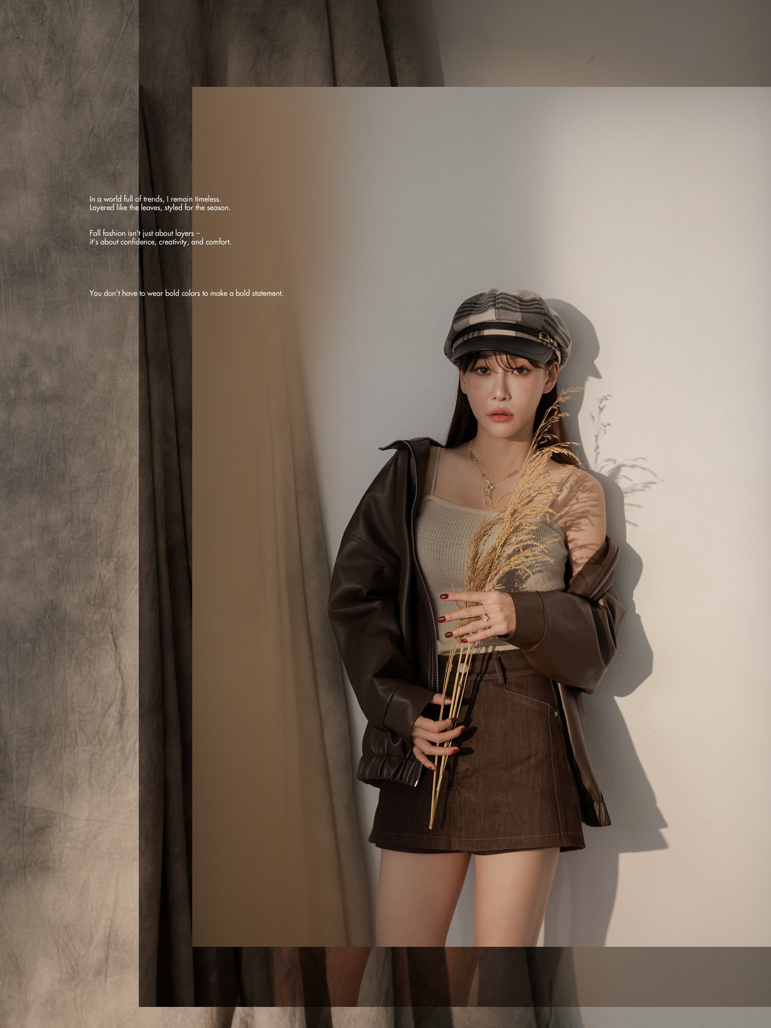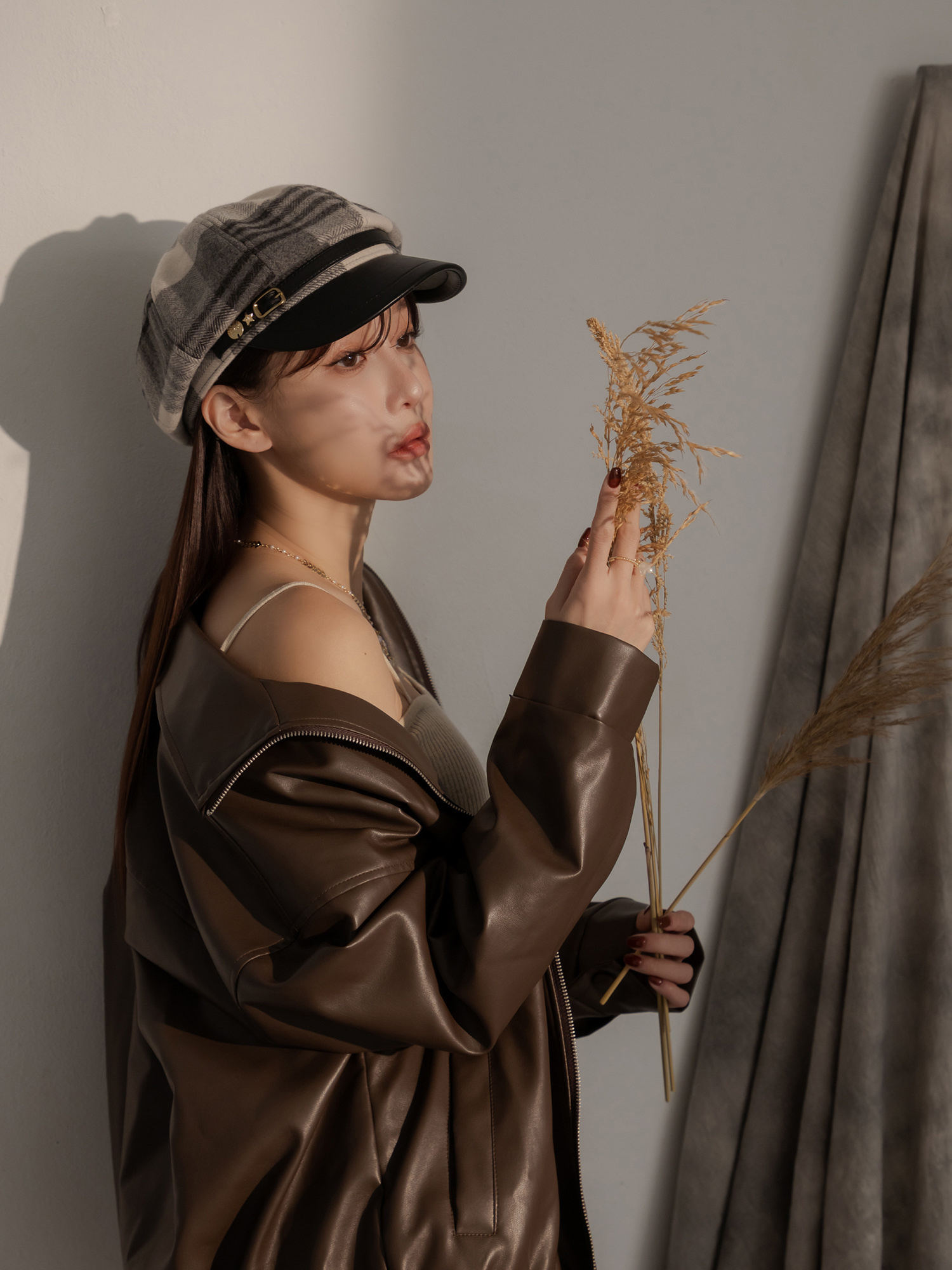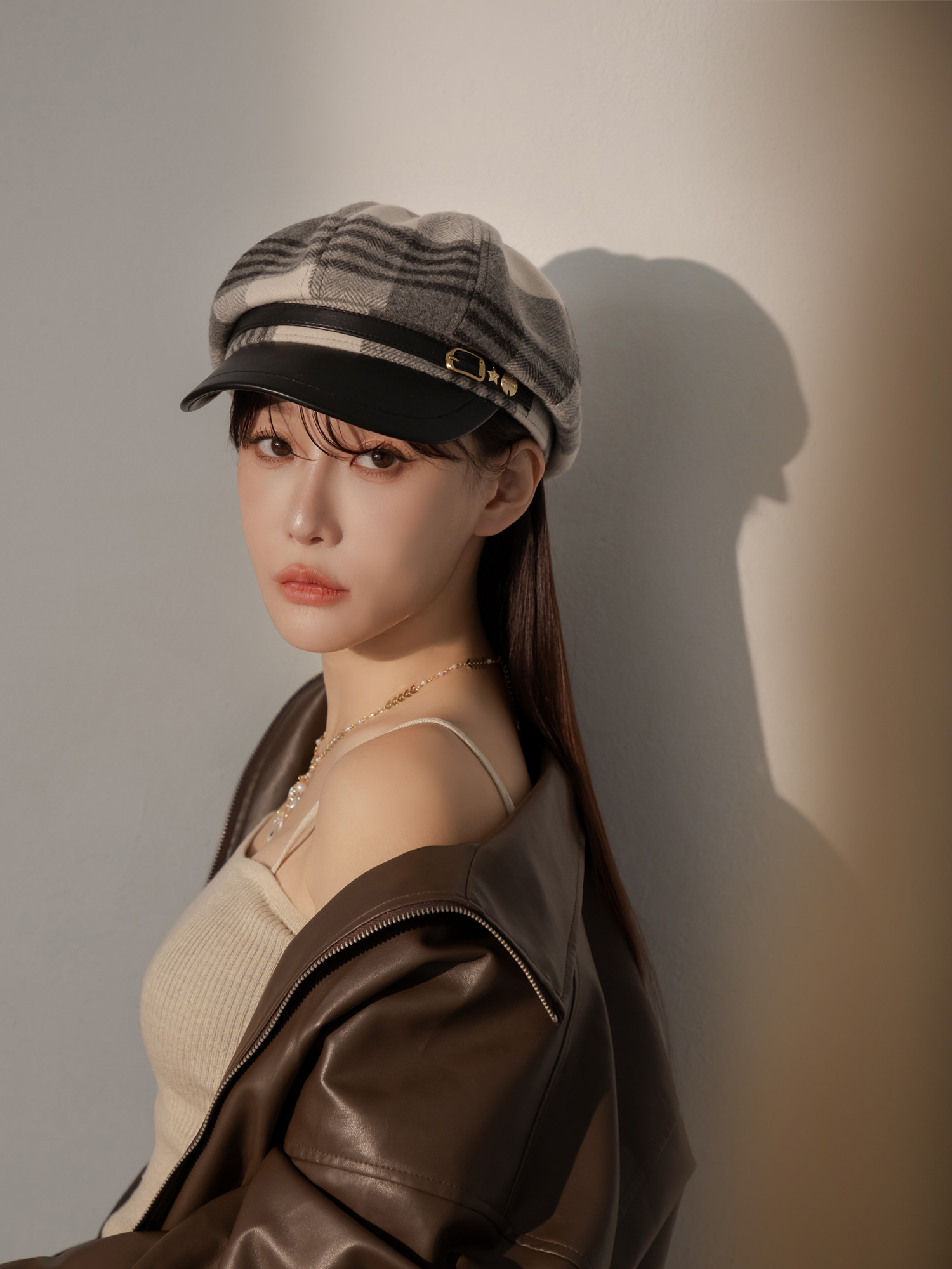 行李已過期。MUCHAT手作星星格紋皮革報童帽