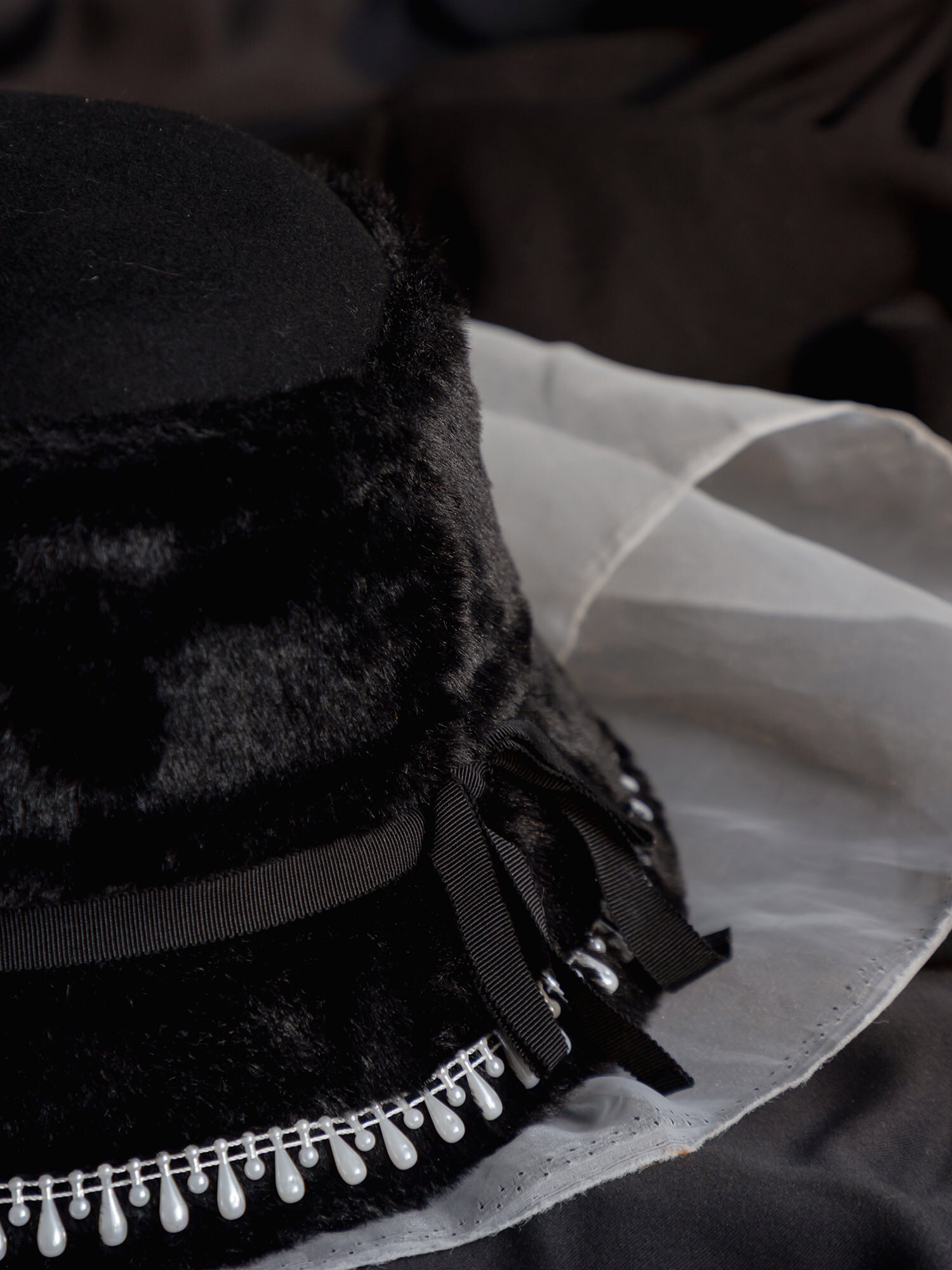 ▸ 素材:銅鍍14KGP、100%羊毛、緞帶、仿珠、聚酯纖維等複合材質