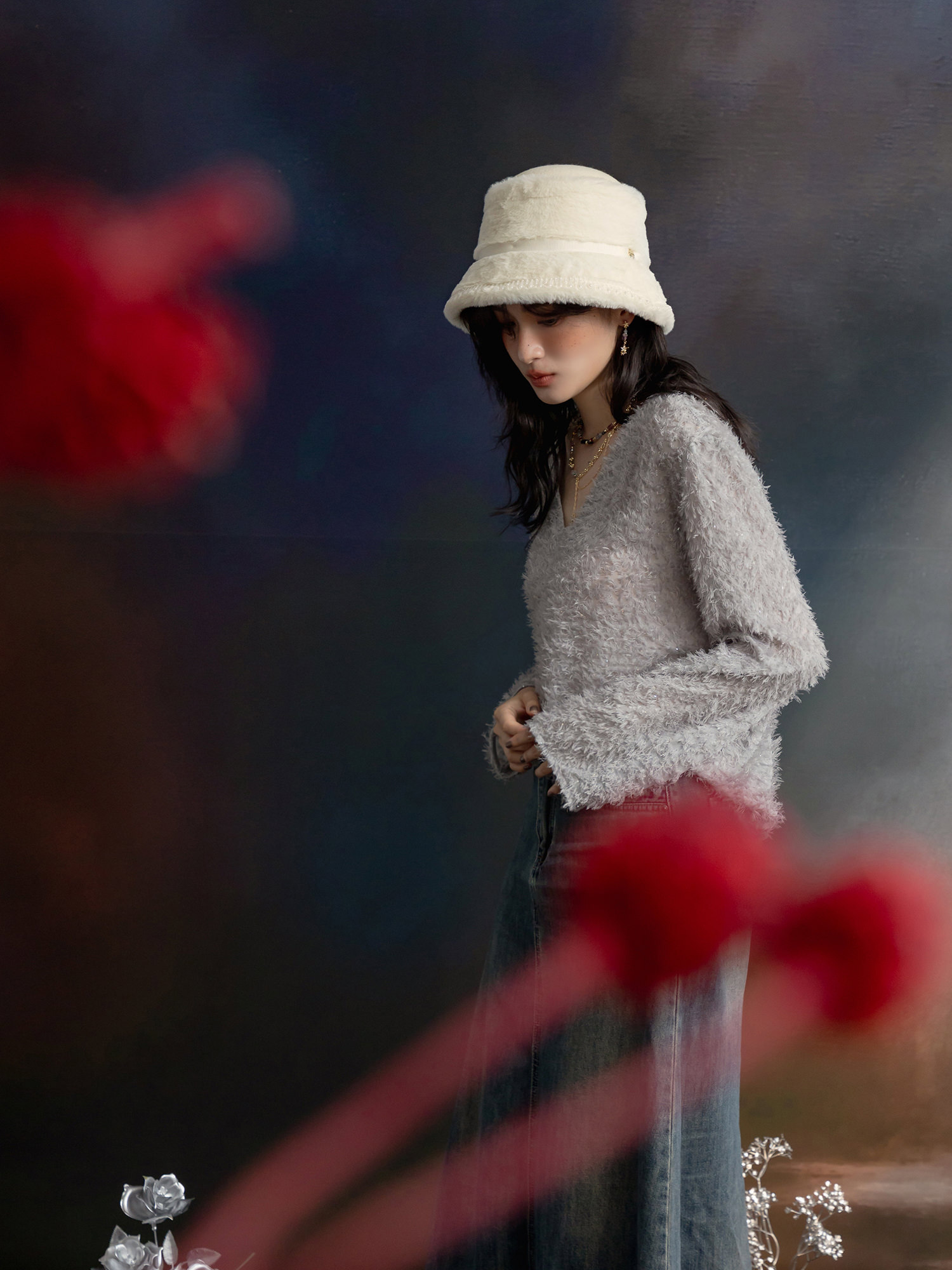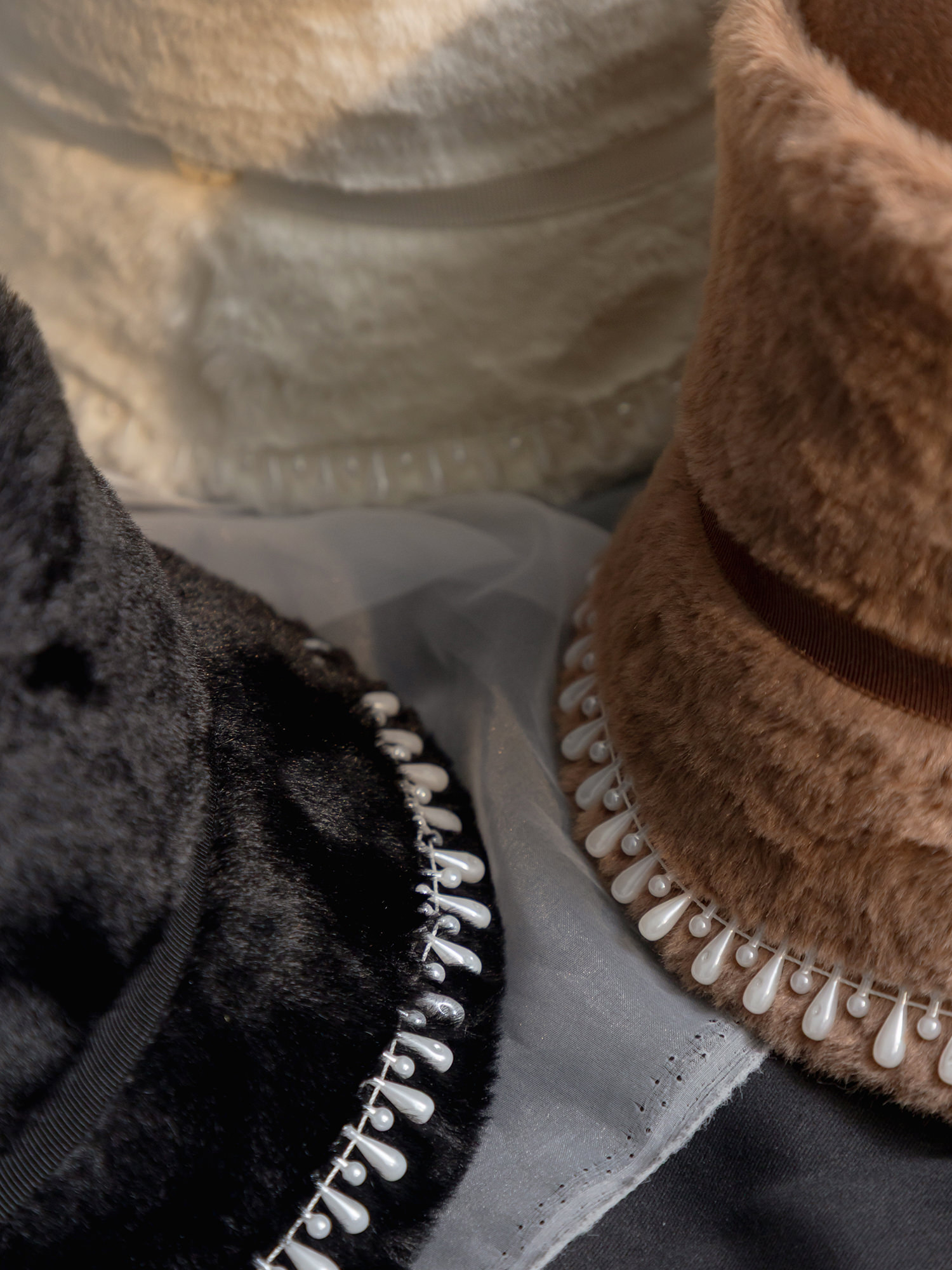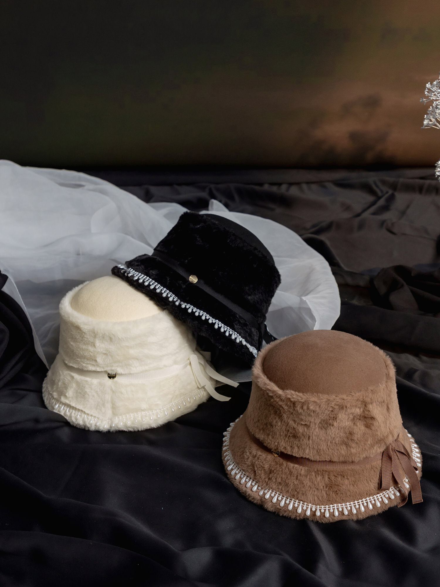 馬格畫作。MUCHAT手作珍珠蝶結毛呢淑女帽 (米白)