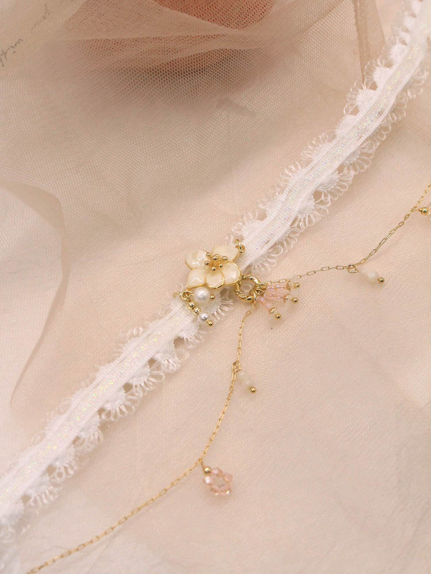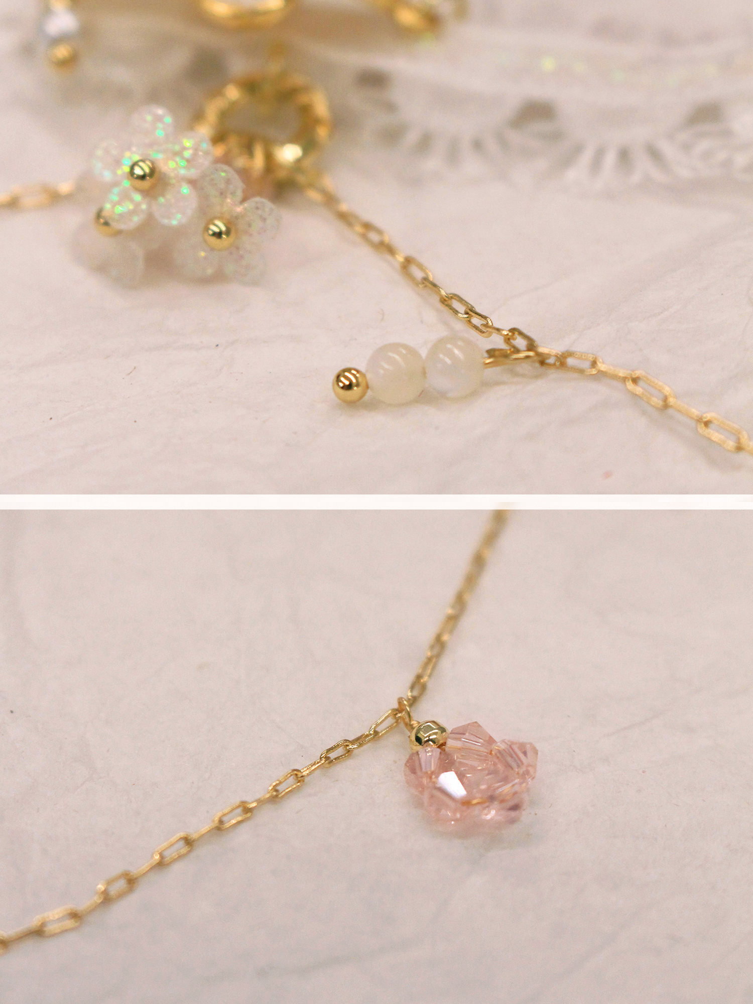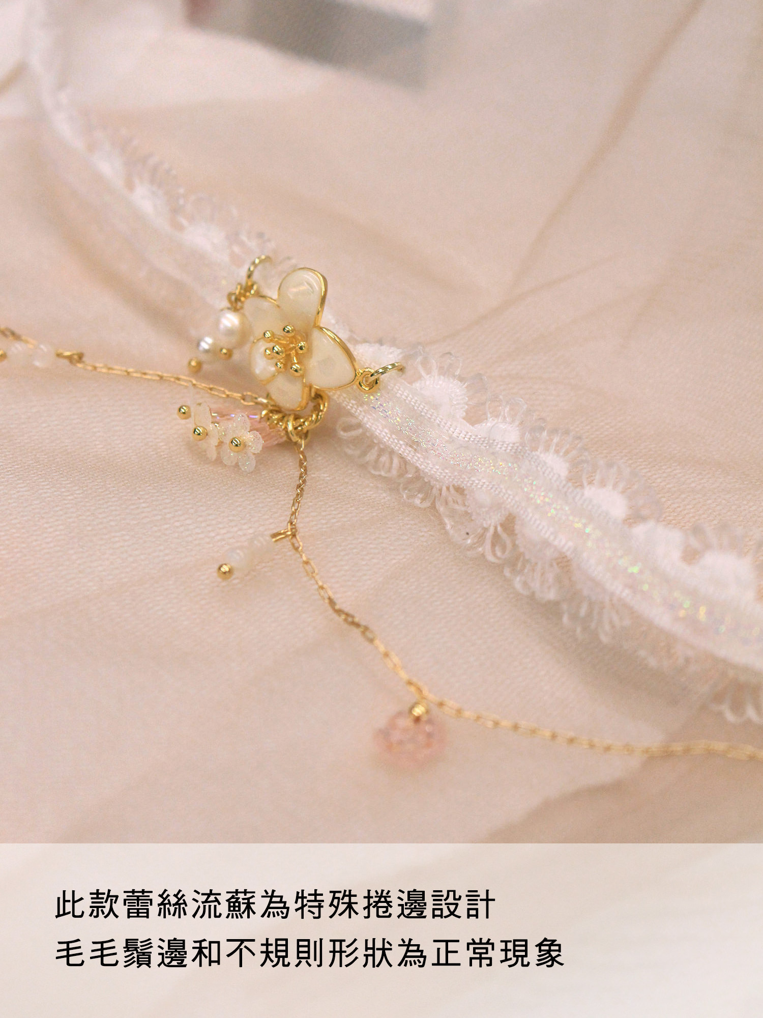 ▸ 素材:銅鍍14KGP 、天然貝殼珠、亮片、仿珠、釉料、聚酯纖維等複合材質