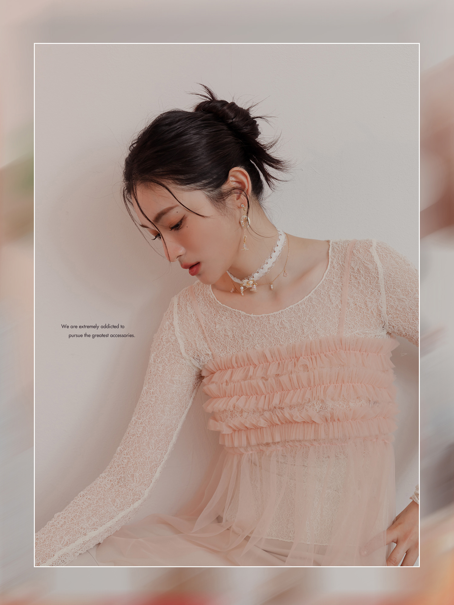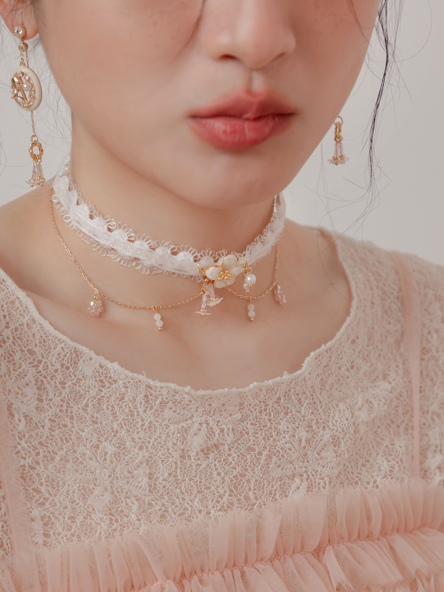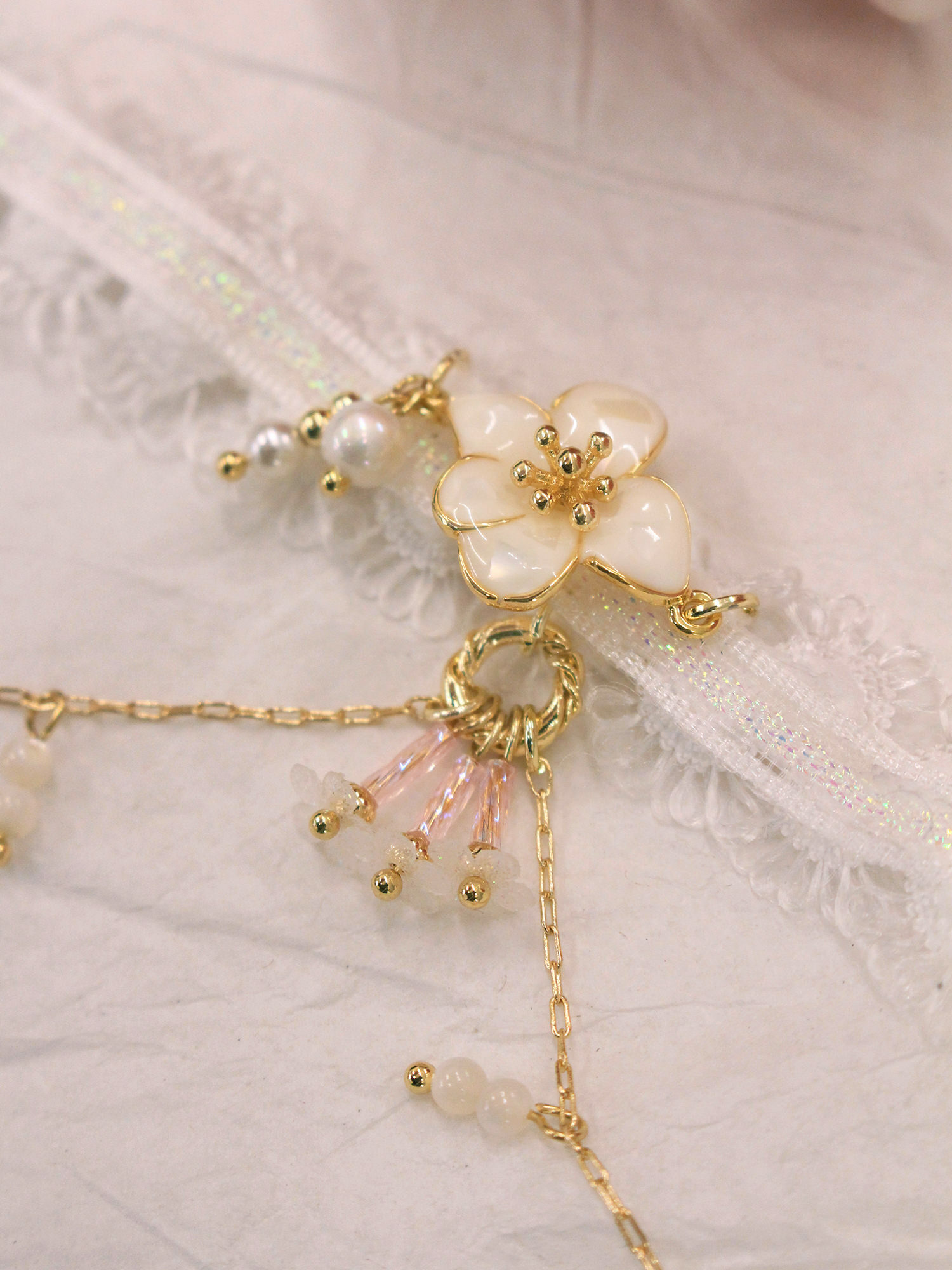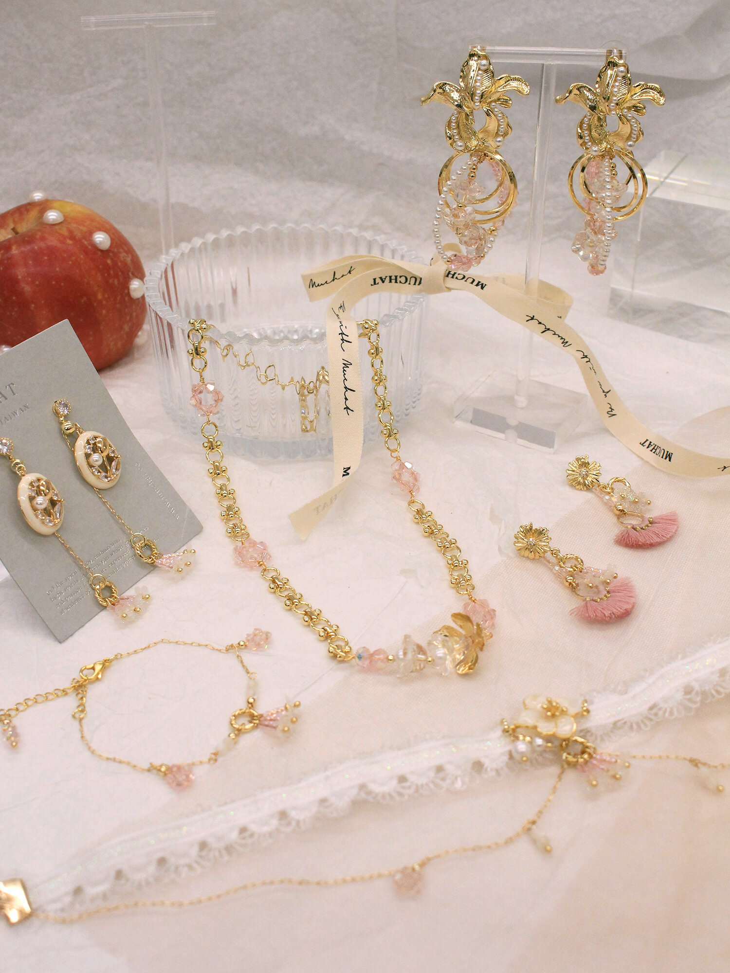 ▸ 素材:銅鍍14KGP 、天然貝殼珠、亮片、仿珠、釉料、聚酯纖維等複合材質