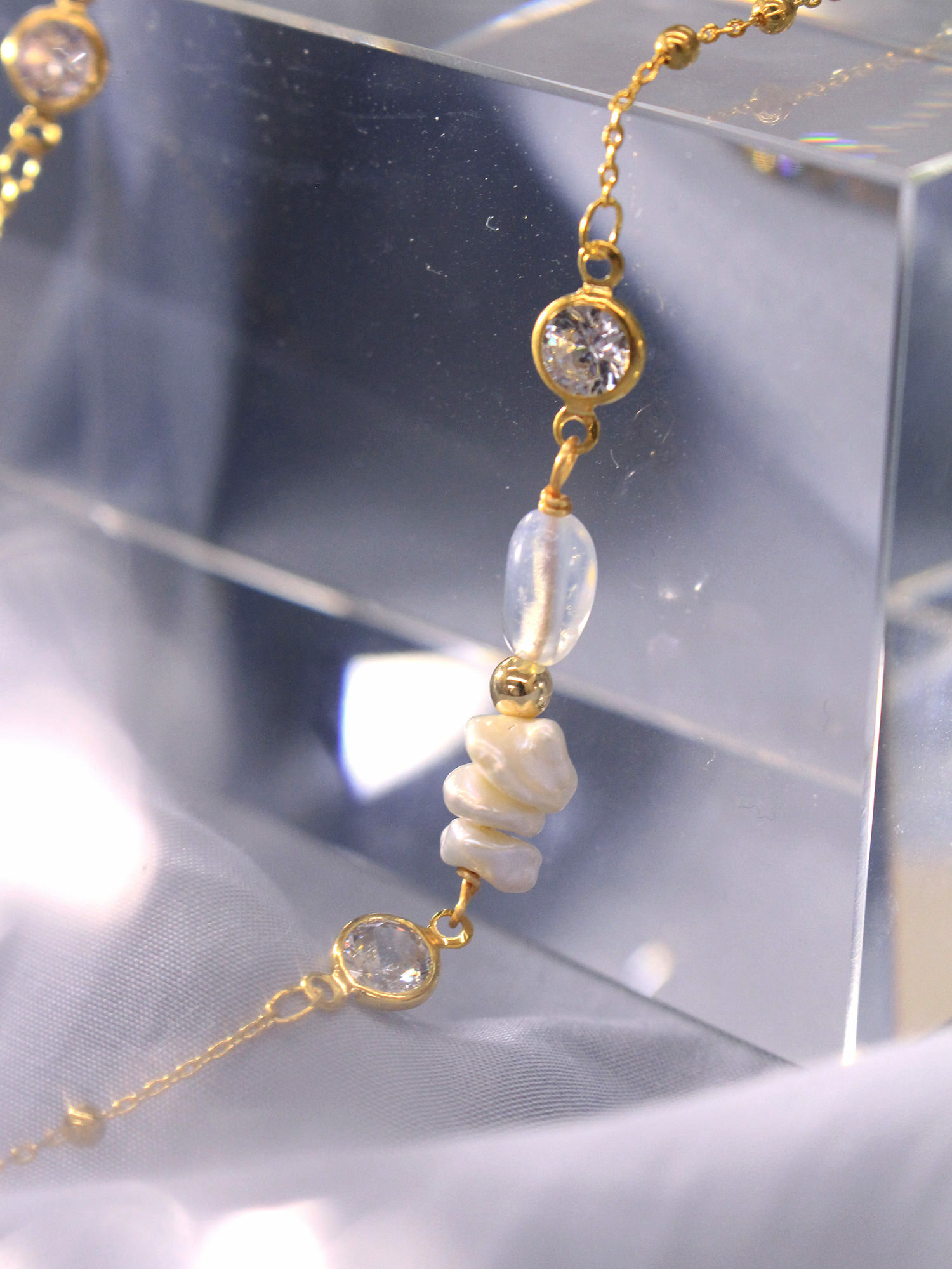 ▸ 素材:銅鍍14+18KGP、天然淡水珍珠、施華洛水晶角珠、蛋白石、白水晶、閃靈鑽、鋯石等複合材質