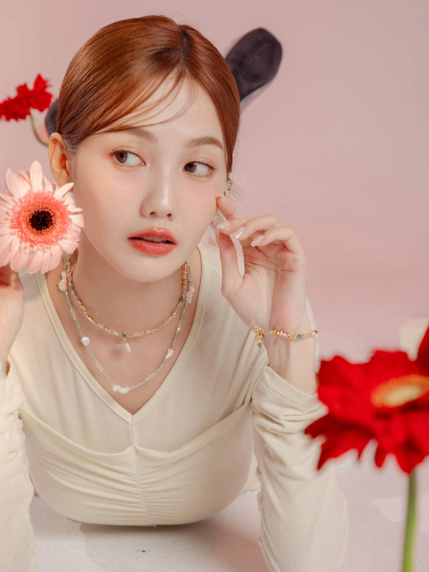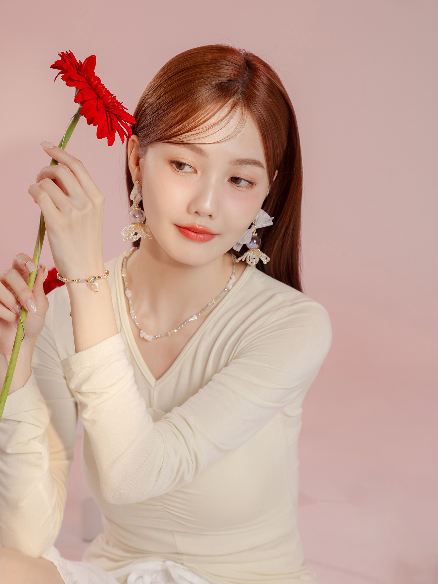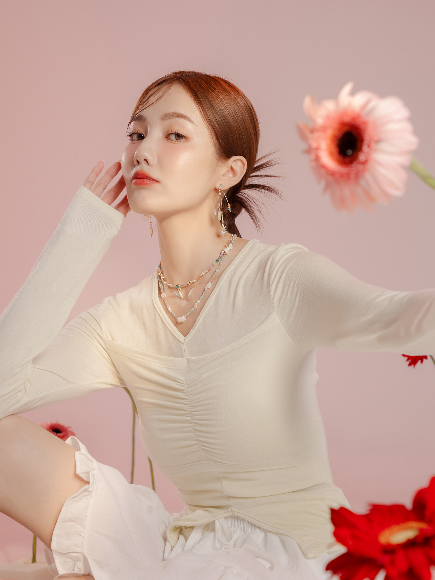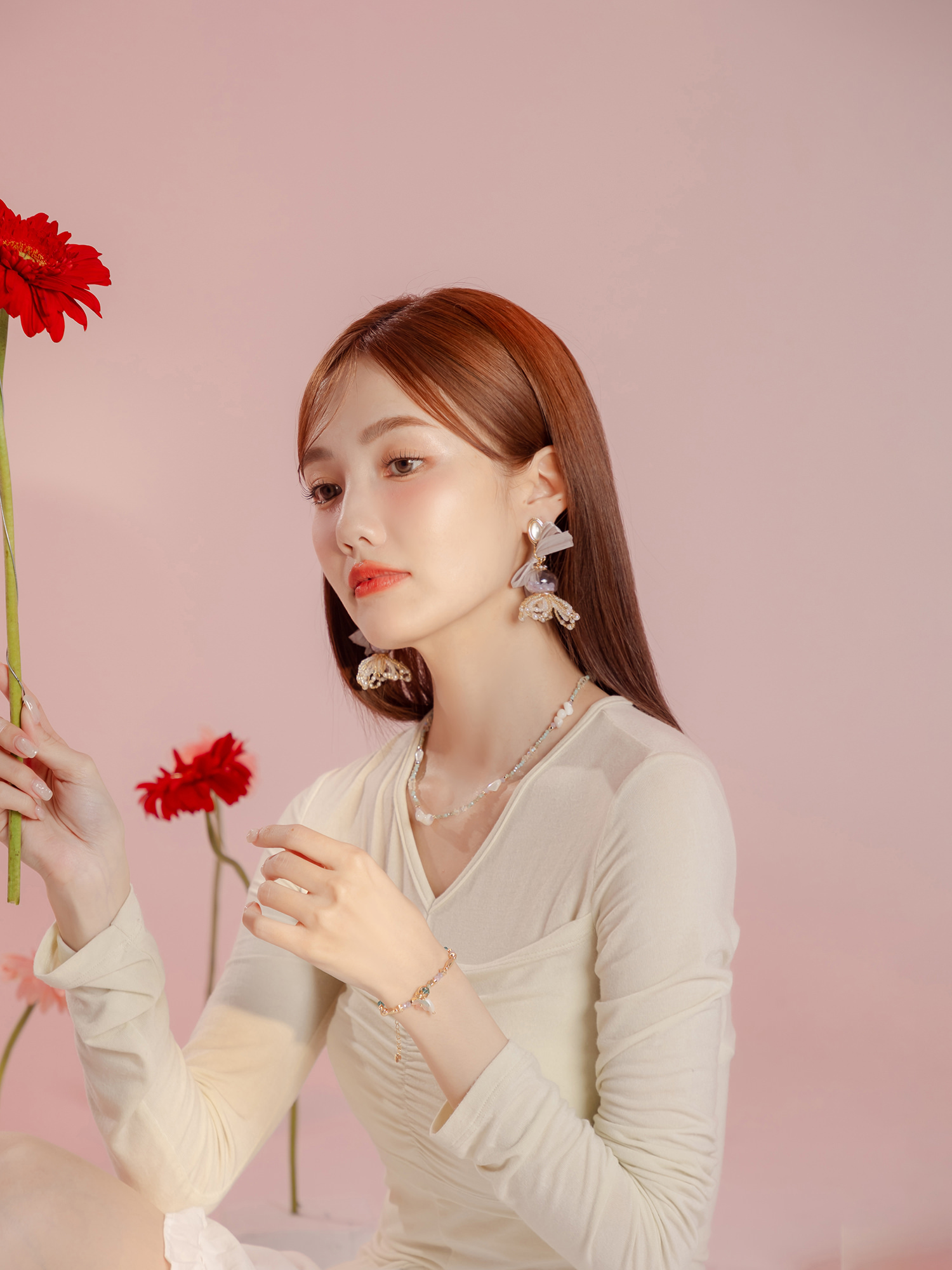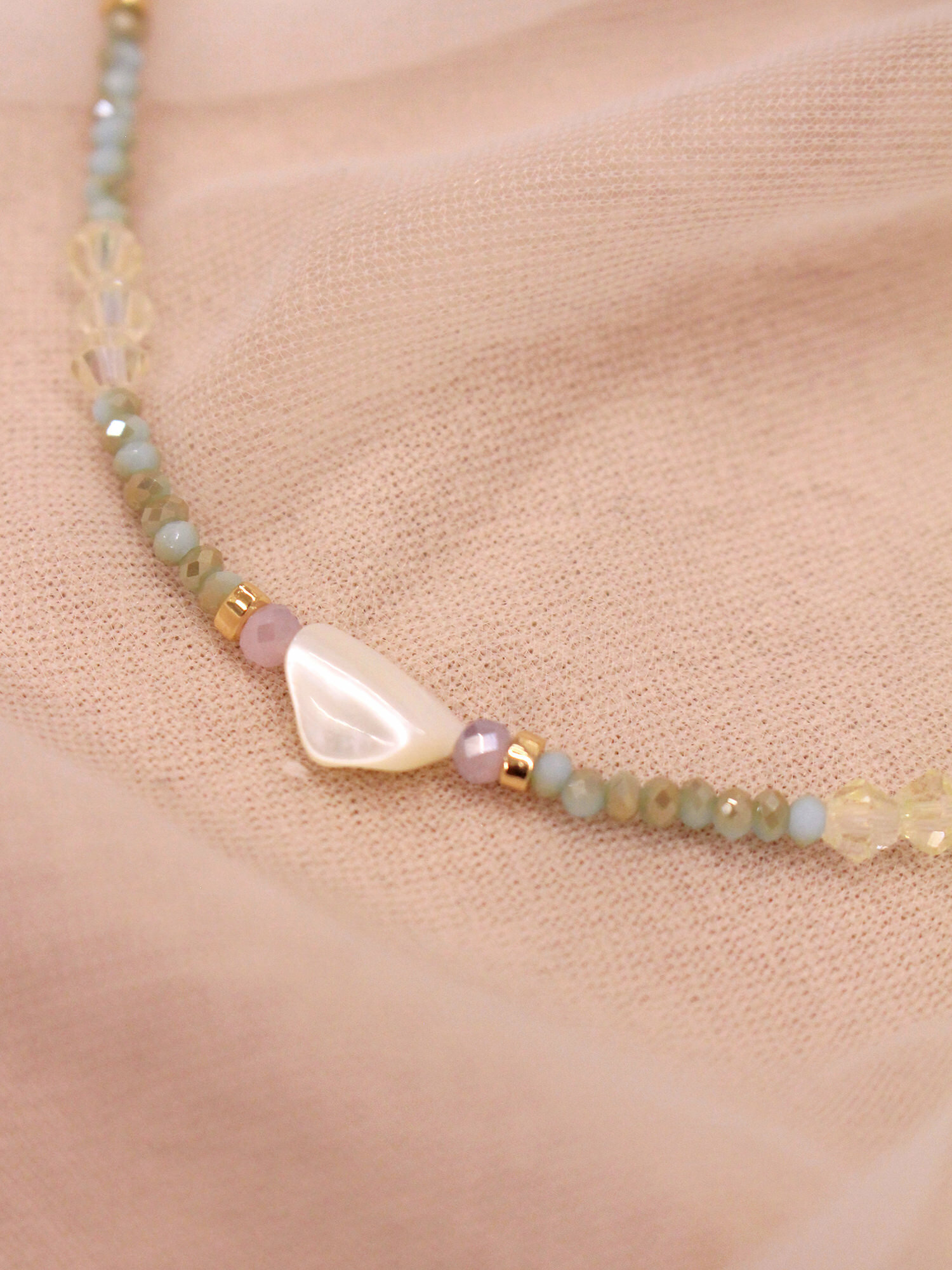 ▸ 素材:銅鍍14KGP、天然白蝶貝、水晶珠、串珠等複合材質