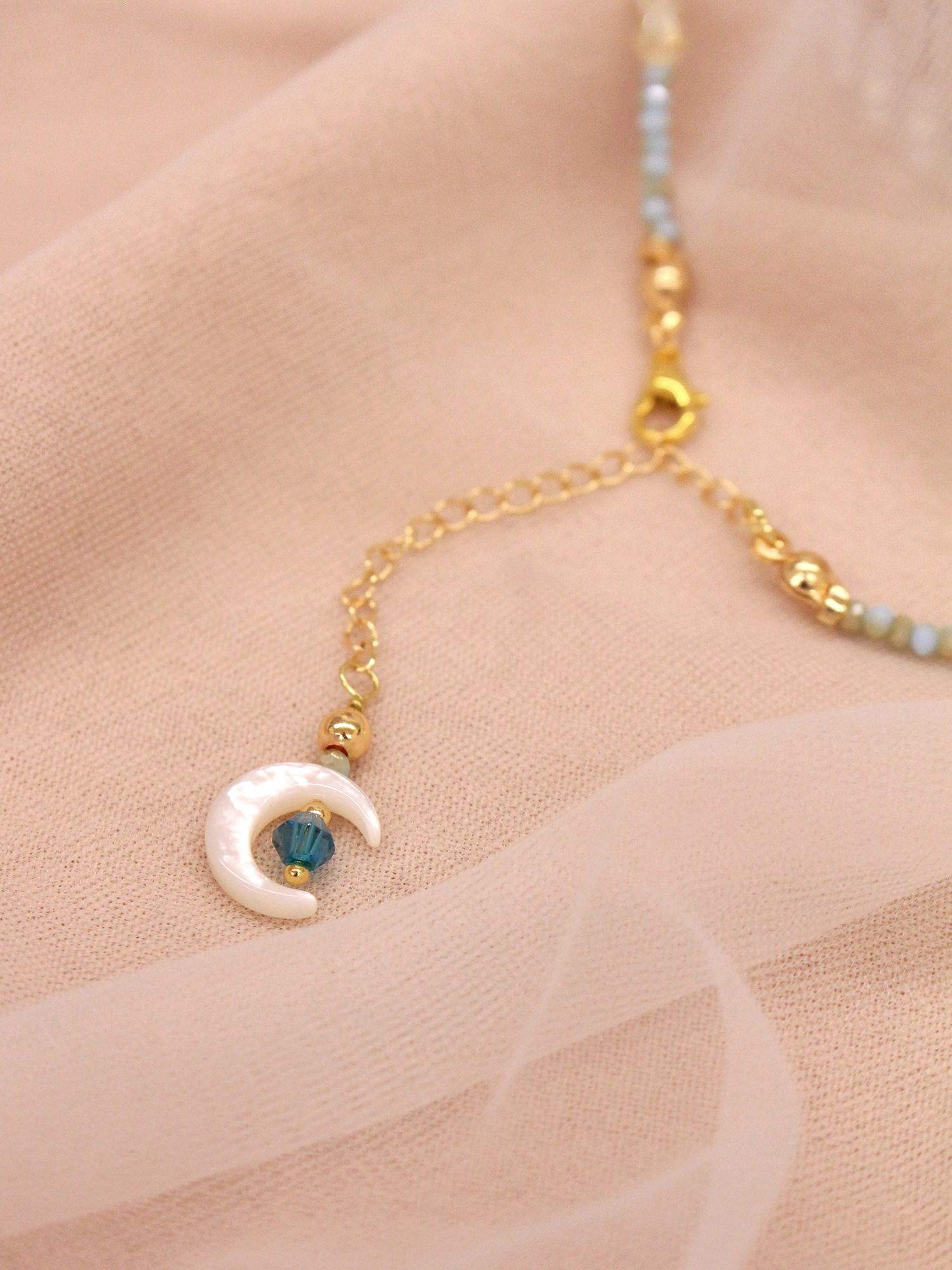 幻彩軟糖。MUCHAT手作14KGP天然貝殼月亮項鍊