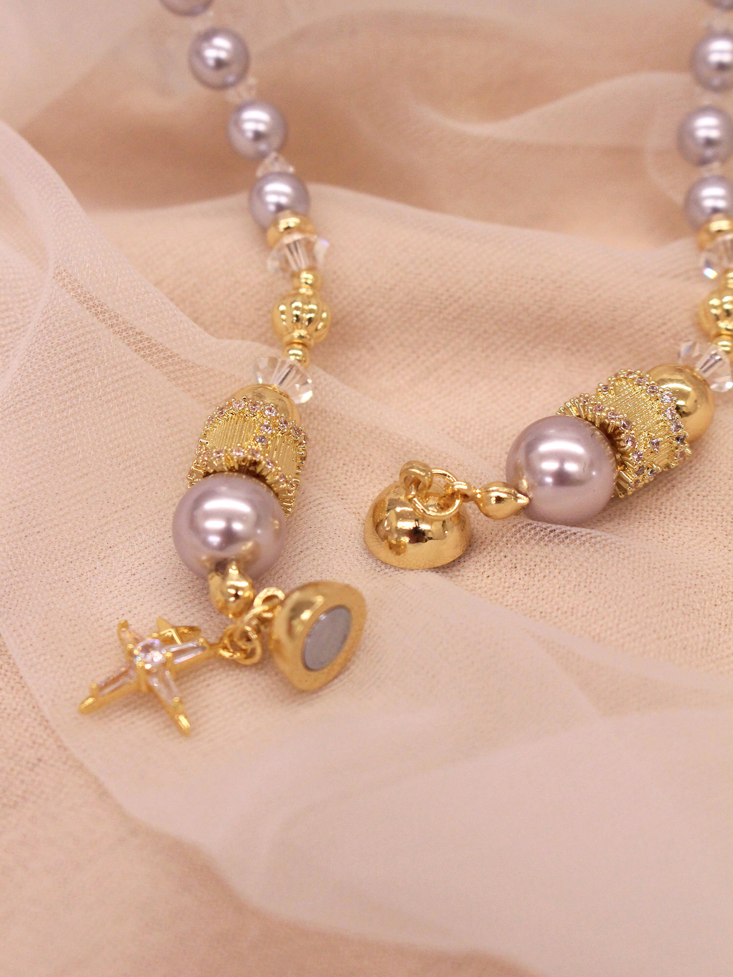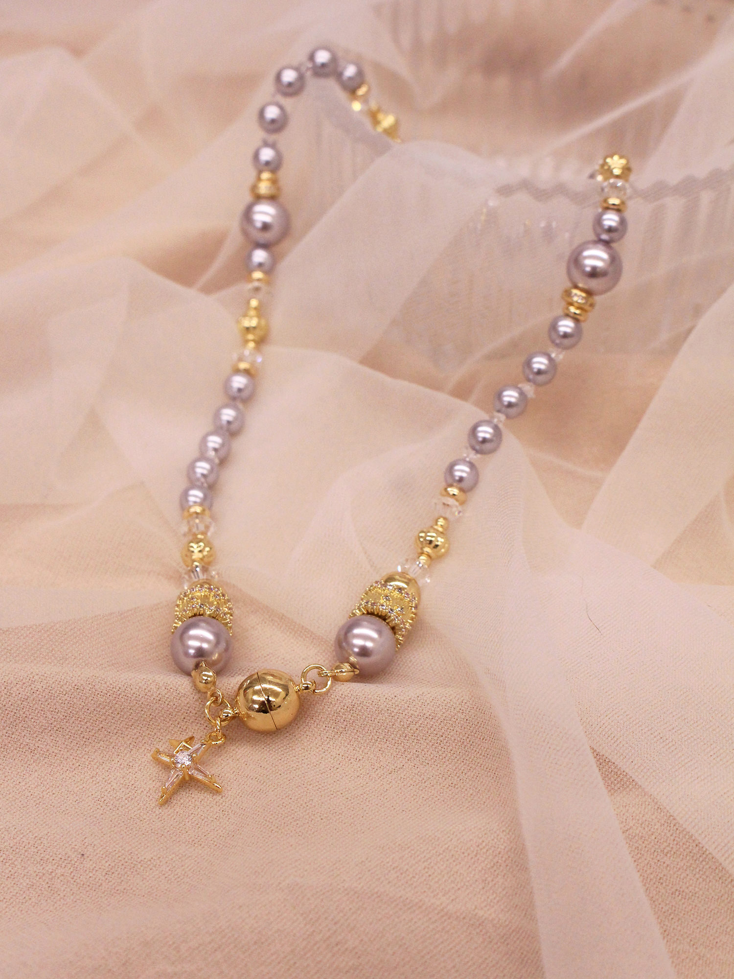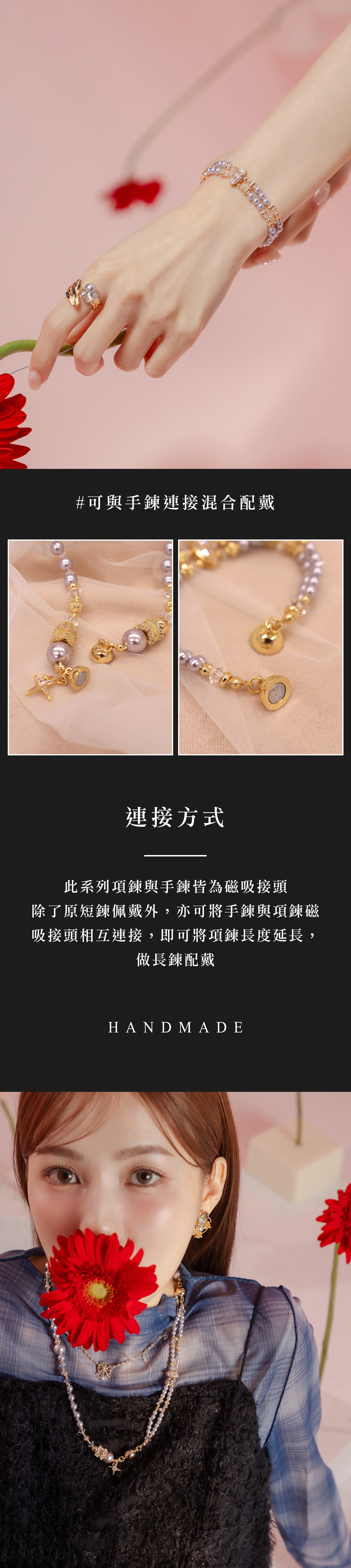▸ 素材:銅鍍14KGP、仿珠、鋯石、水晶珠等複合材質