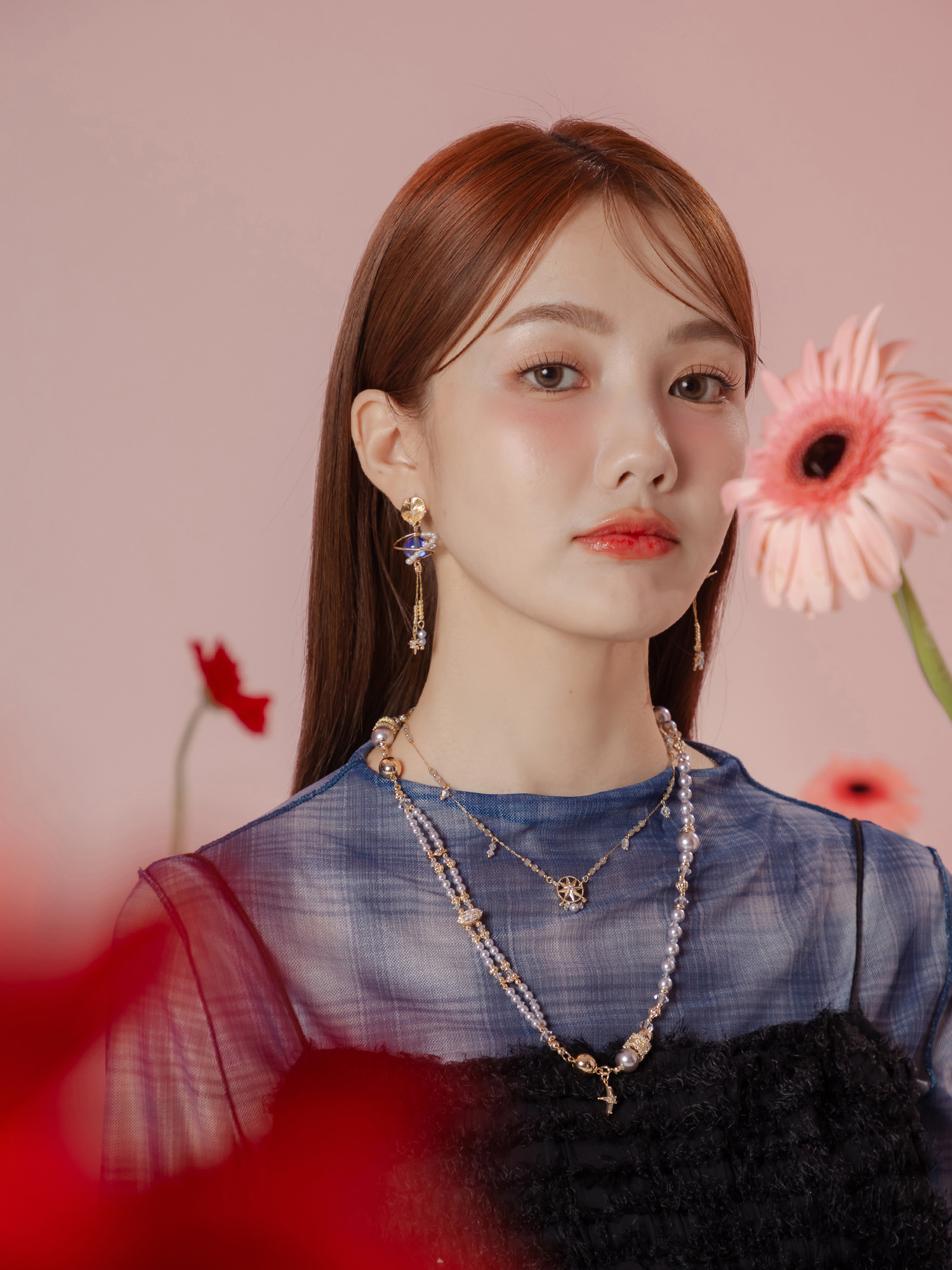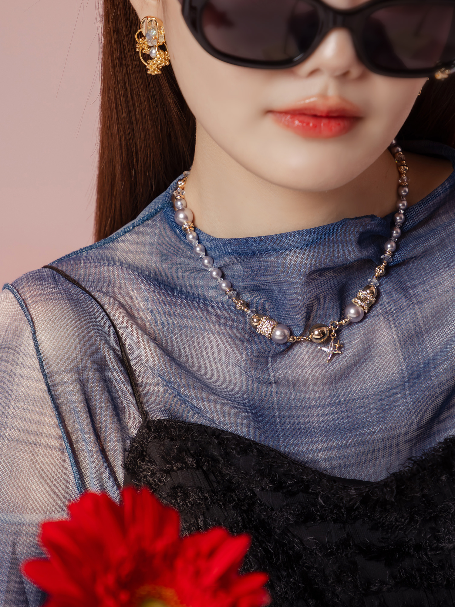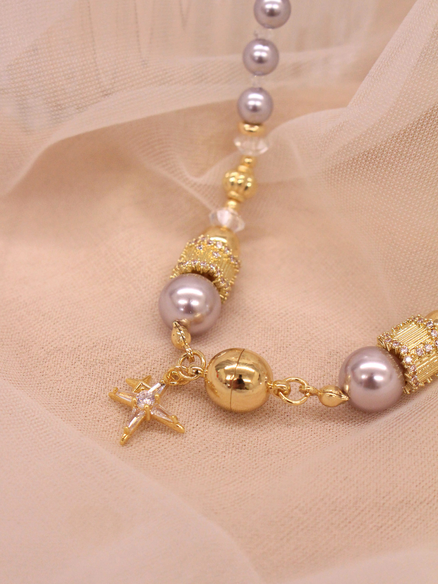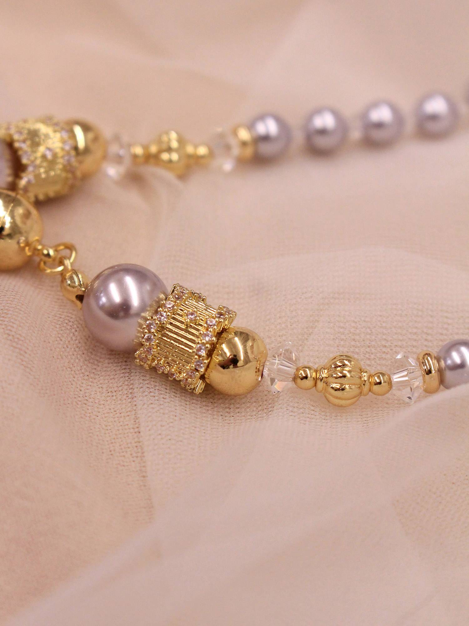 ▸ 素材:銅鍍14KGP、仿珠、鋯石、水晶珠等複合材質