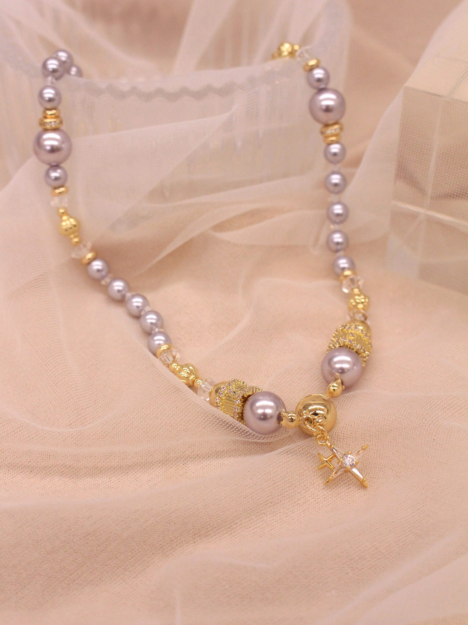 ▸ 水晶、貝殼、天然珍珠為天然材料,混色與花紋每款或有差異,鍍金屬不均、斑點、刮痕與凹洞為正常,非瑕疵。