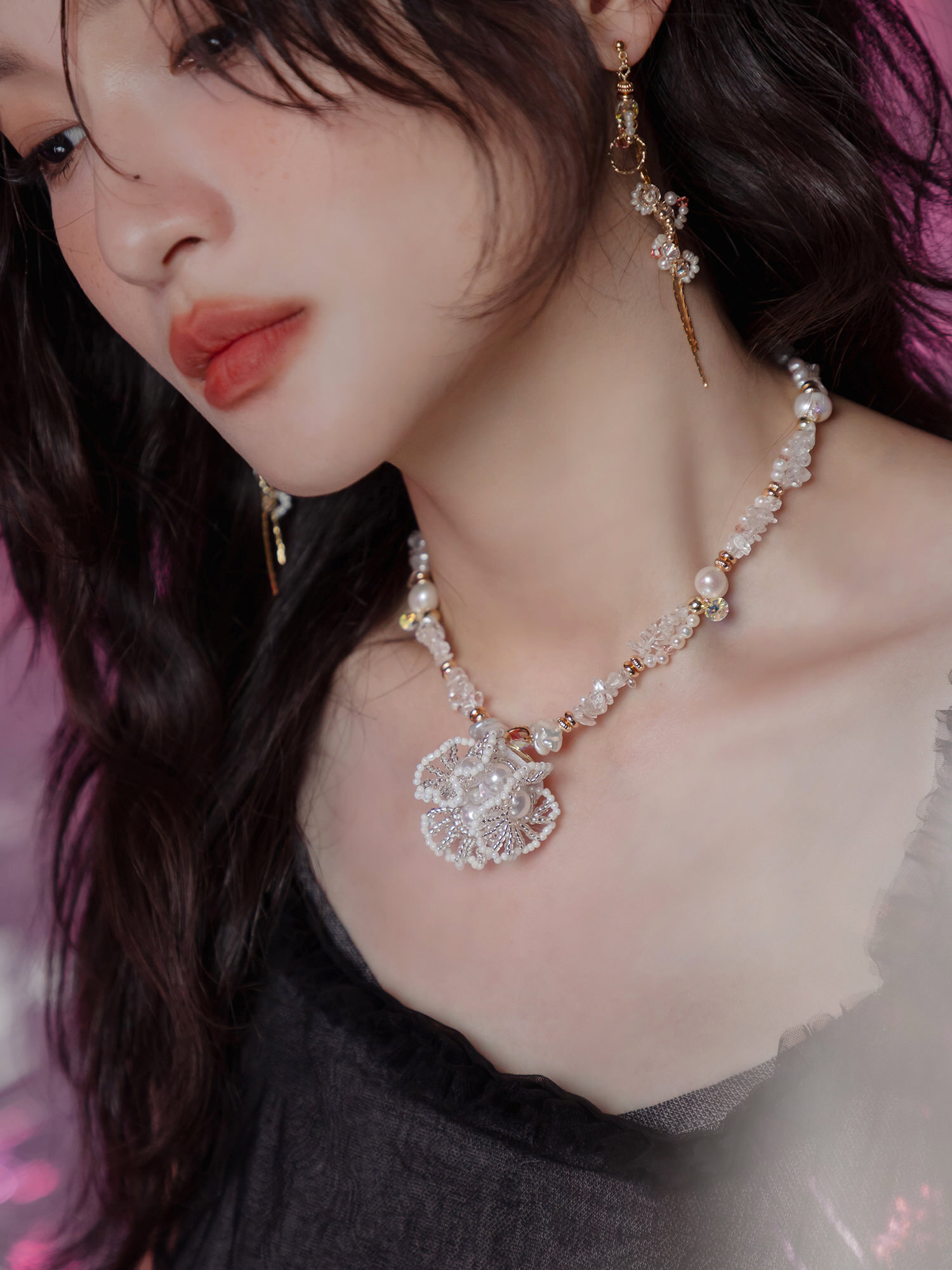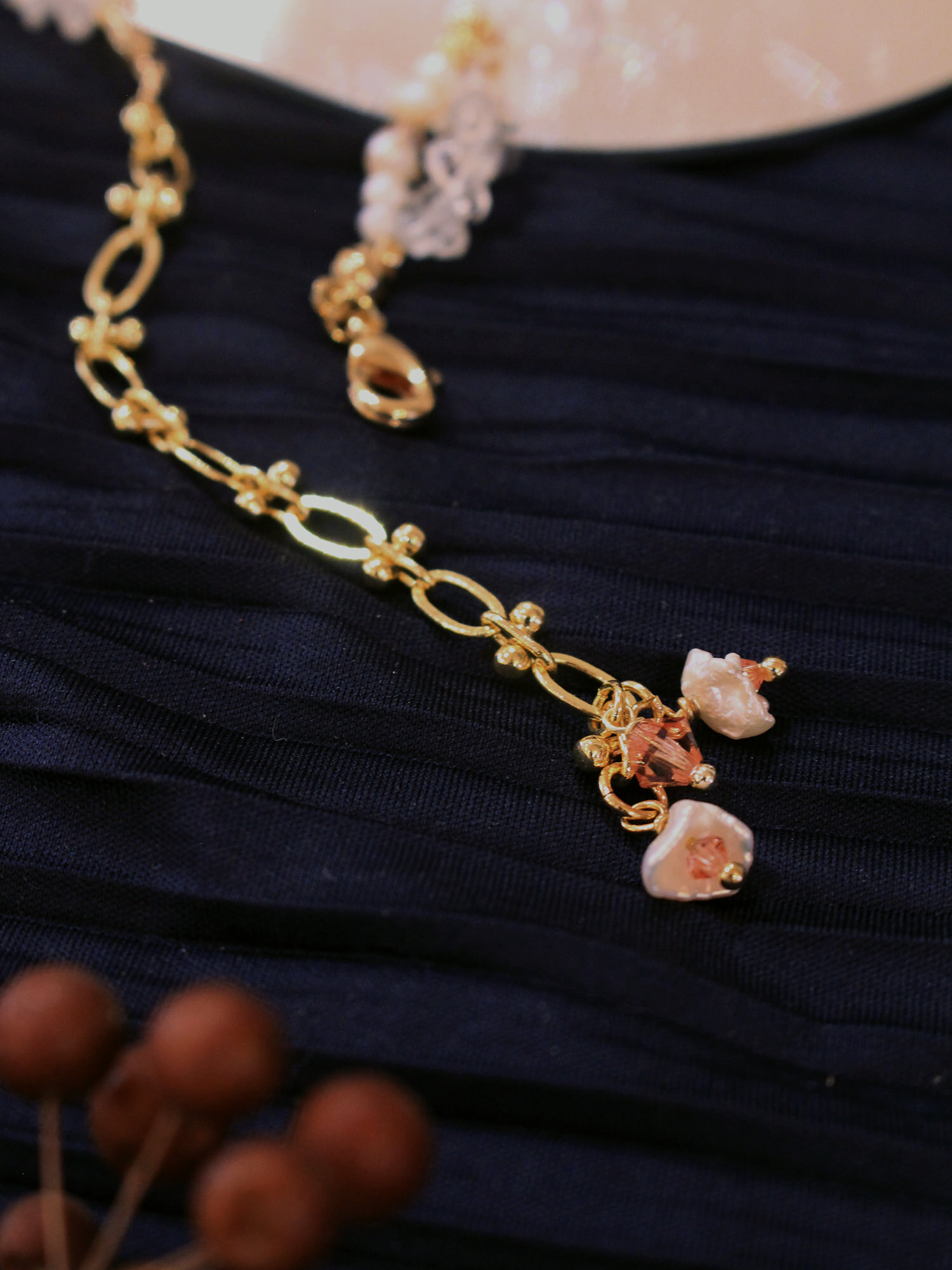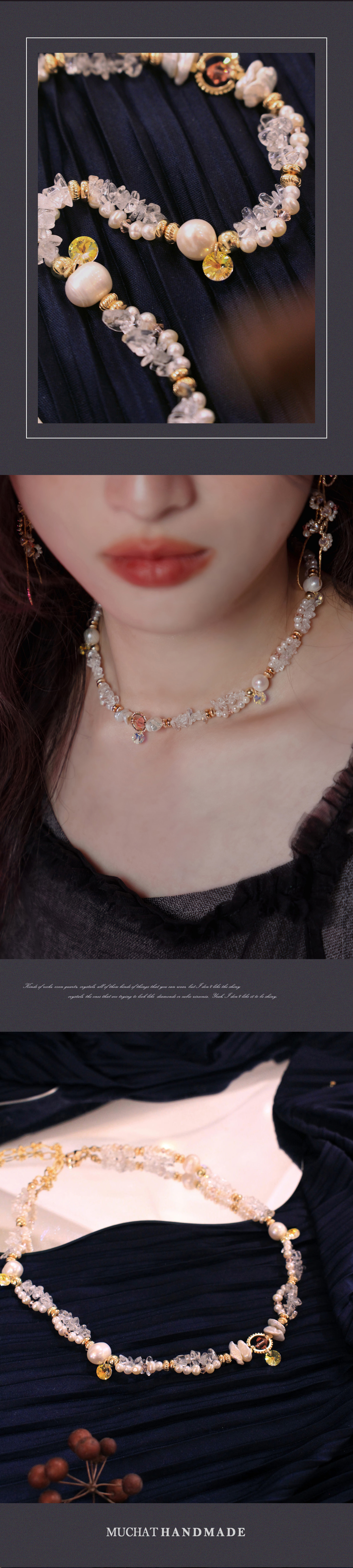 ▸ 水晶、貝殼、天然珍珠為天然材料,混色與花紋每款或有差異,鍍金屬不均、斑點、刮痕與凹洞為正常,非瑕疵。