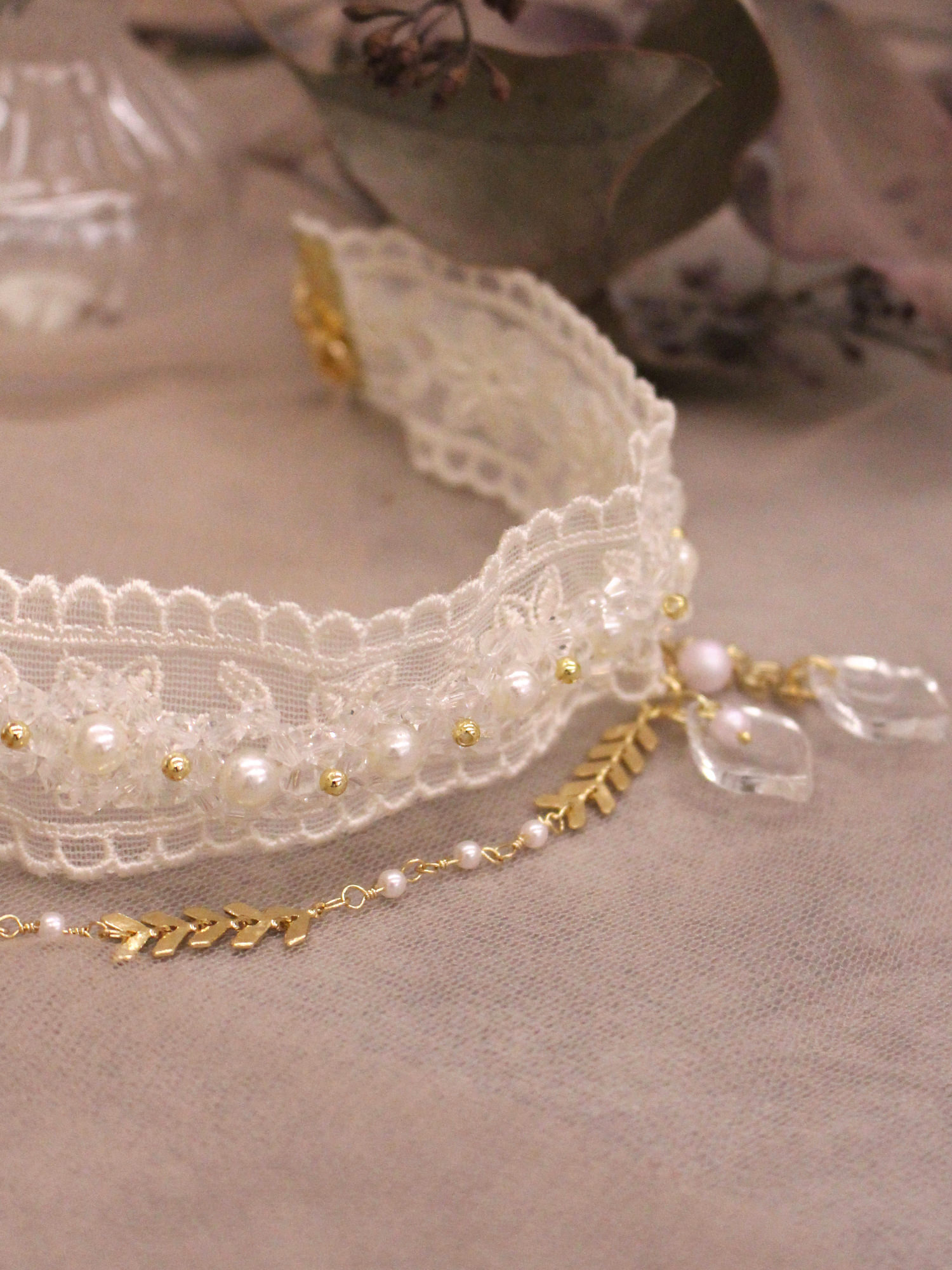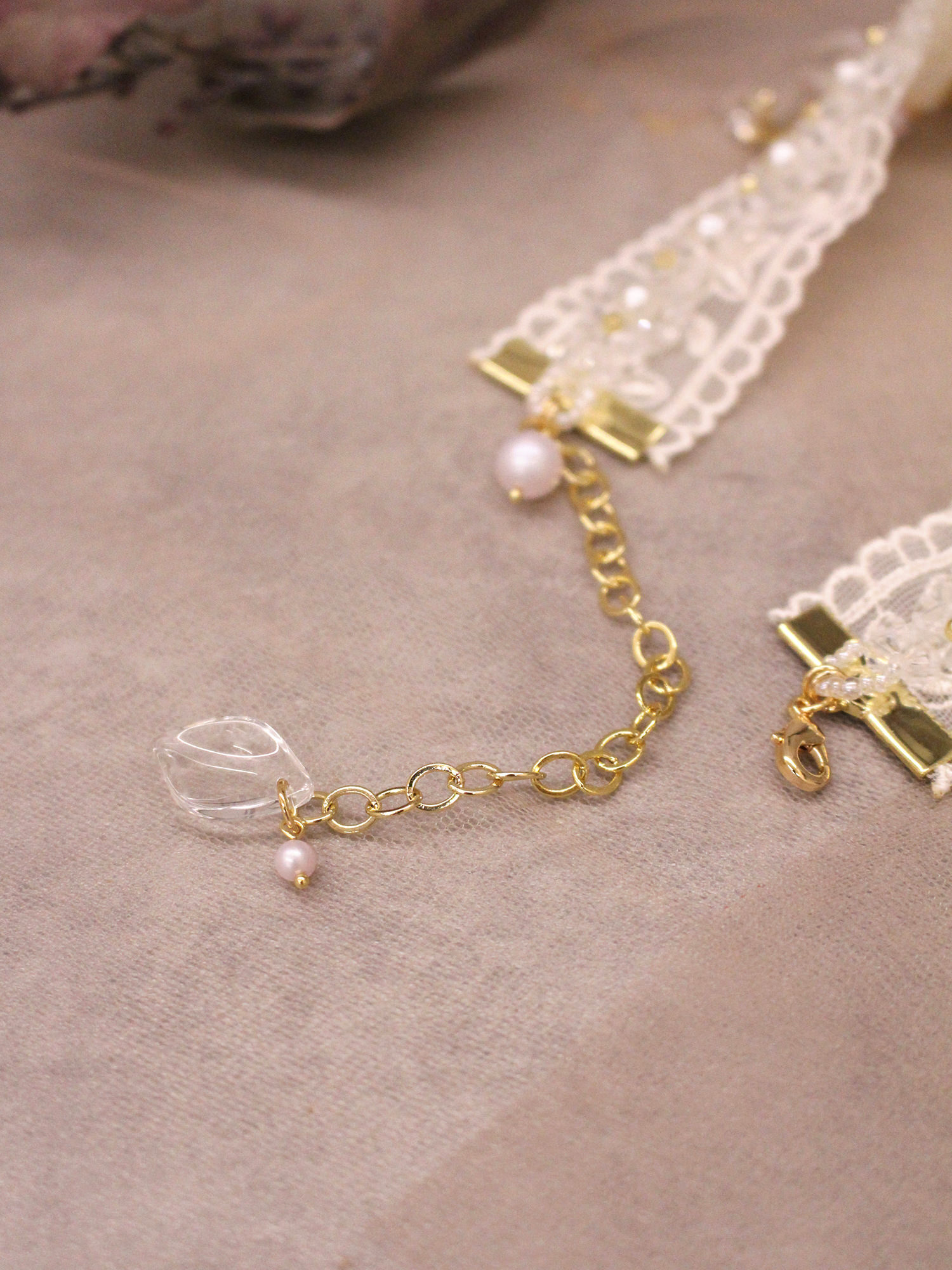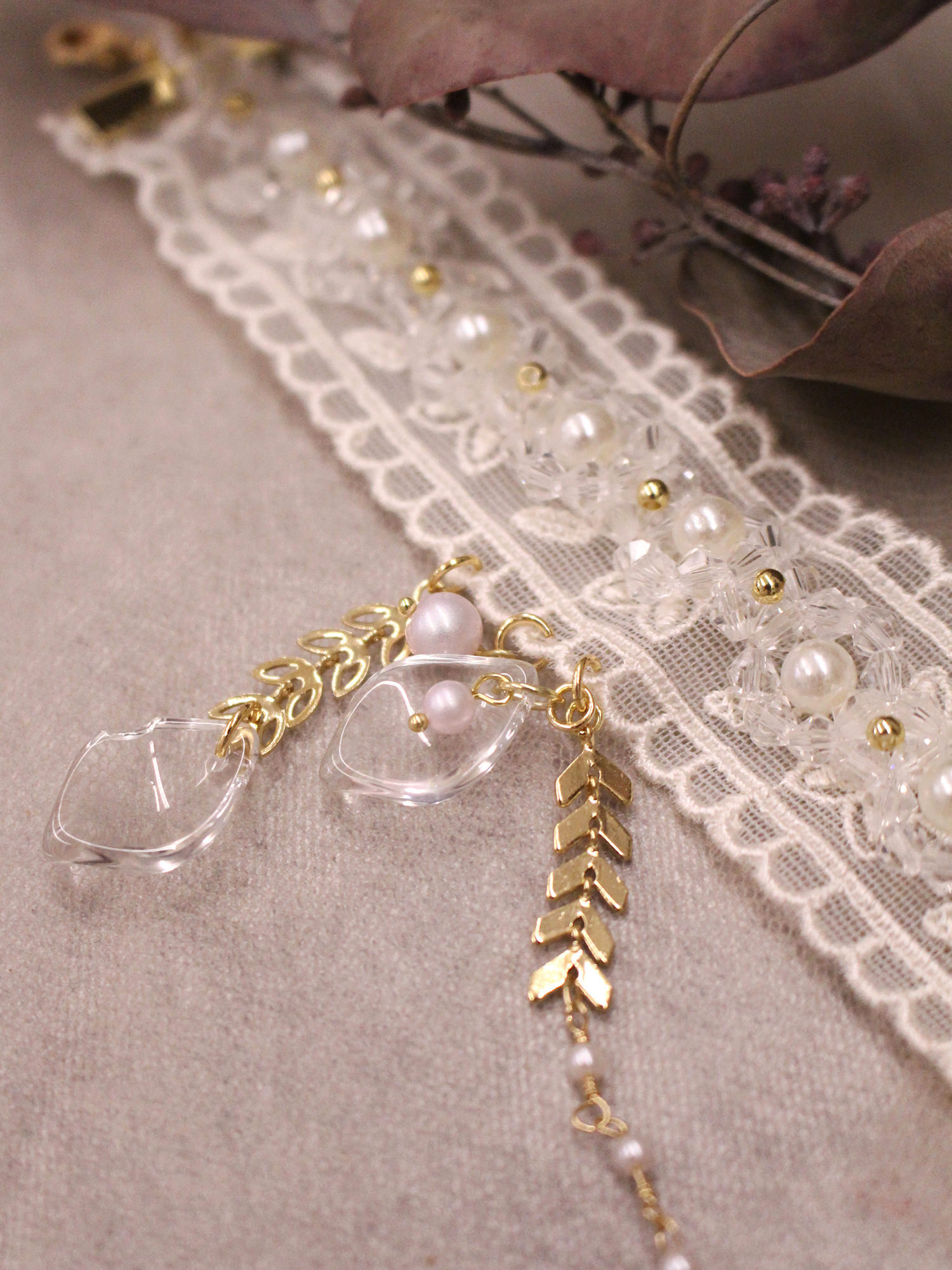 ▸ 素材:銅鍍14KGP、仿珠、聚酯纖維、樹酯、水晶珠等複合材質