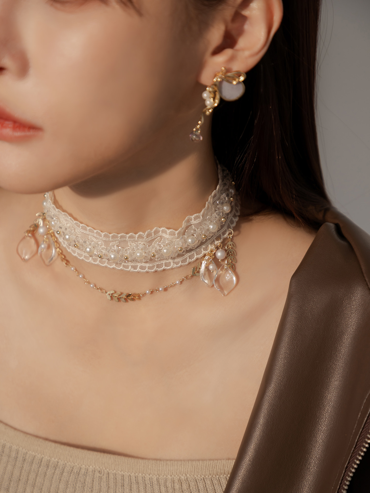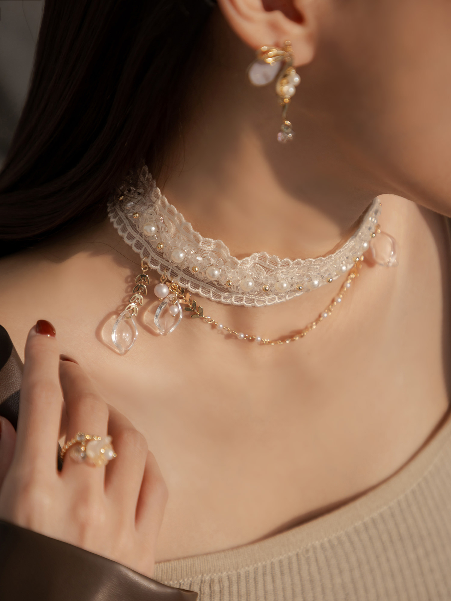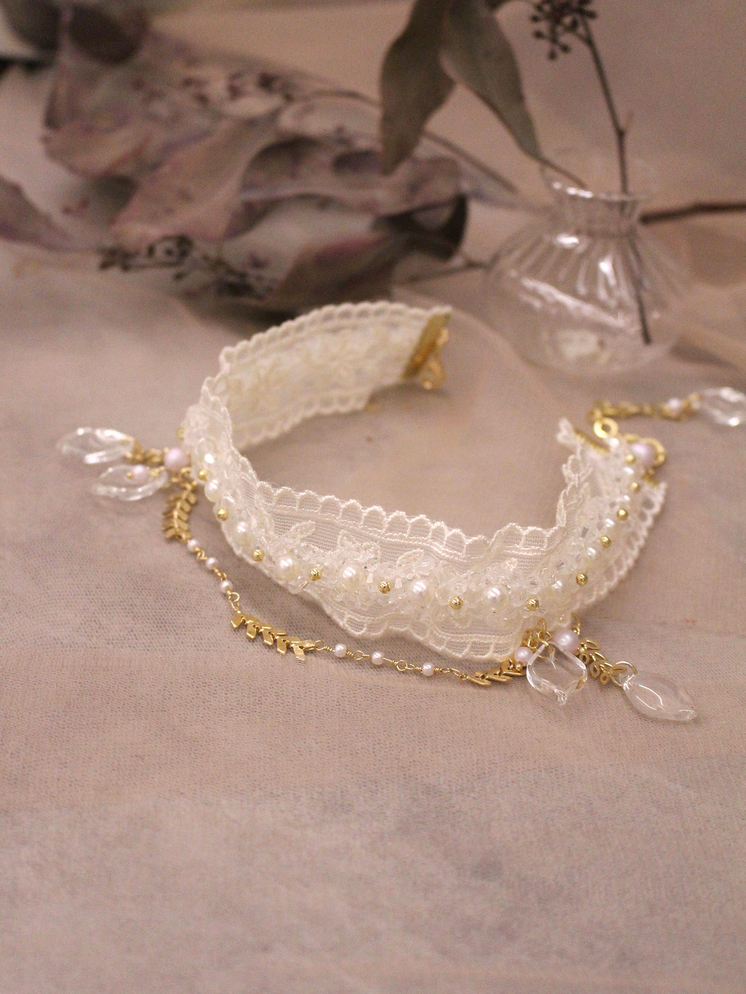 ▸ 素材:銅鍍14KGP、仿珠、聚酯纖維、樹酯、水晶珠等複合材質