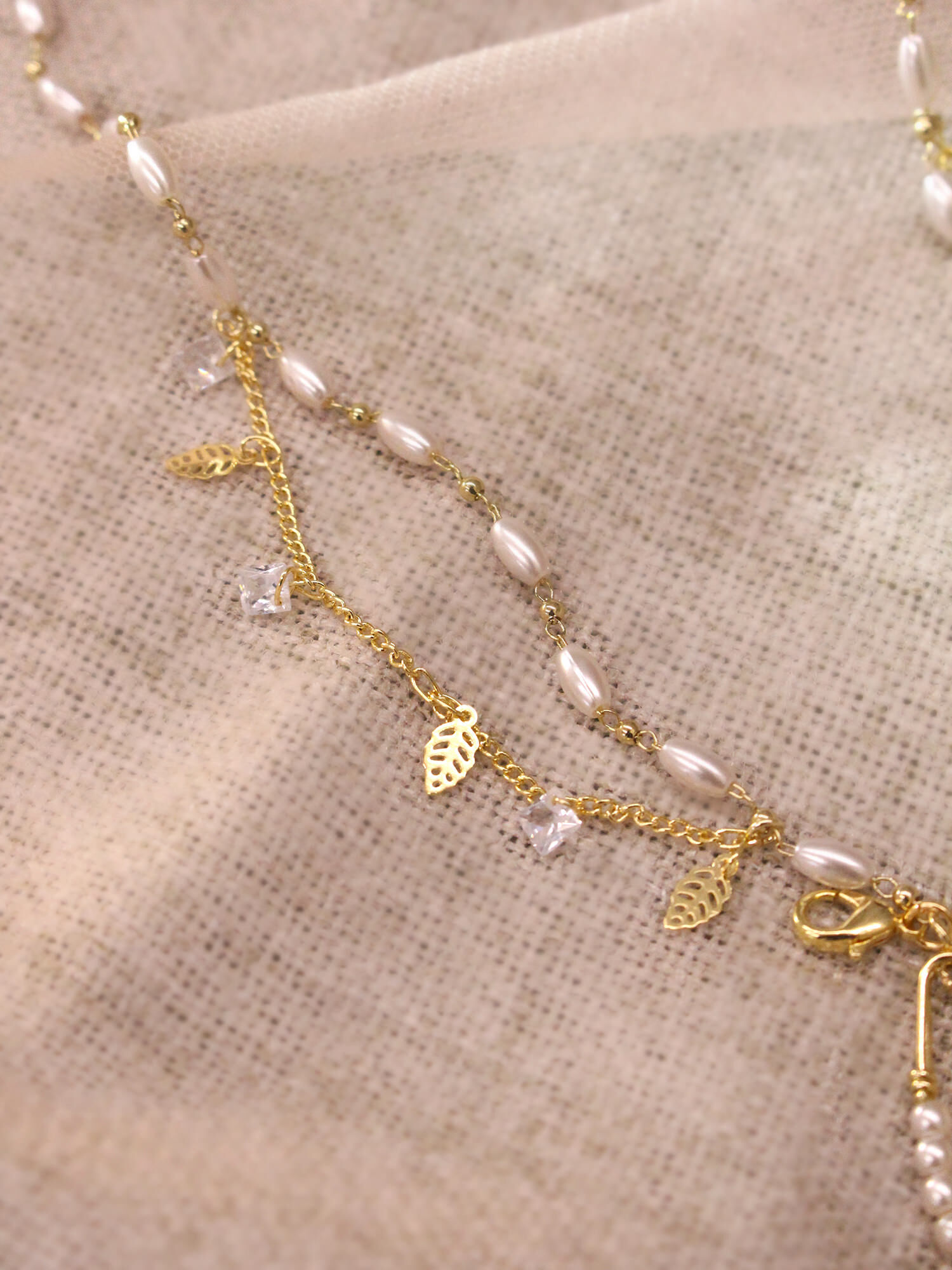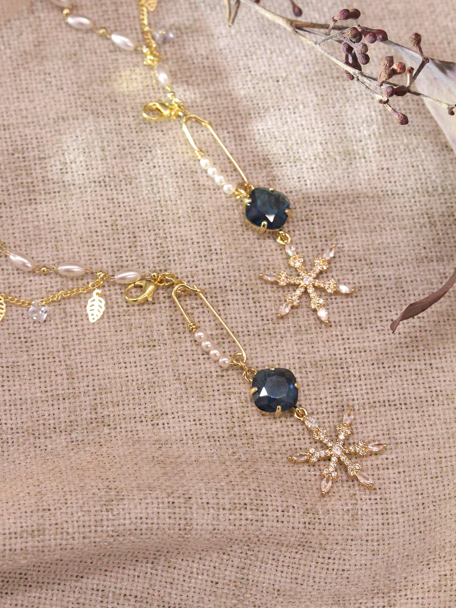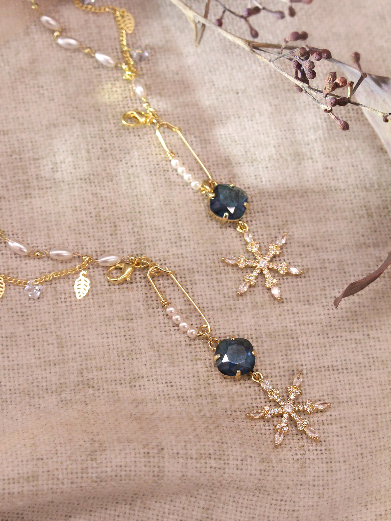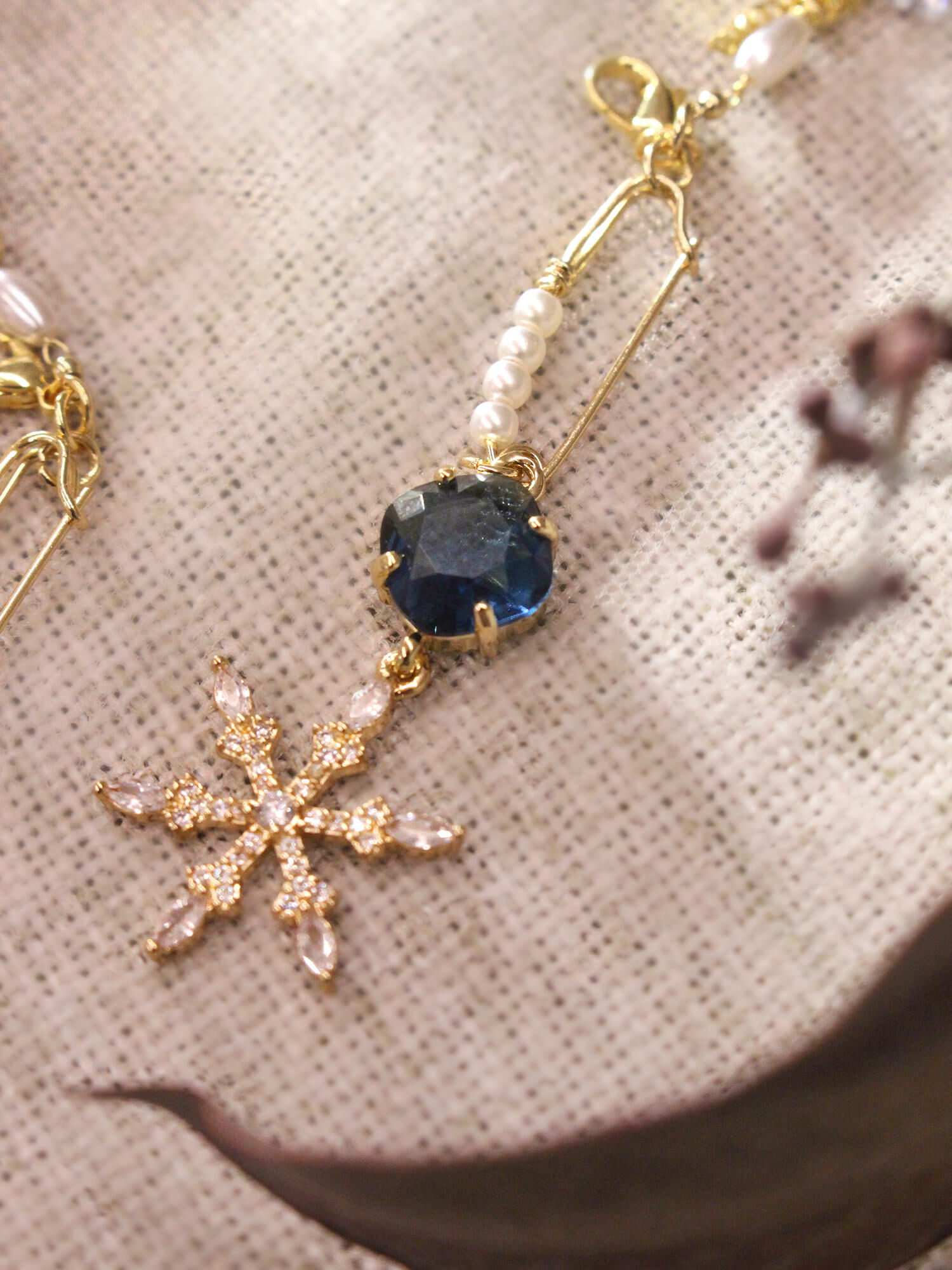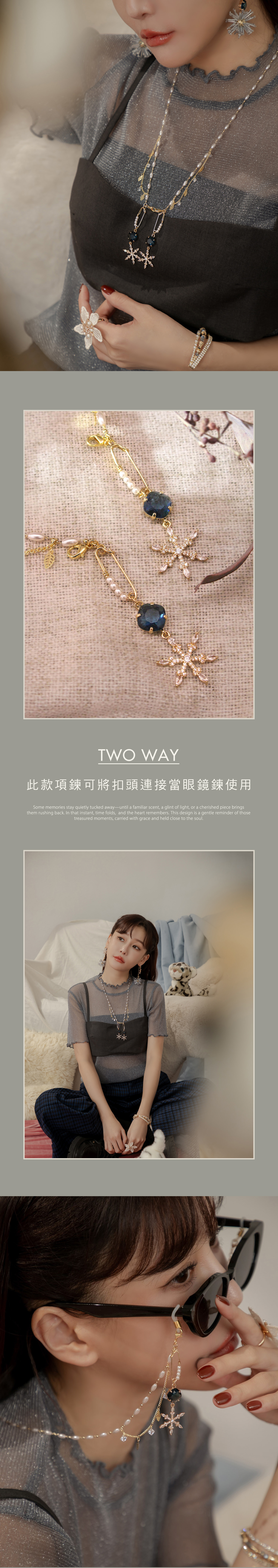 月神的化身。(2way)MUCHAT手作14KGP珍珠水晶雪花項鍊