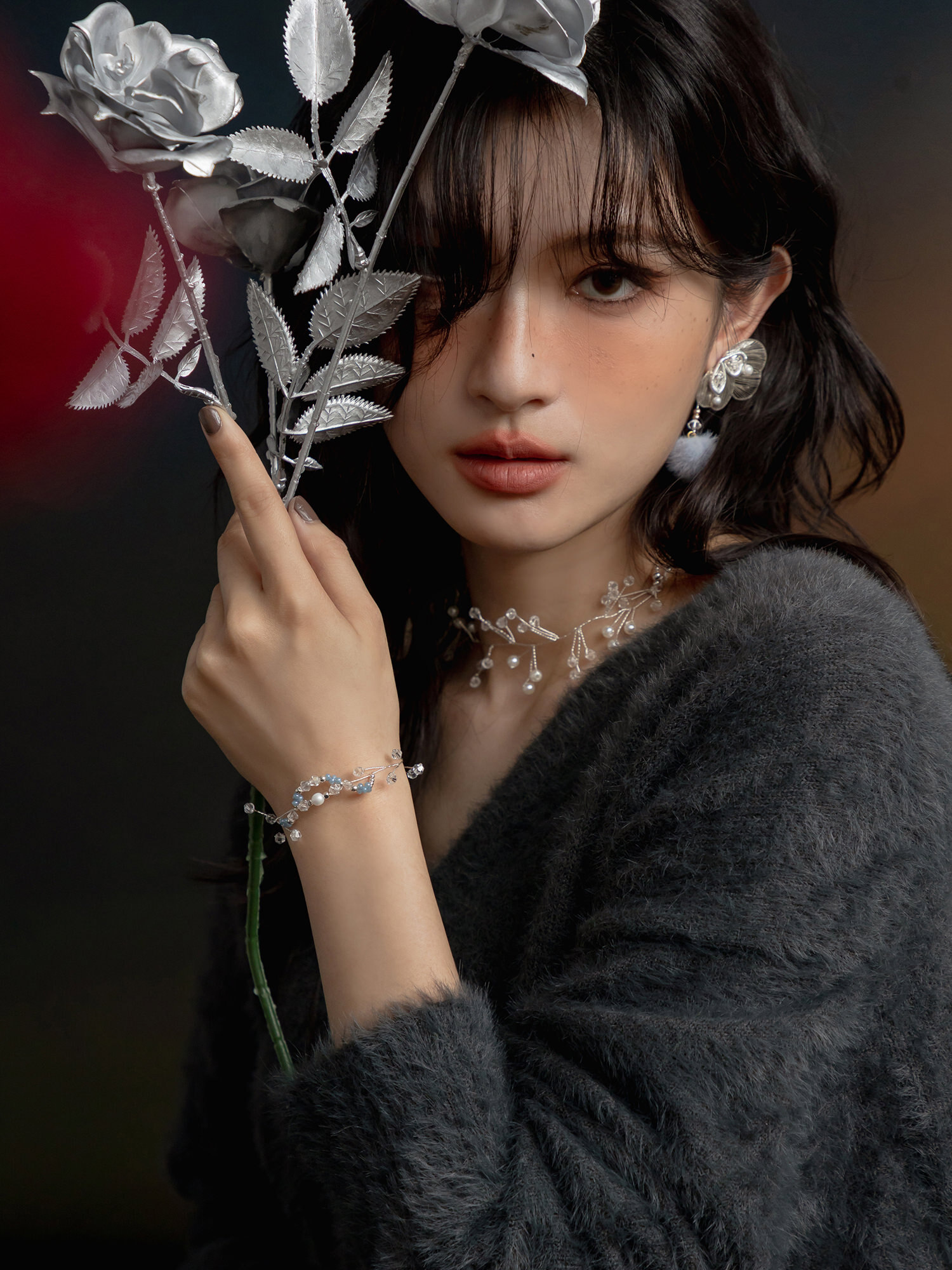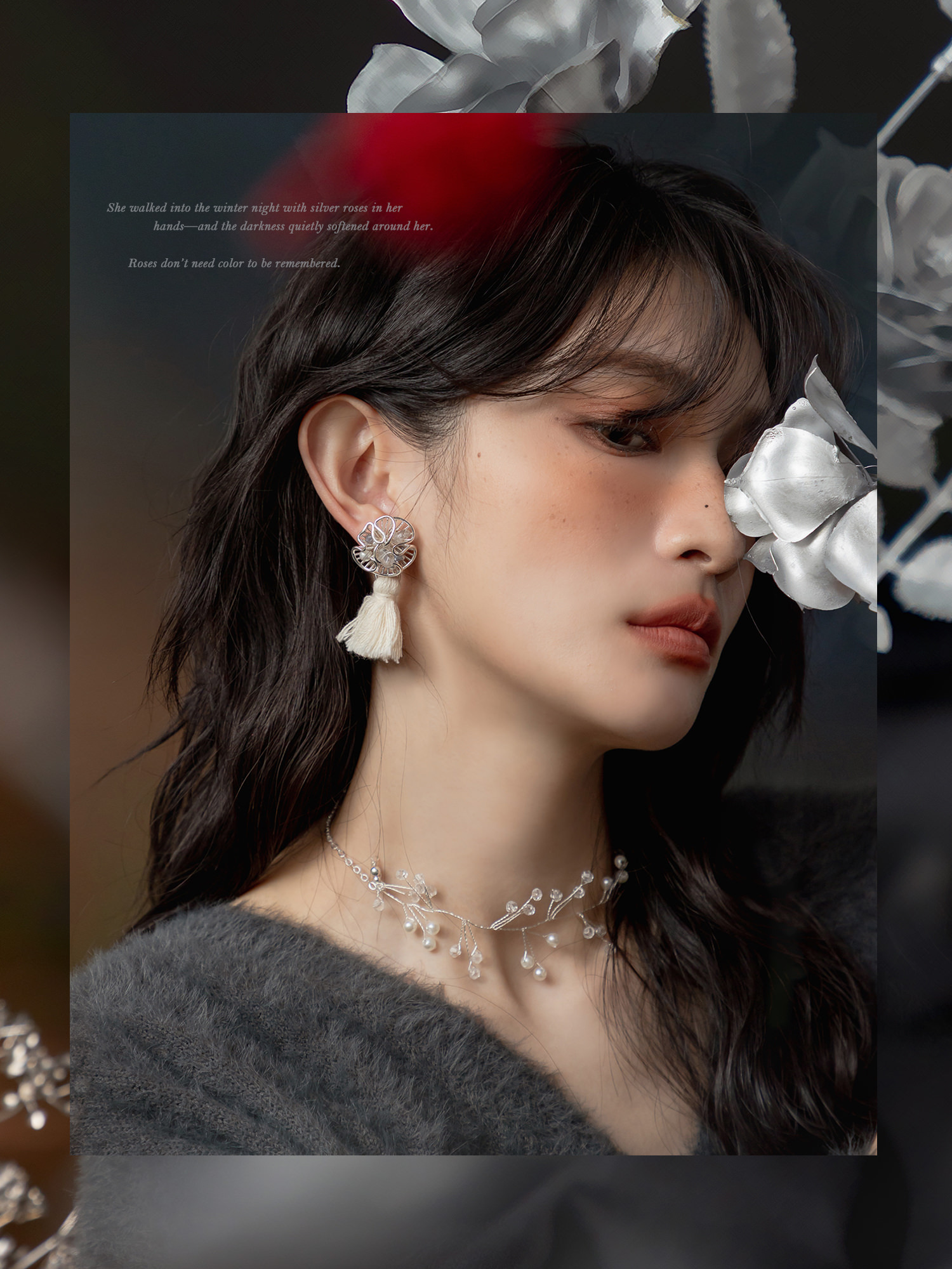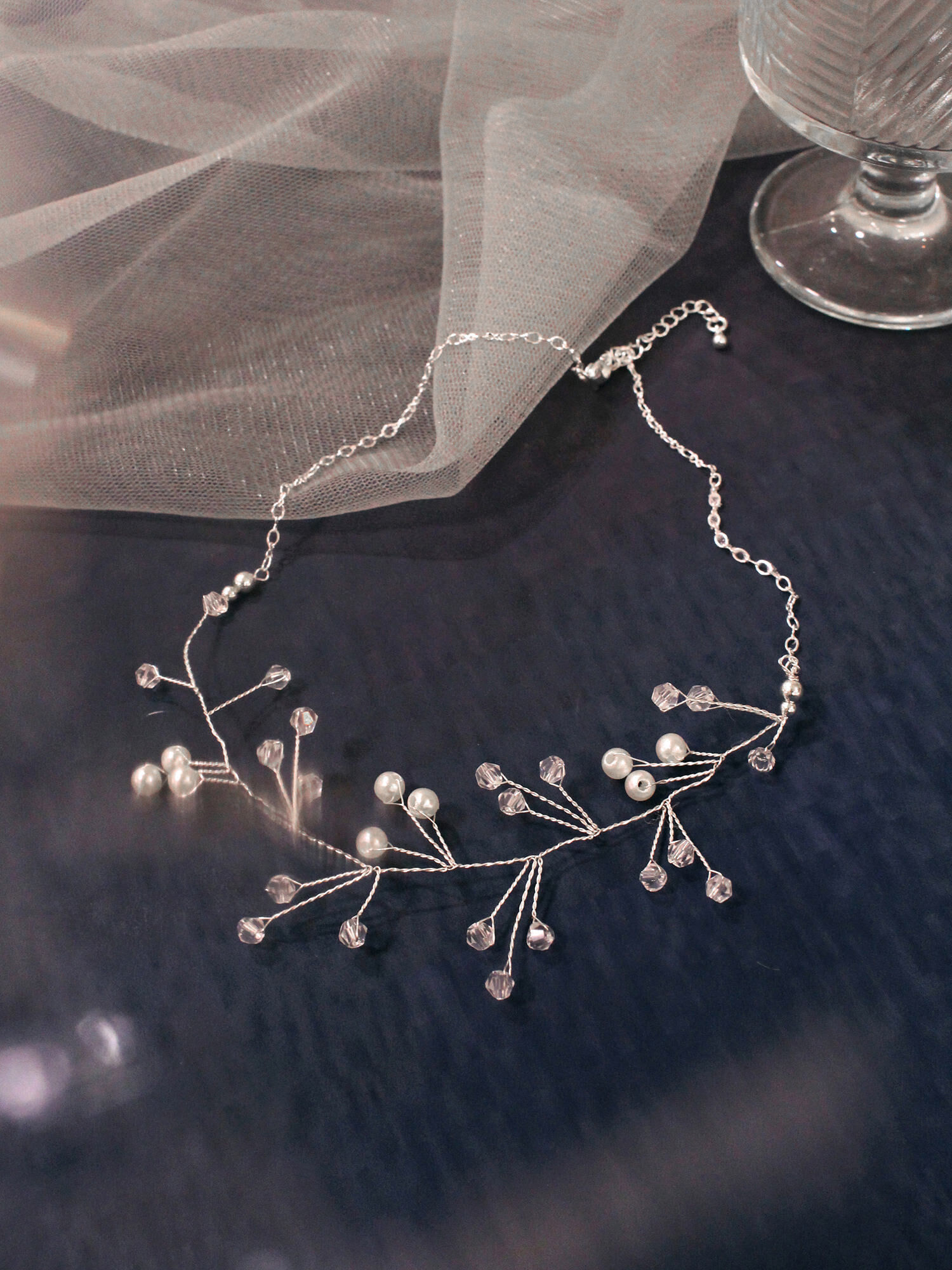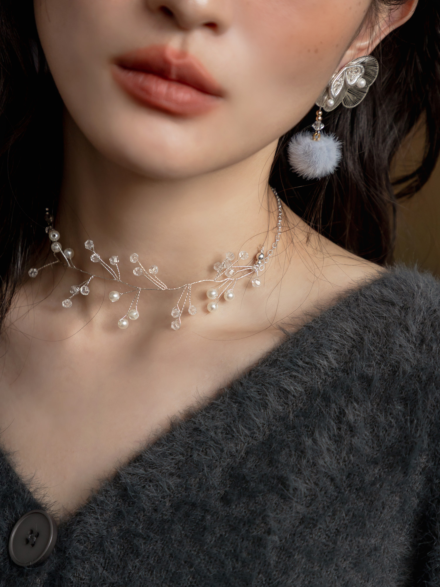 ▸ 素材:銅鍍白銀、仿珠、水晶珠等複合材質