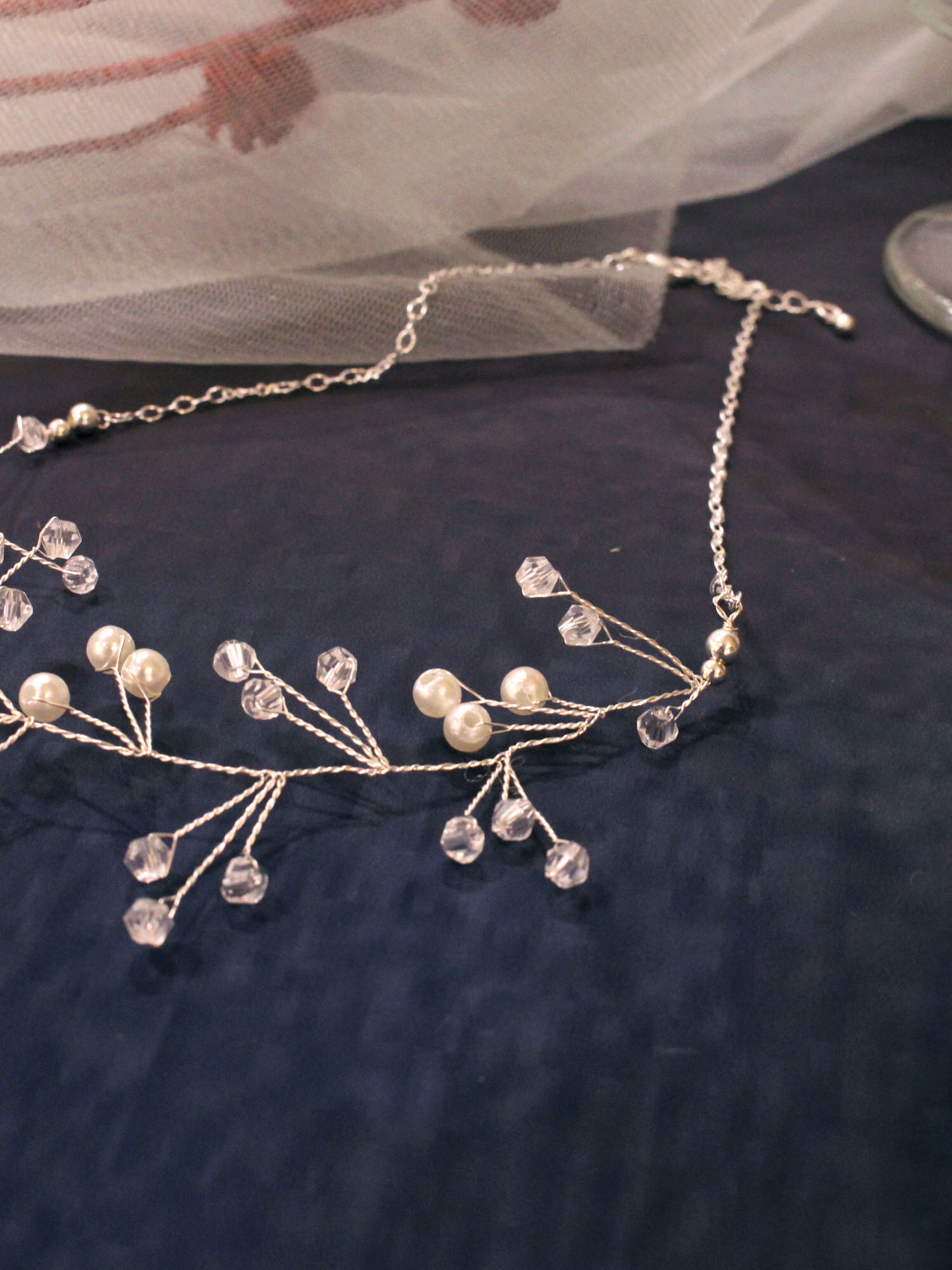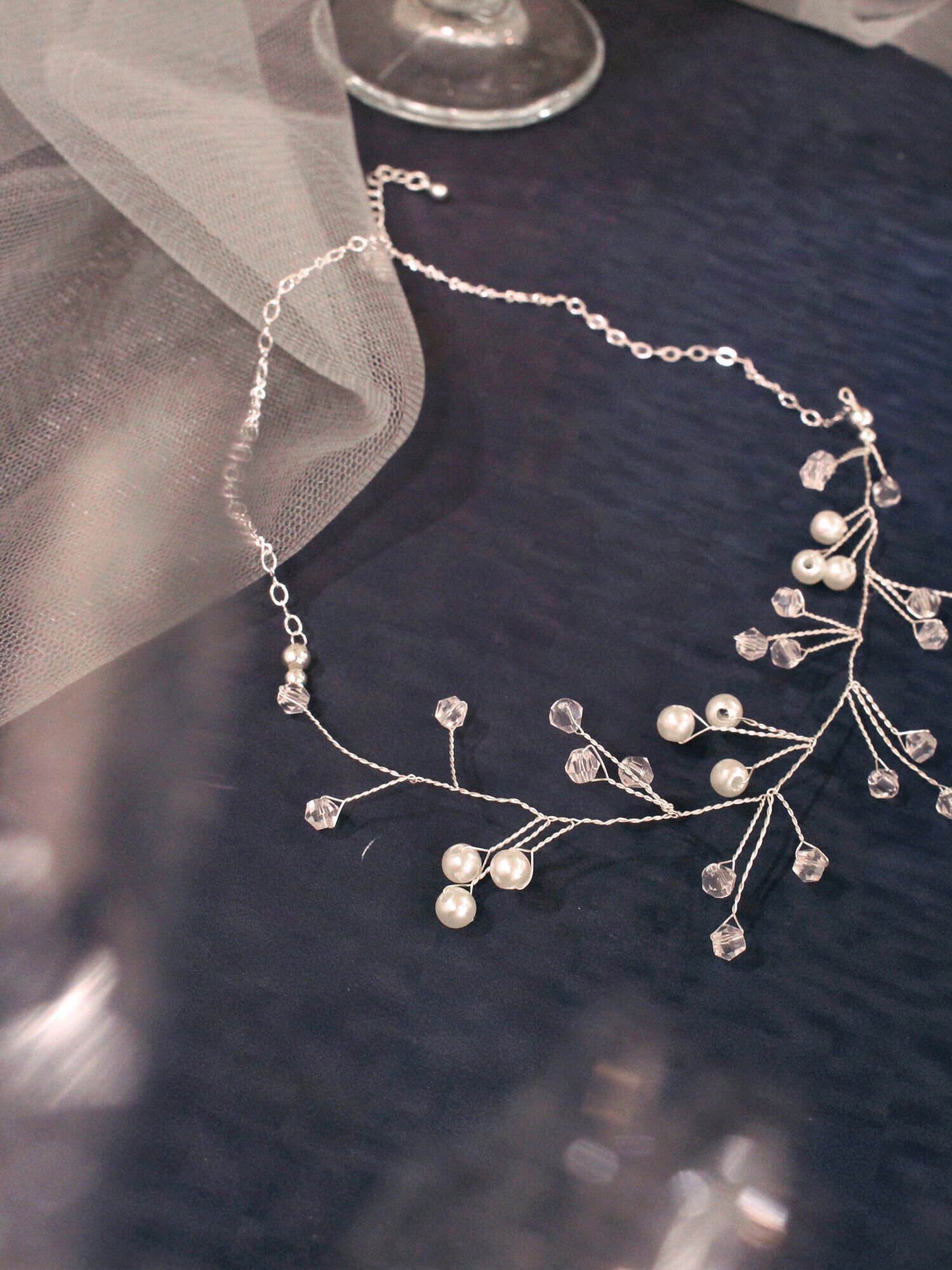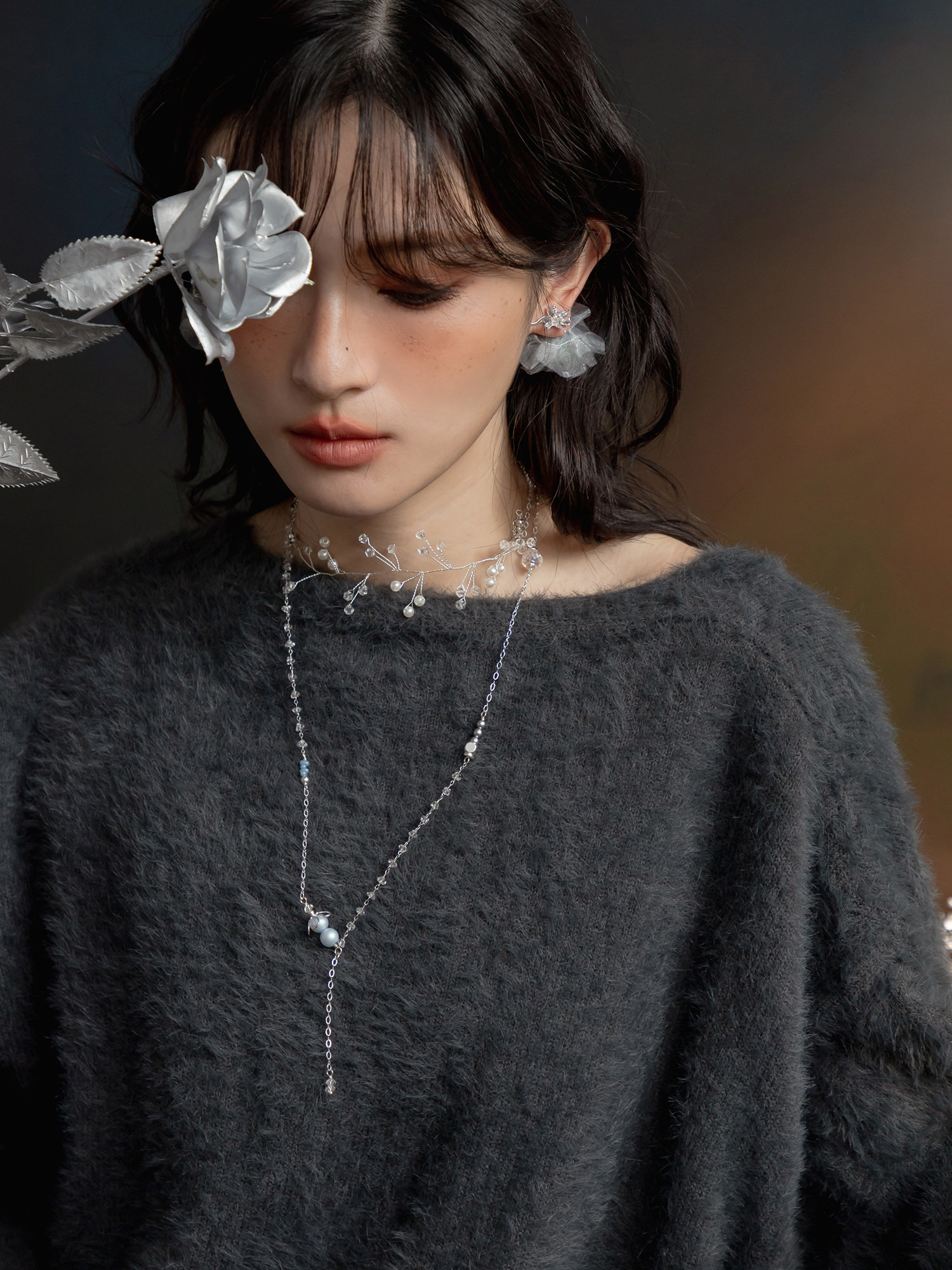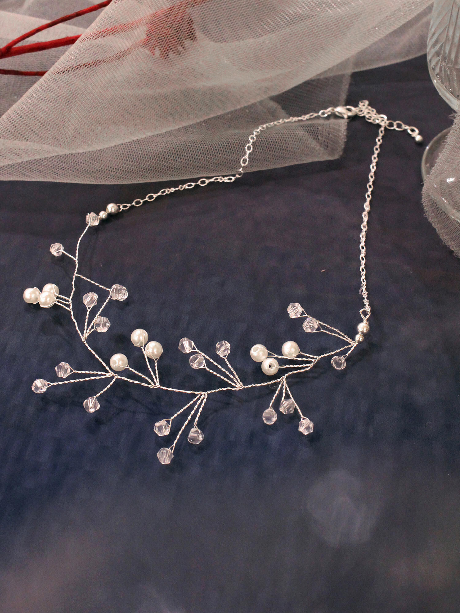 ▸ 素材:銅鍍白銀、仿珠、水晶珠等複合材質