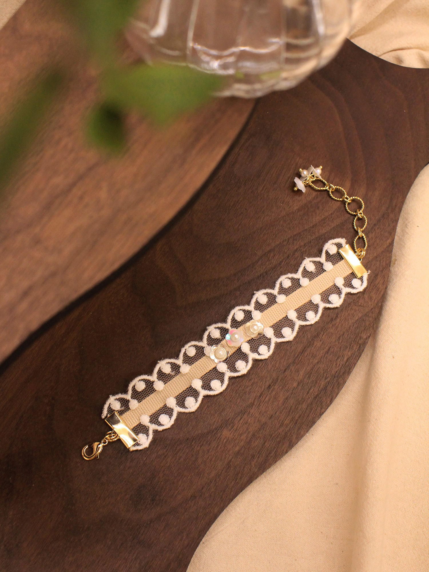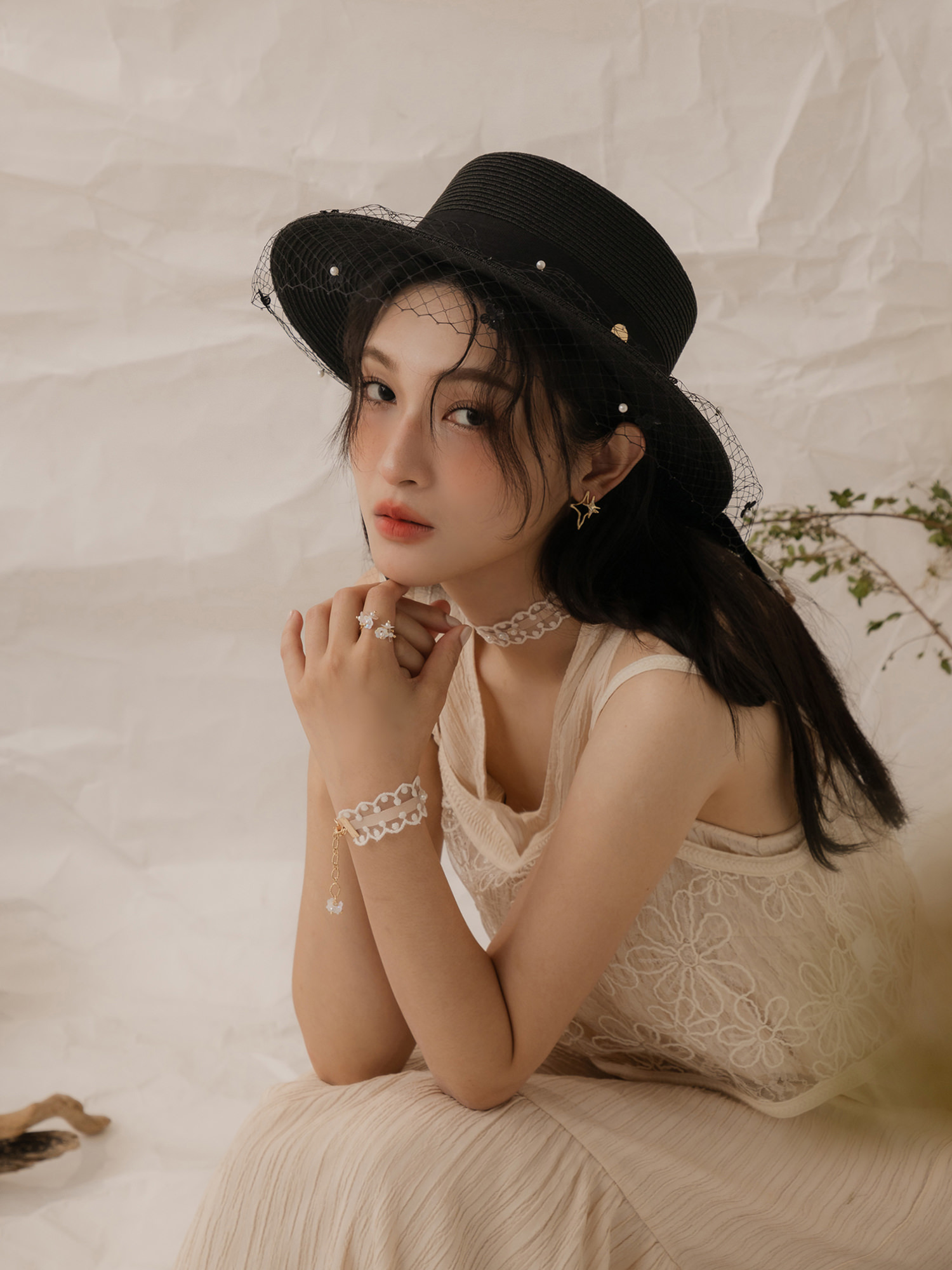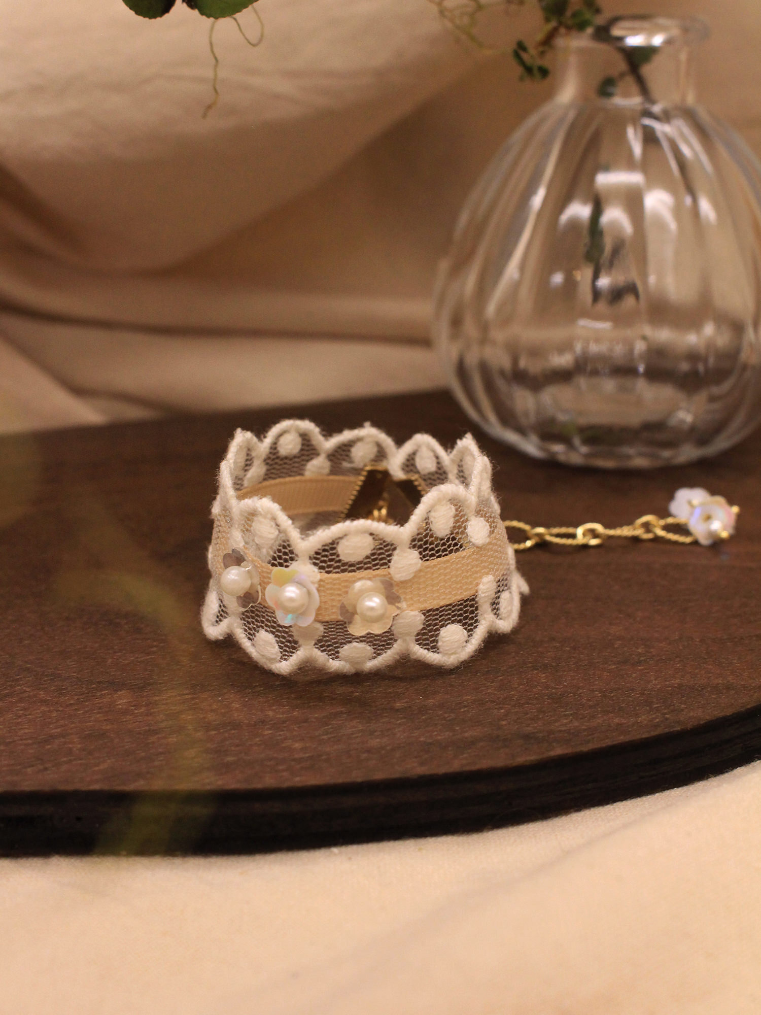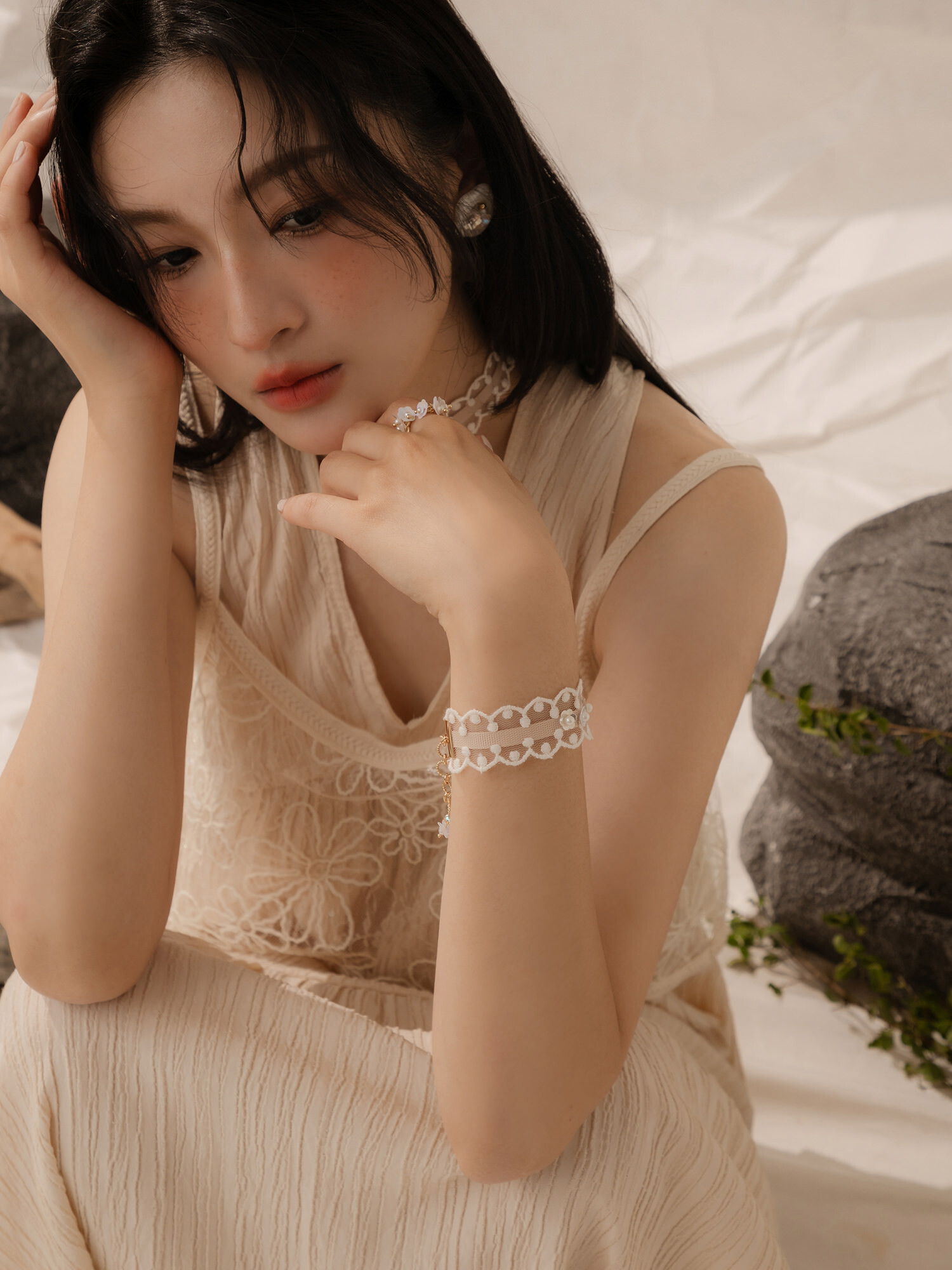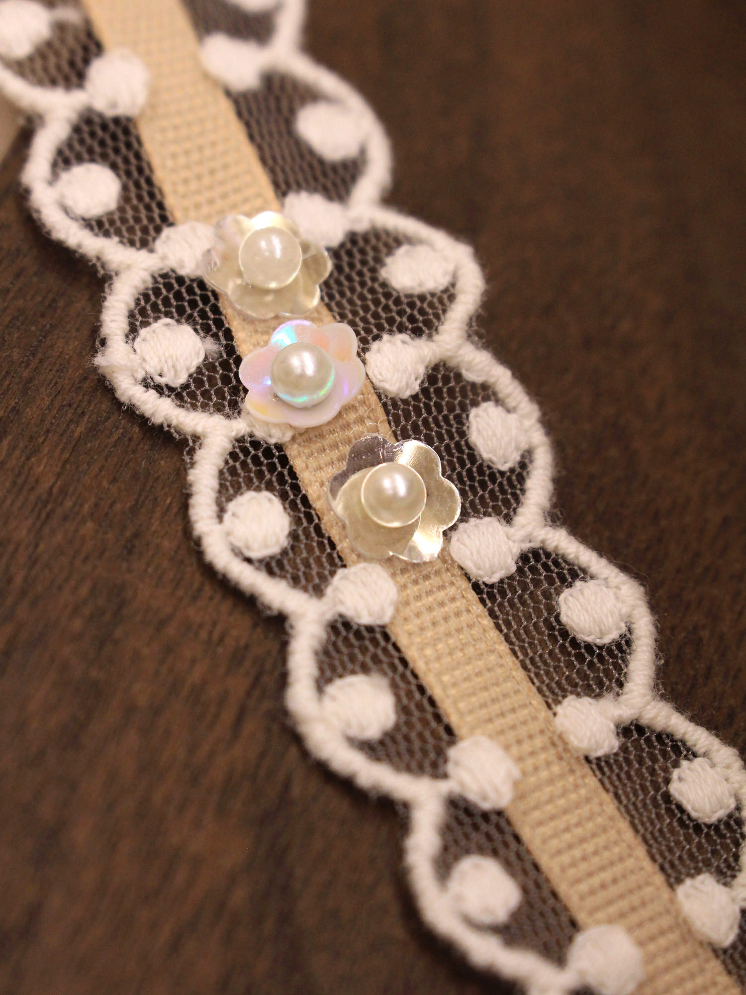 ▸ 素材:銅鍍14+18KGP、仿珠、亮片、緞帶、聚酯纖維等複合材質