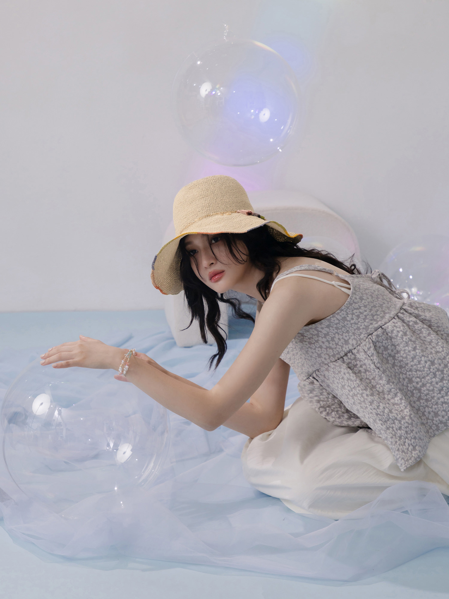 ▸ 亮片立體串花,採用不易變形厚磅設計,邊緣較硬挺,配戴會有些微異樣感為正常現象