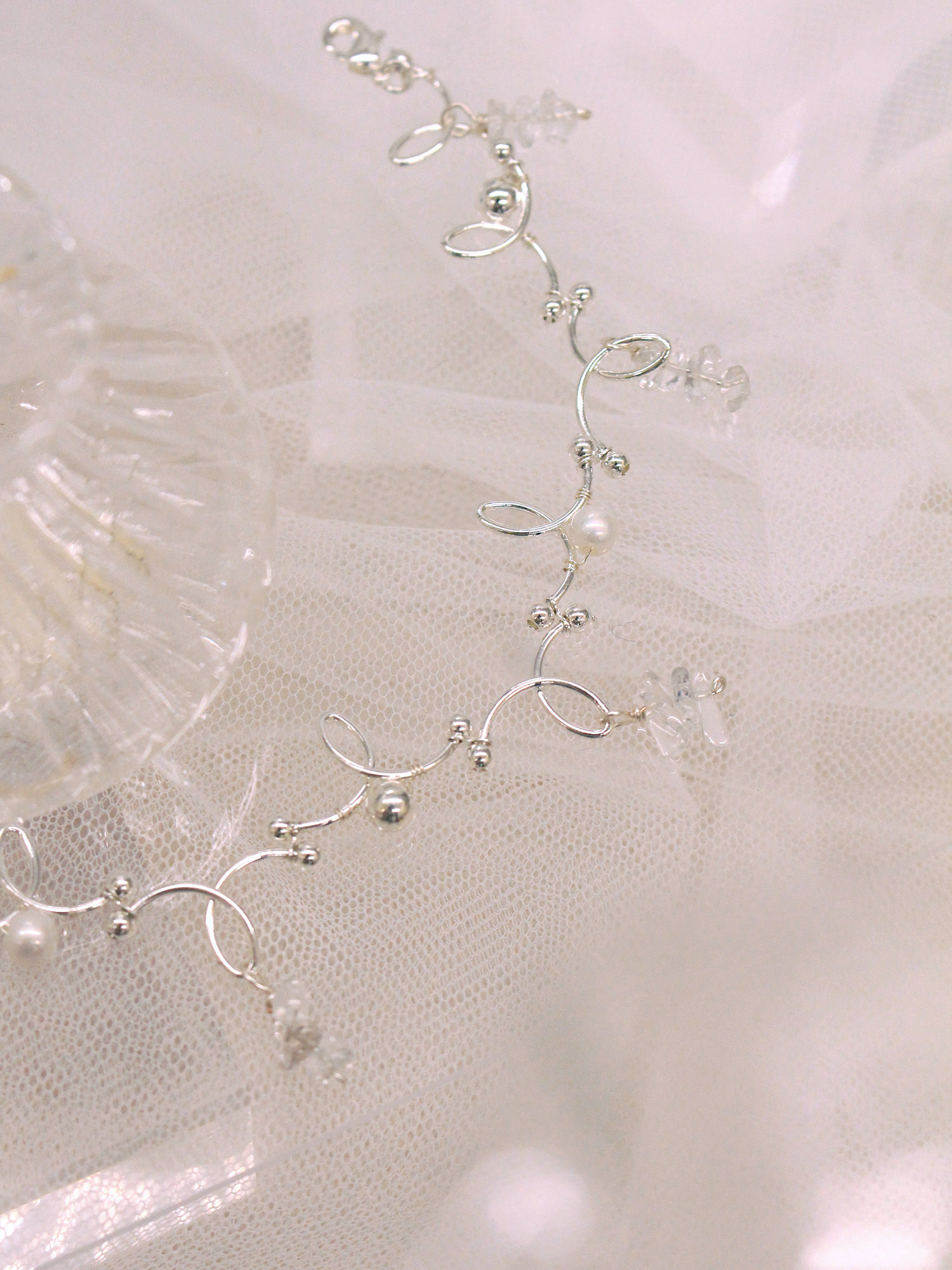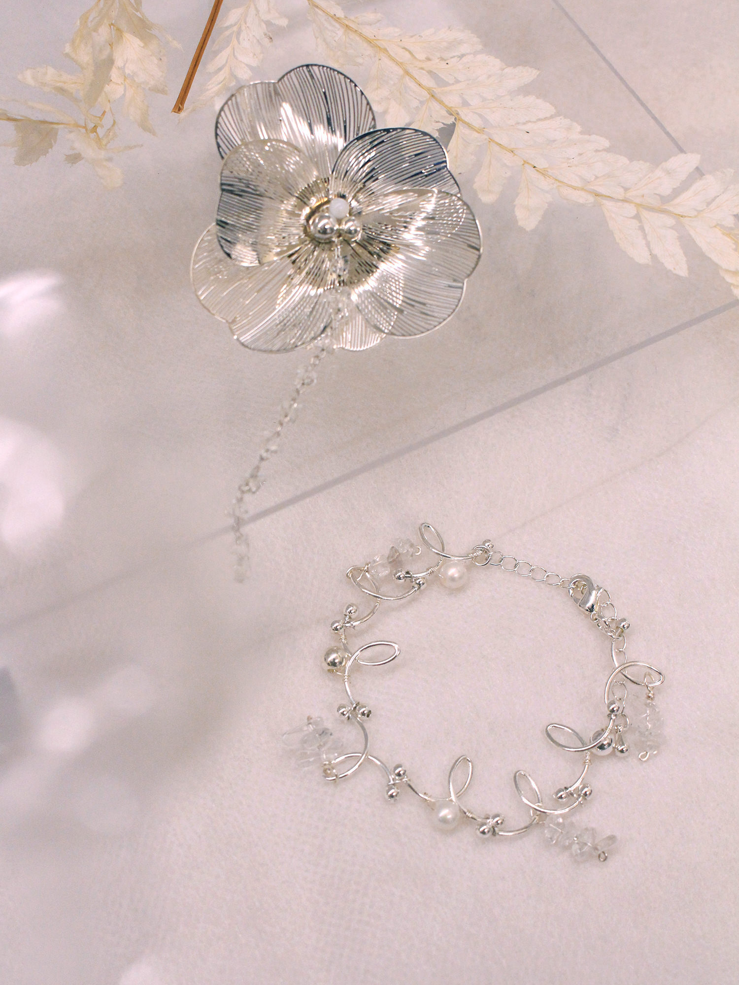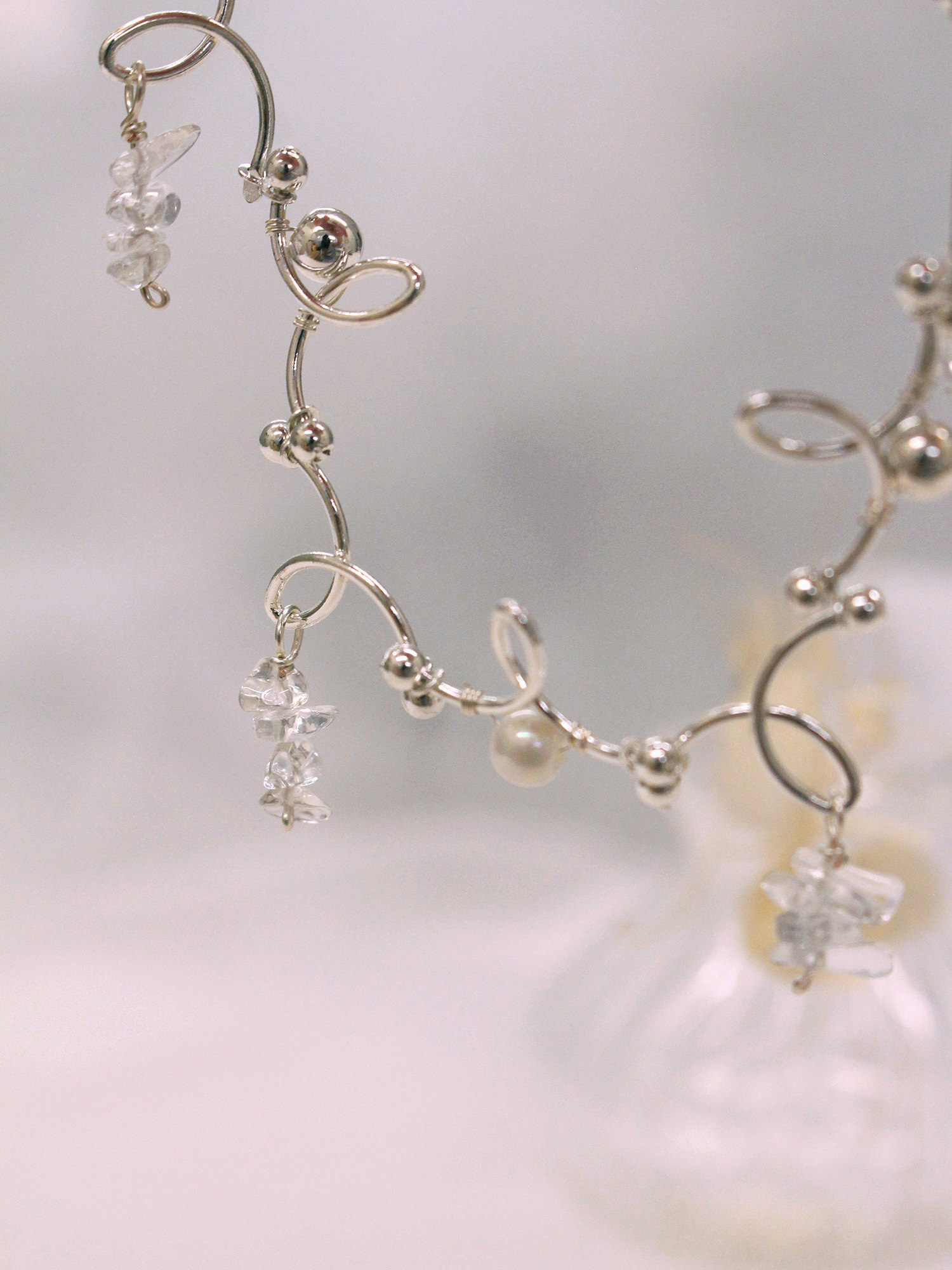 ▸ 素材:銅鍍銀、白水晶、仿珠、串珠等複合材質