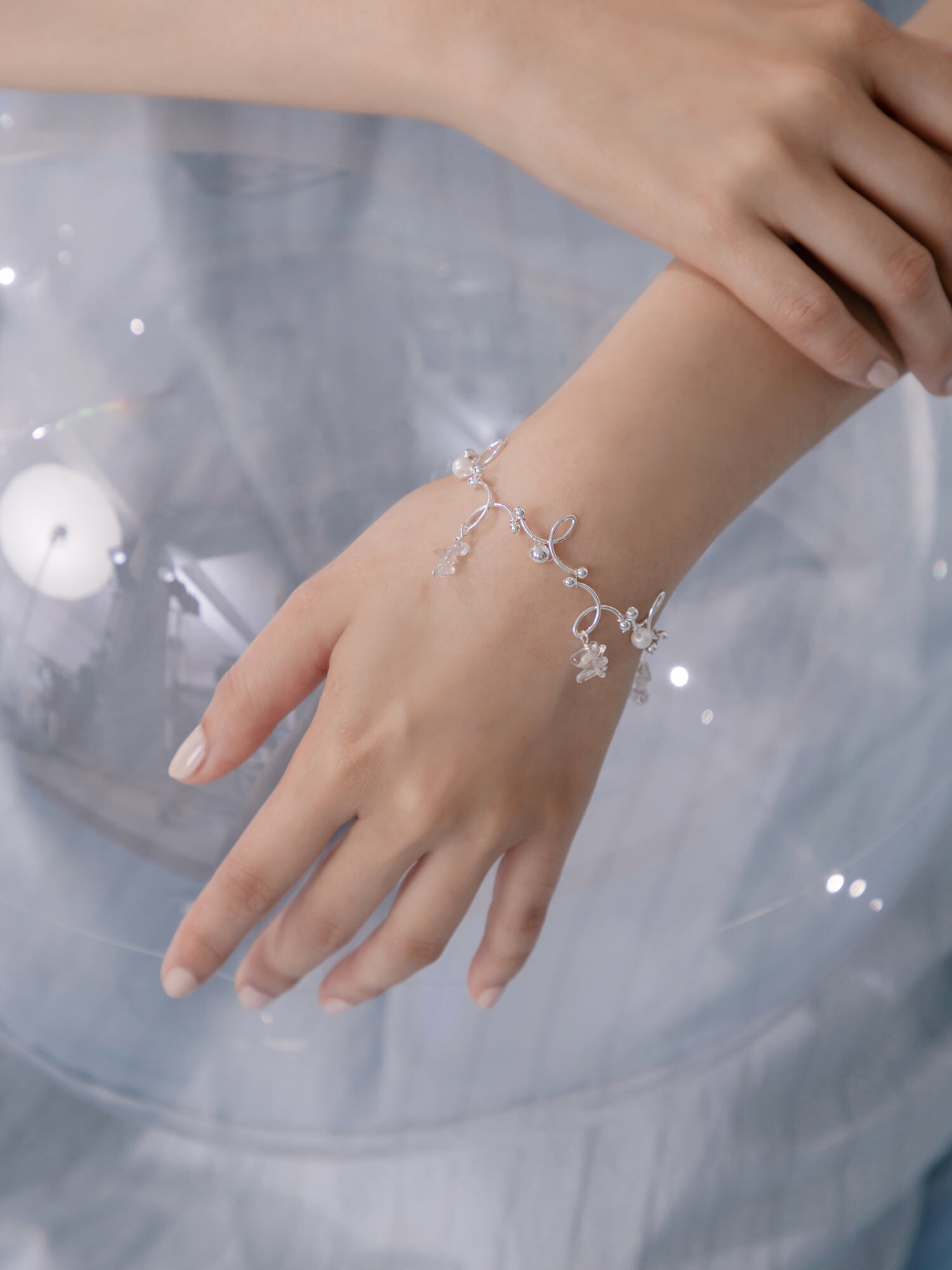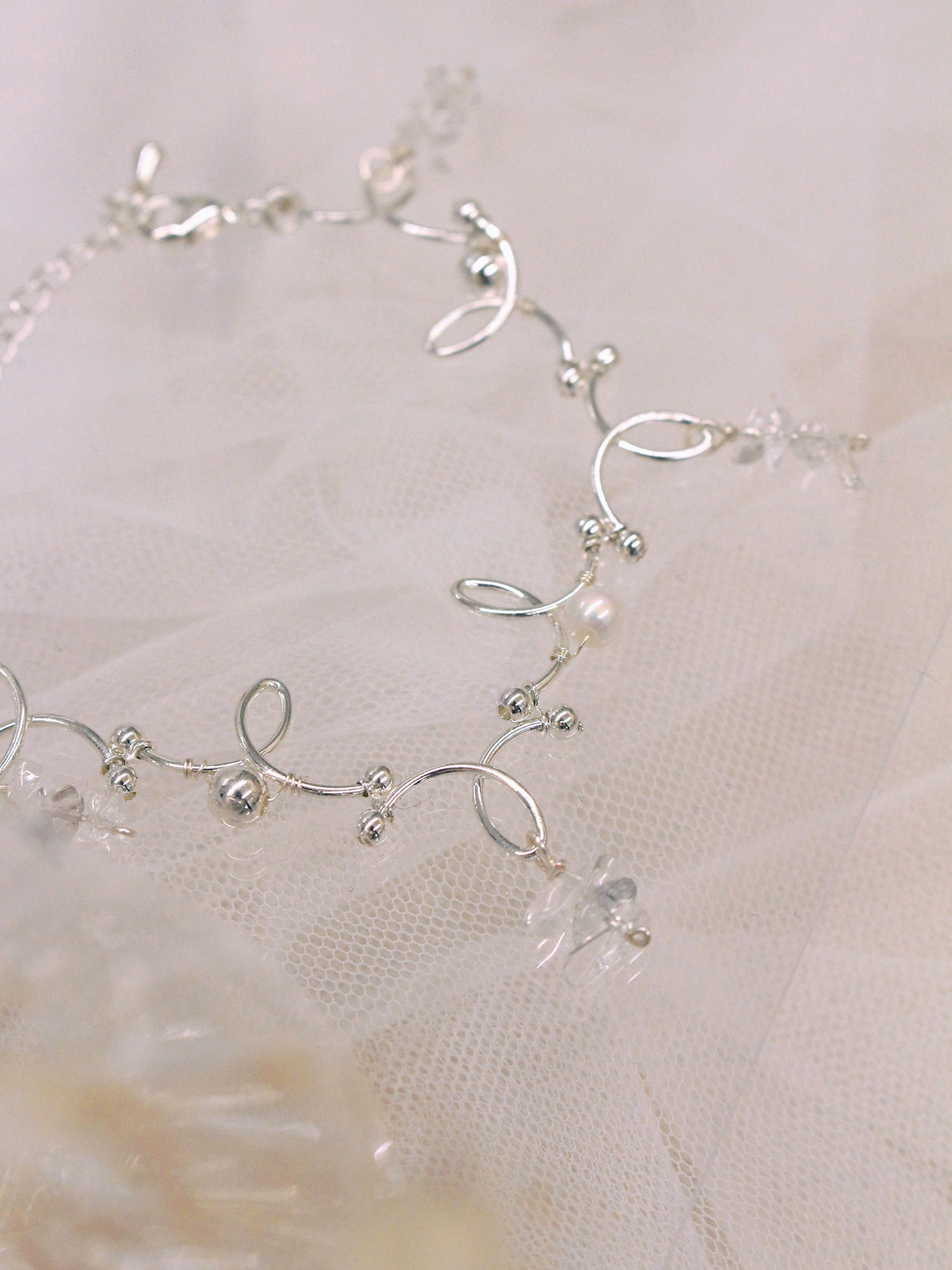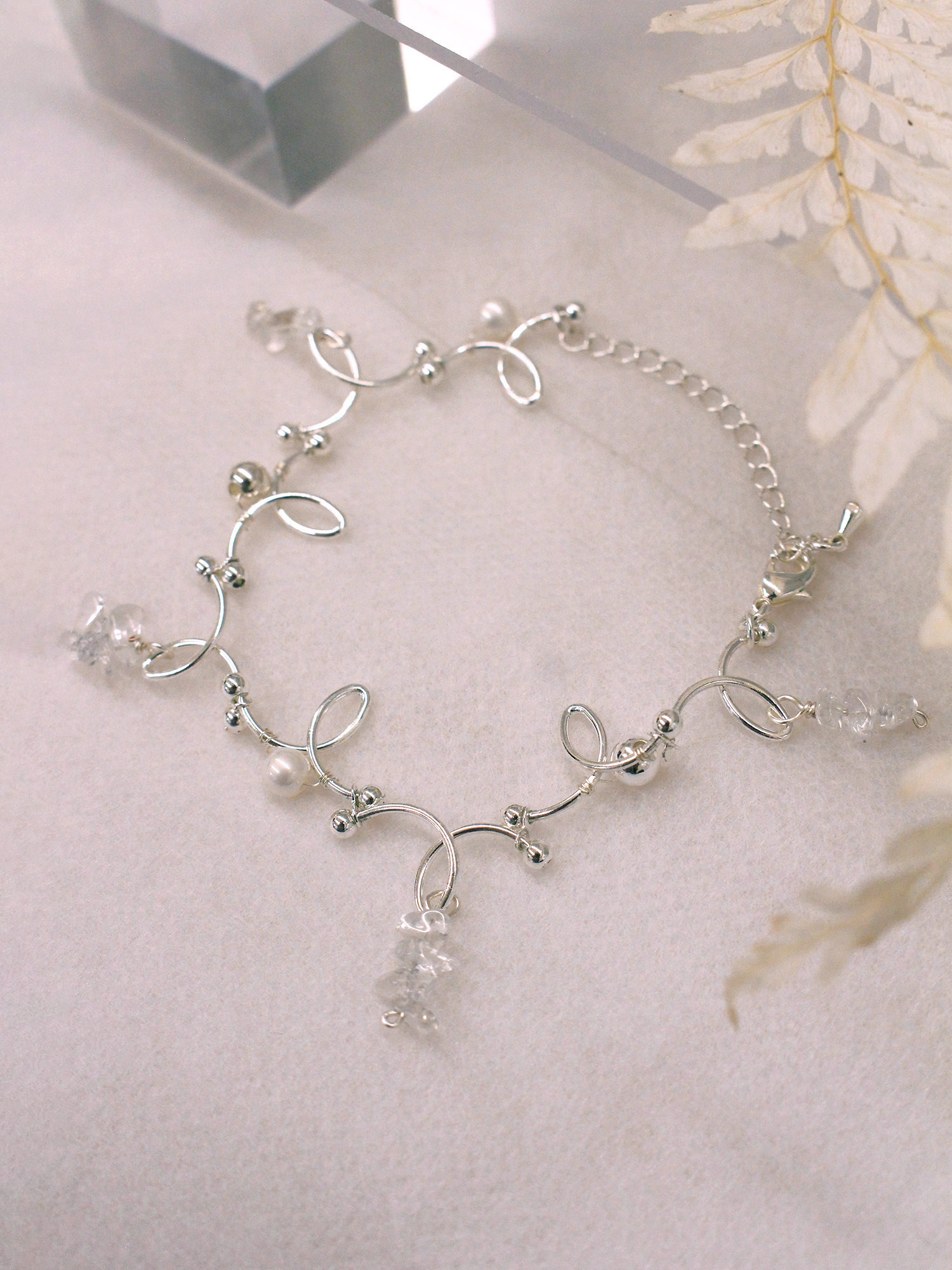 ▸ 素材:銅鍍銀、白水晶、仿珠、串珠等複合材質