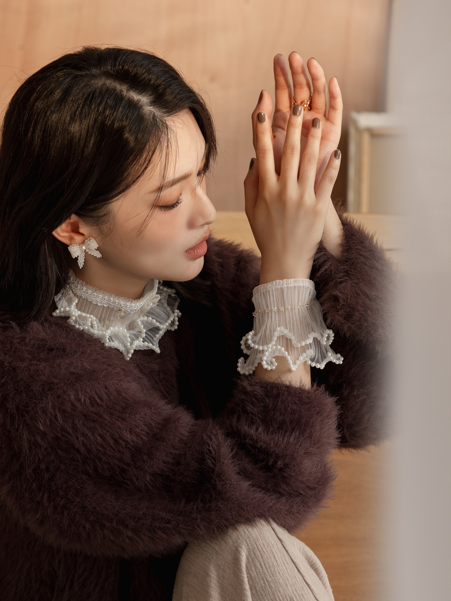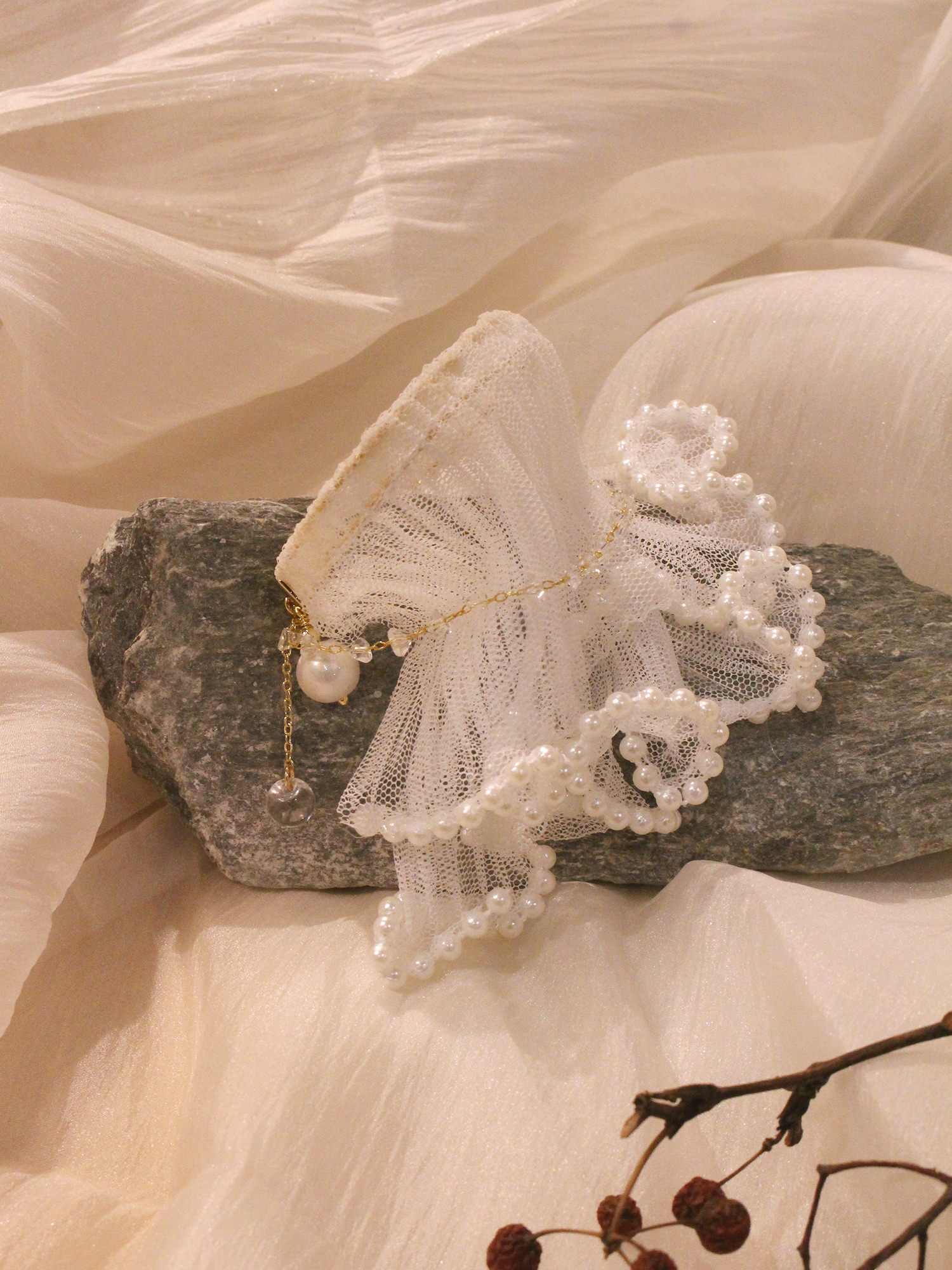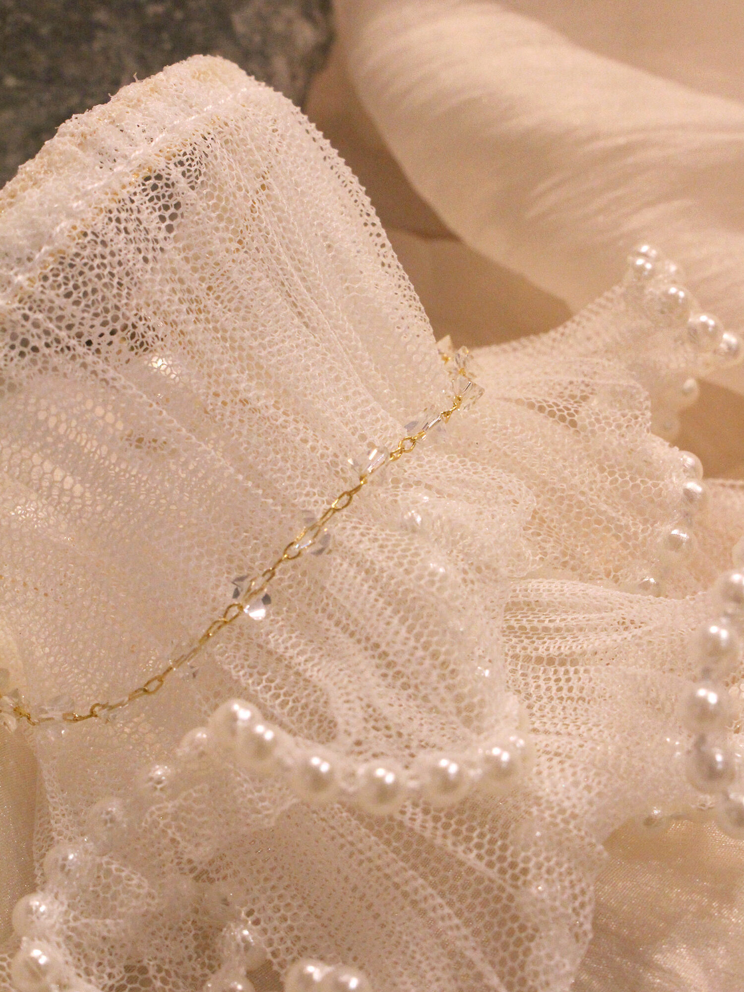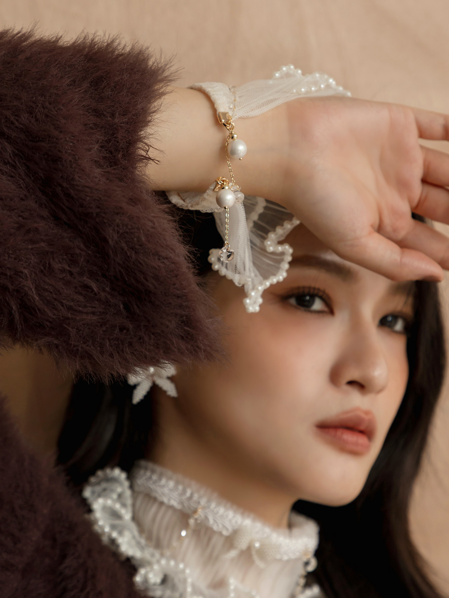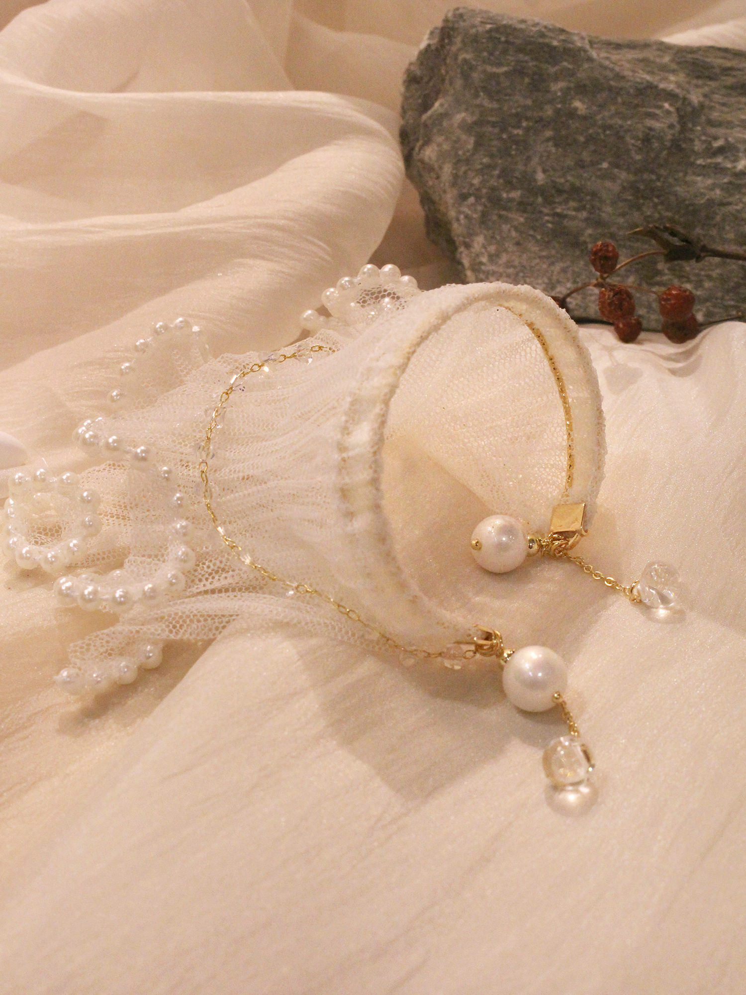 ▸ 素材:銅鍍14+18KGP、仿珠、日本樹酯氣泡珠、三角水晶、聚酯纖維等複合材質