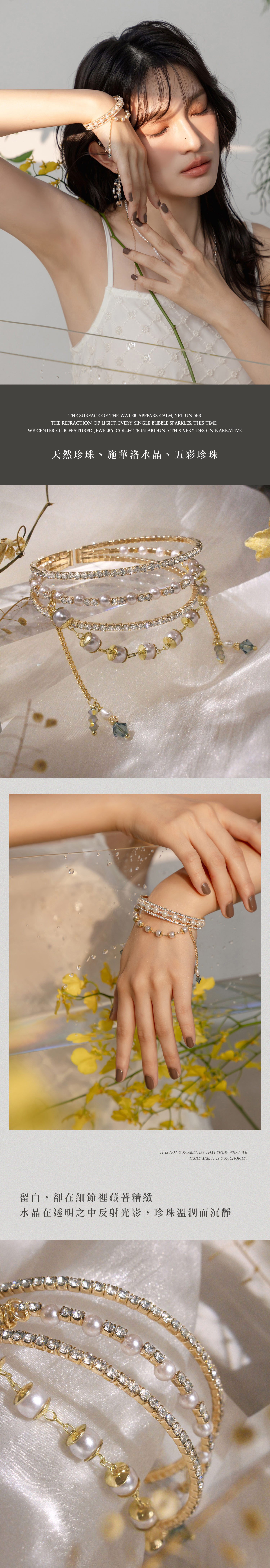 ▸ 素材:銅鍍14KGP、天然淡水珍珠、施華洛水晶角珠、仿珠、鋯石等複合材質