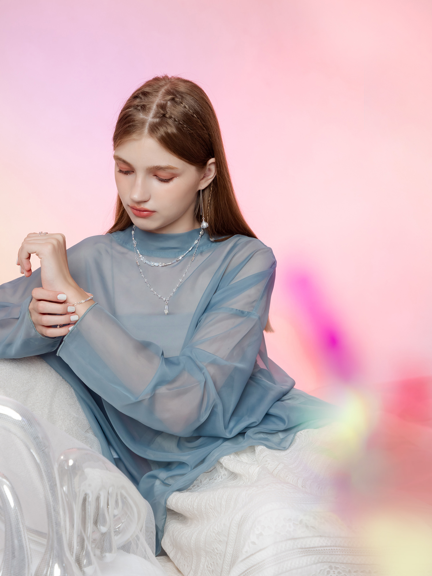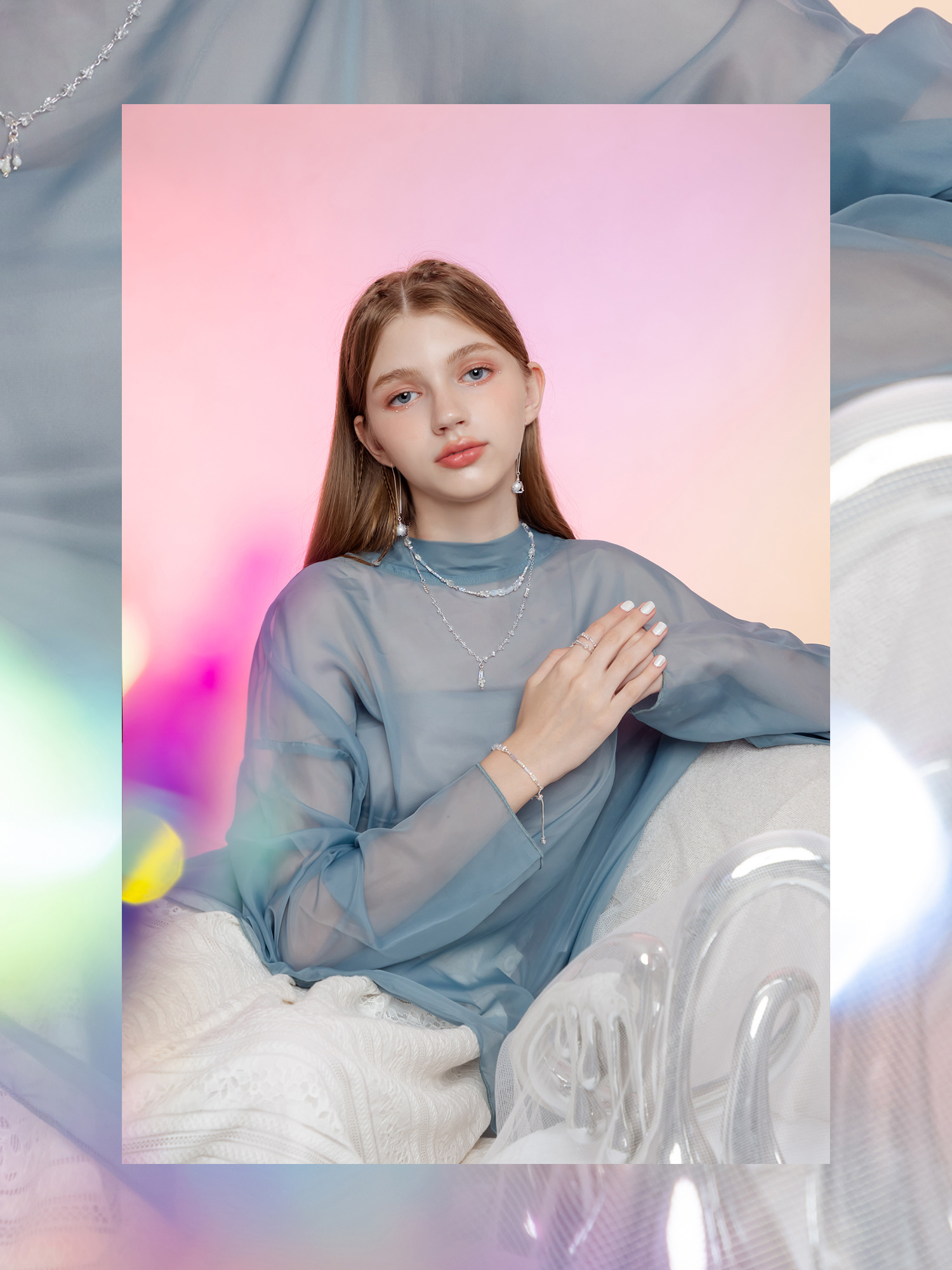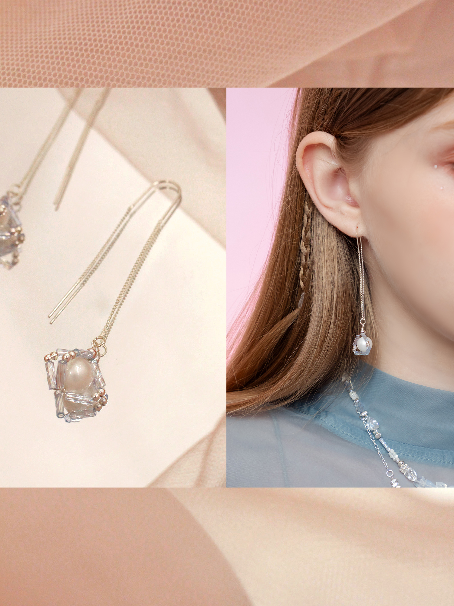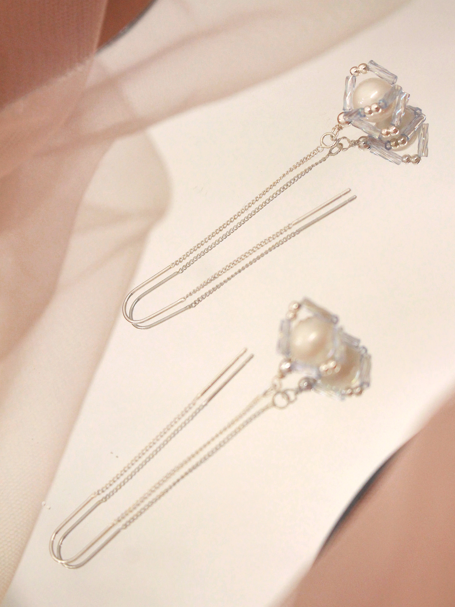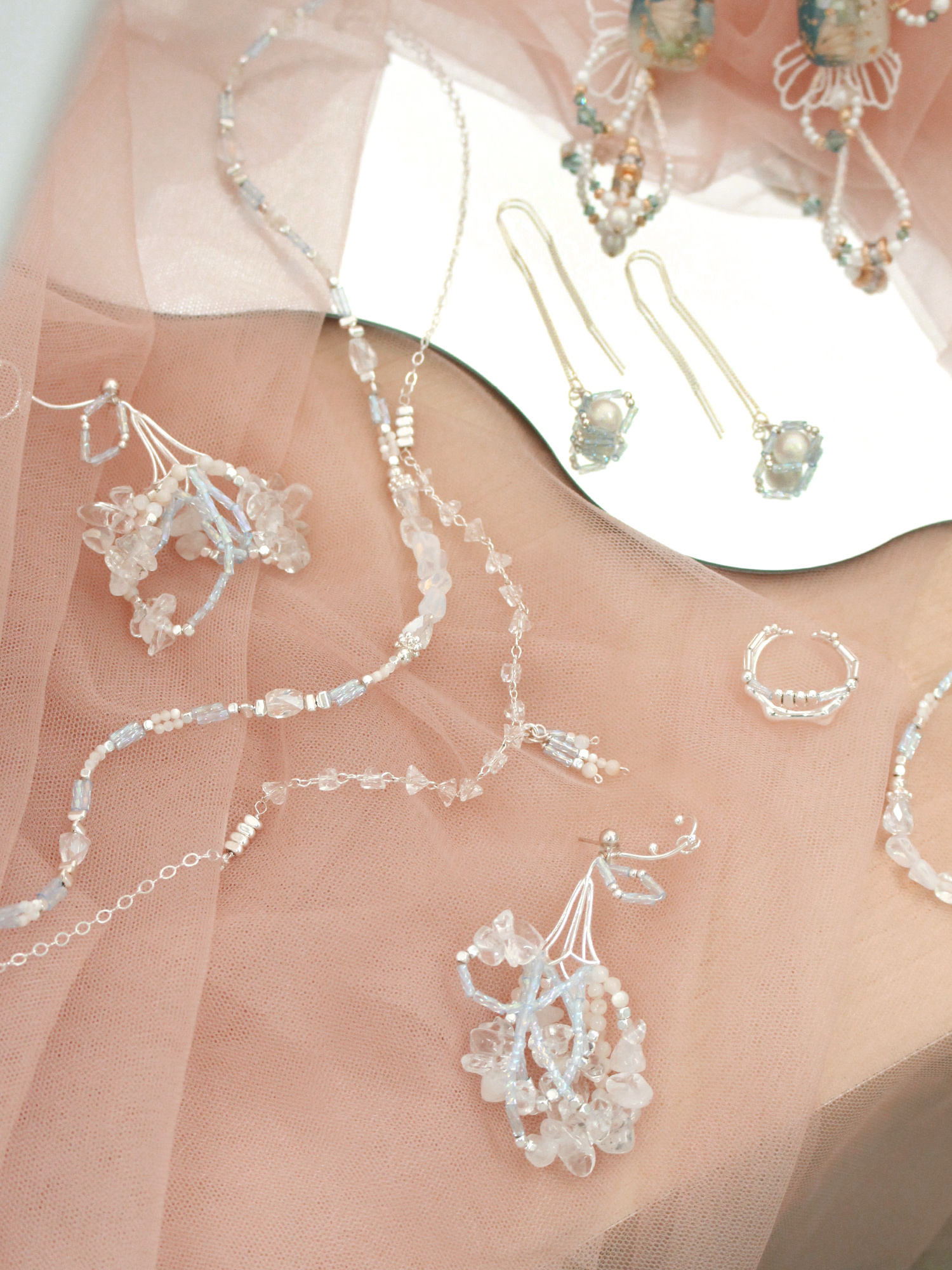 ▸ 素材:銅鍍白銀、仿珠、串珠等複合材質