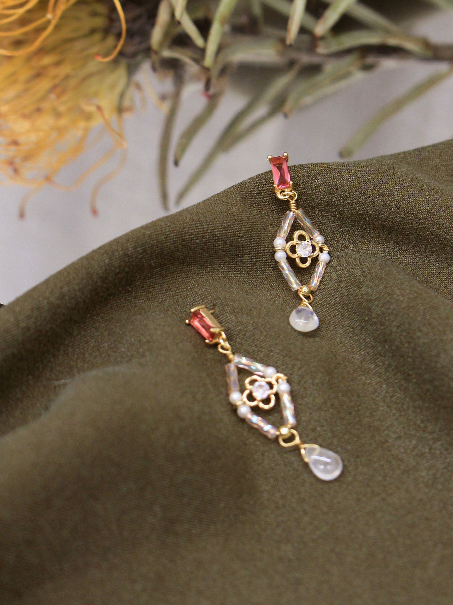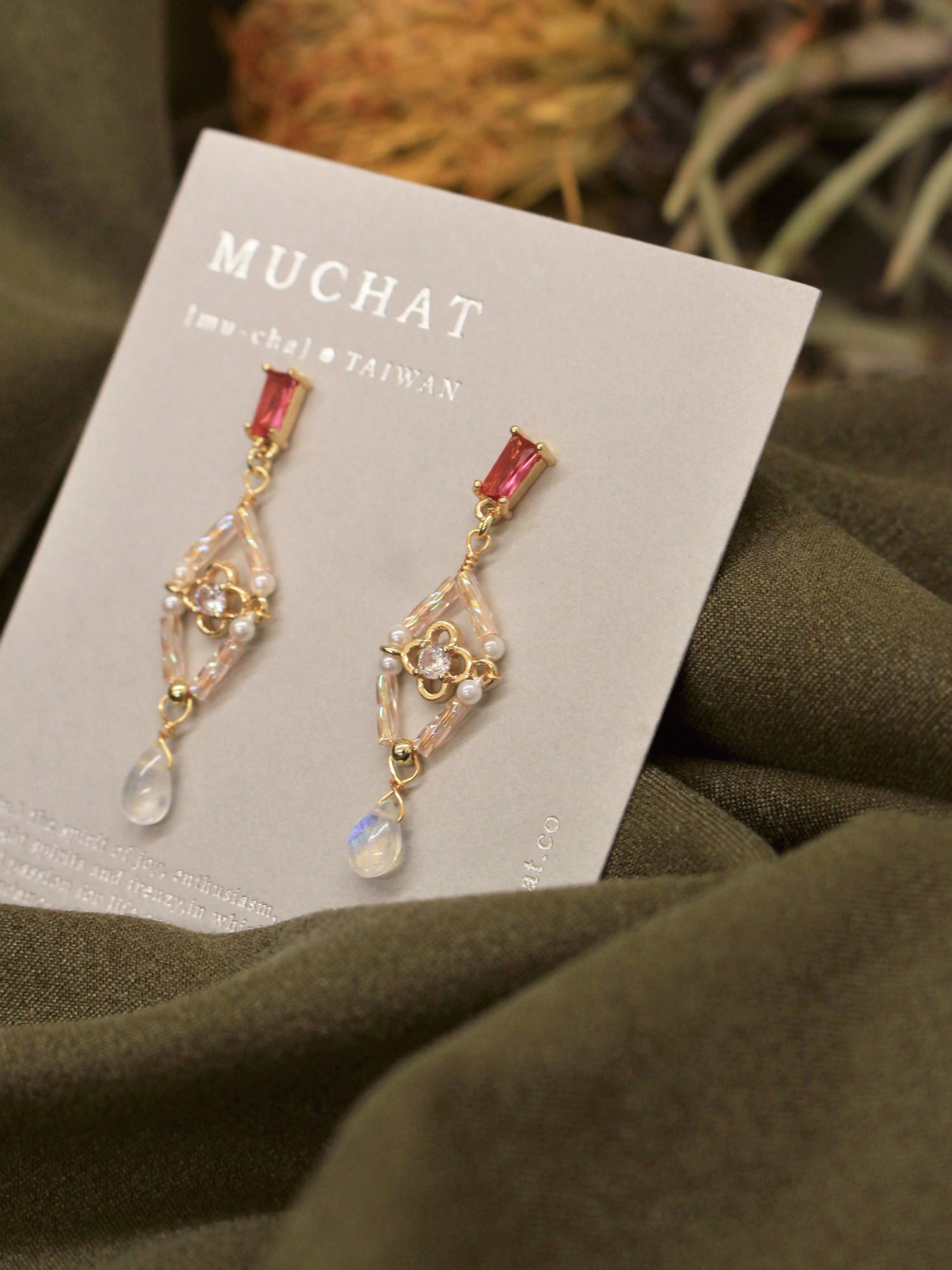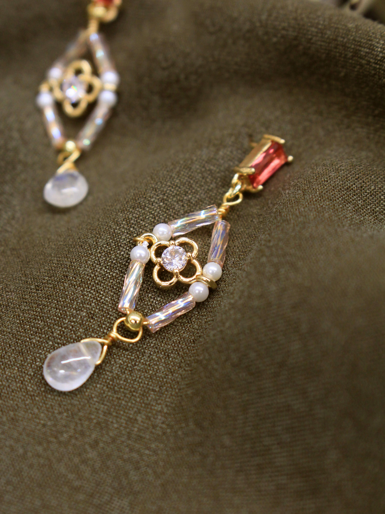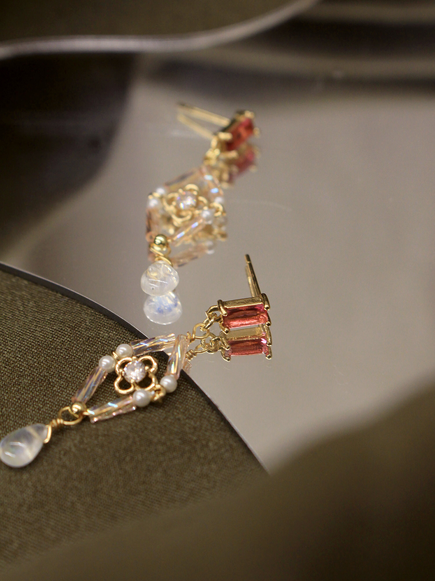 ▸ 素材:銅鍍14KGP、月光石、仿珠、串珠、鋯石、水晶等複合材質