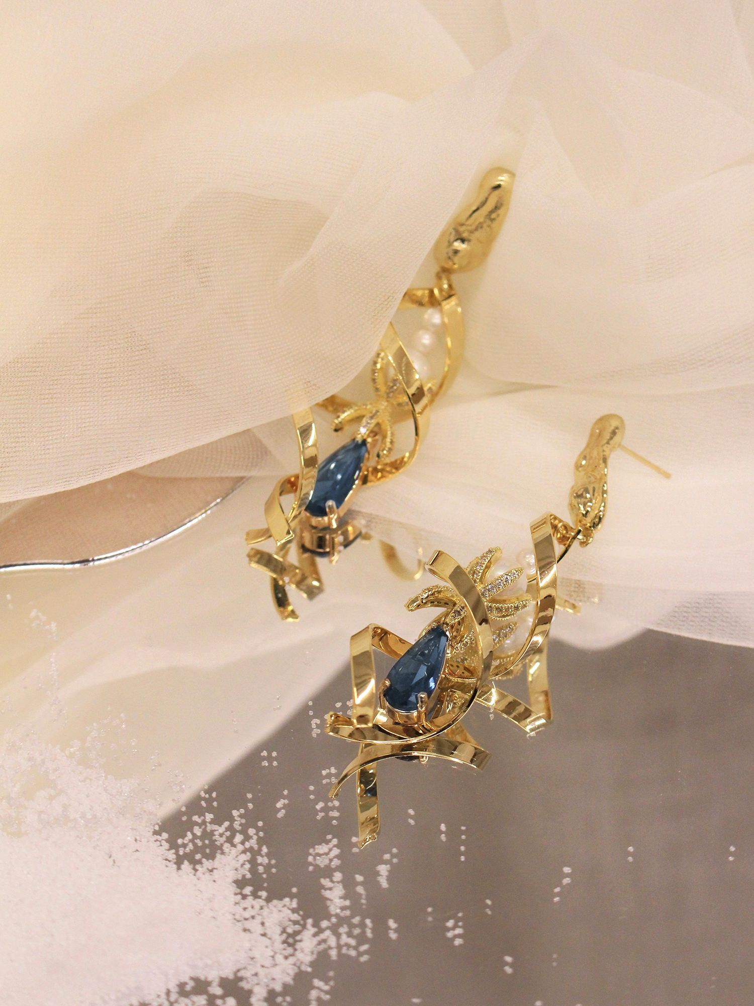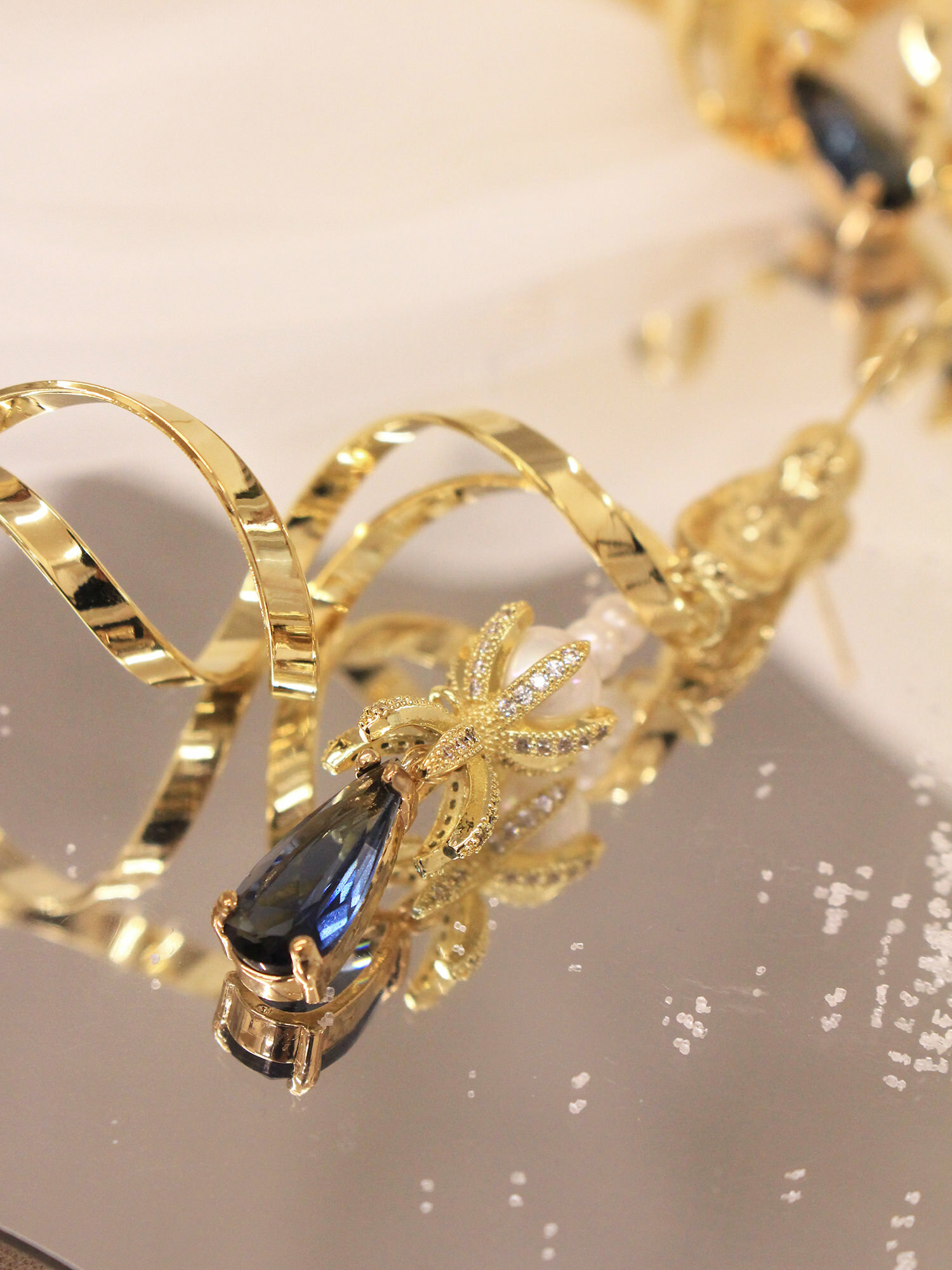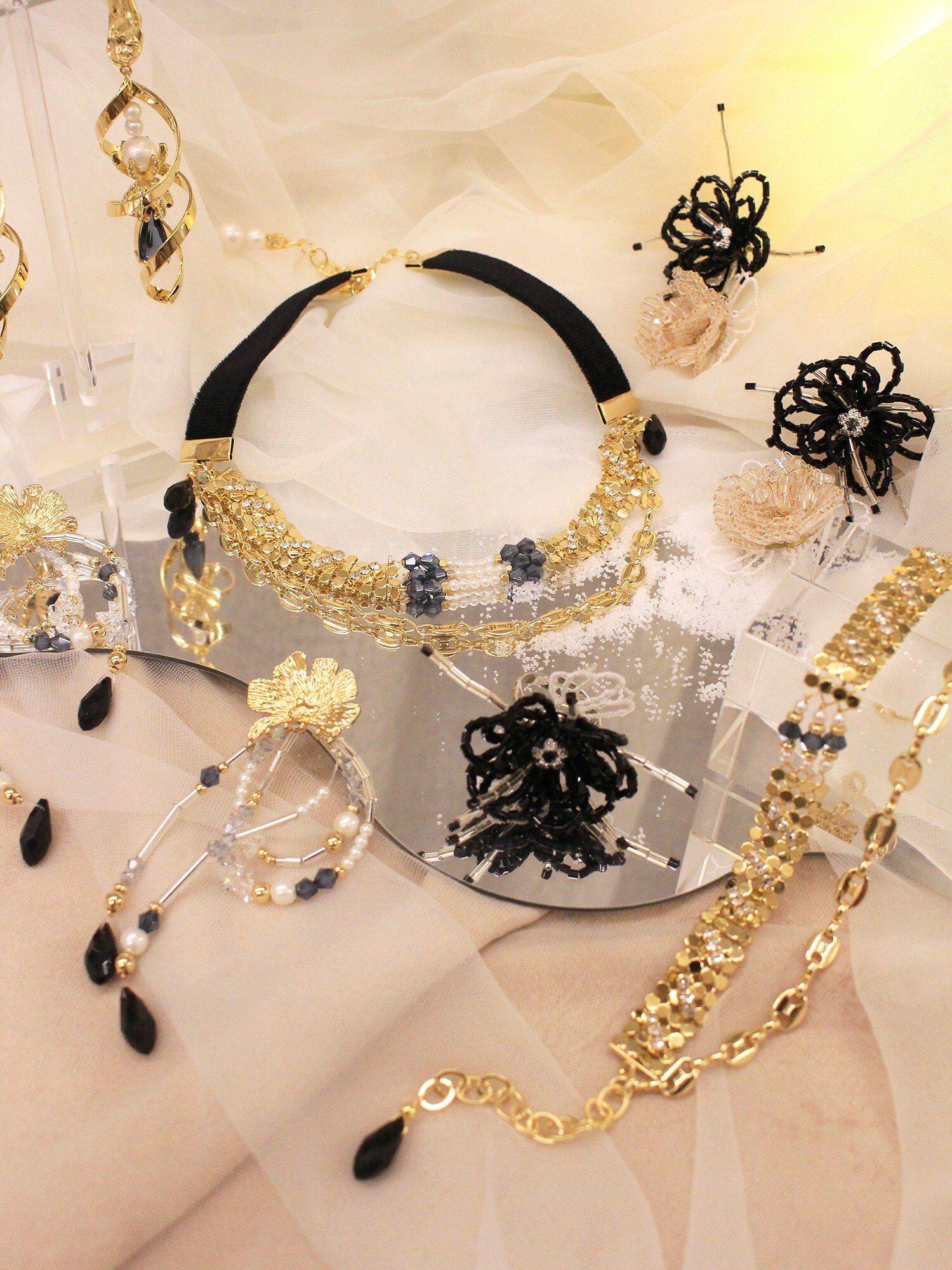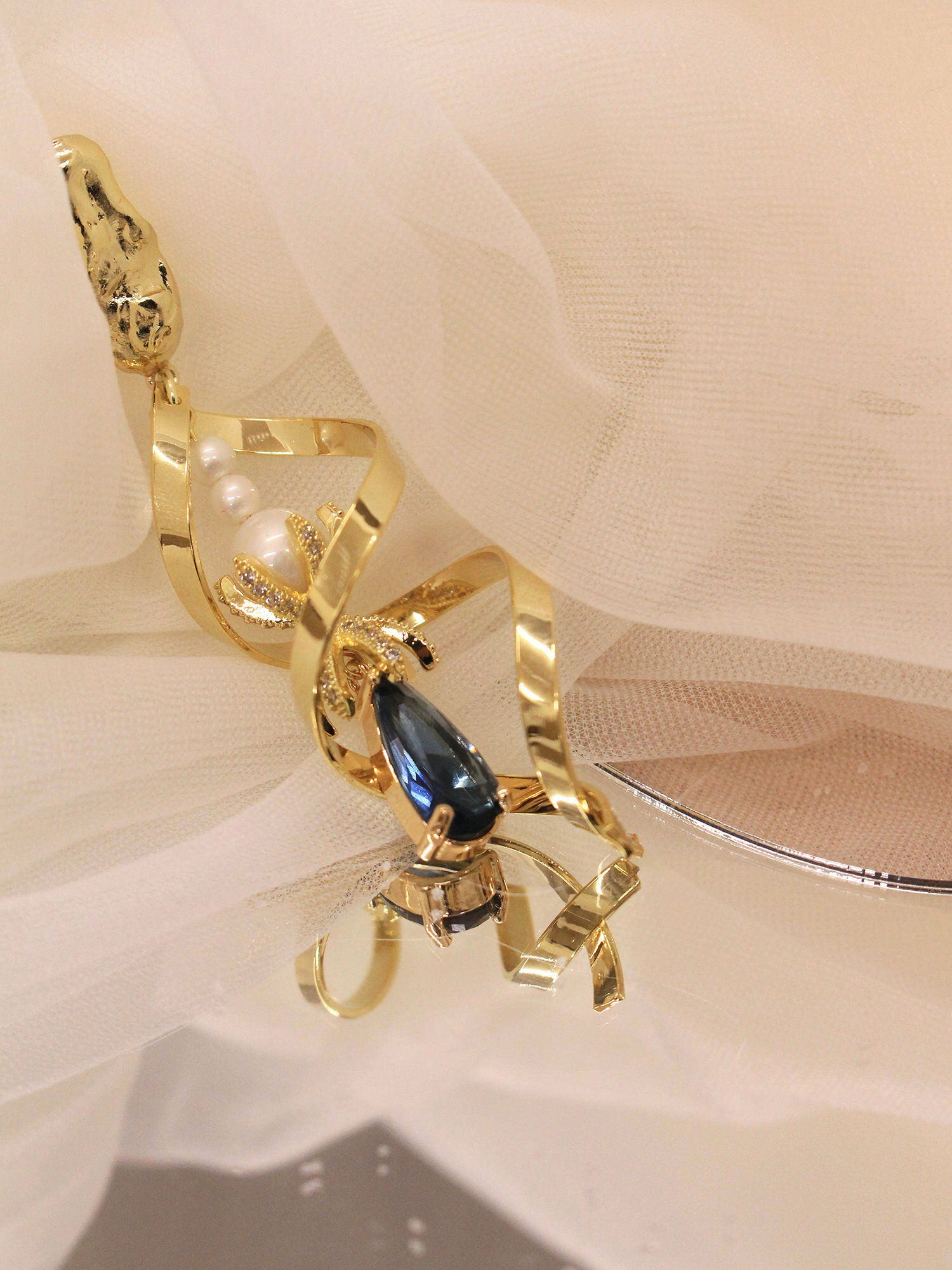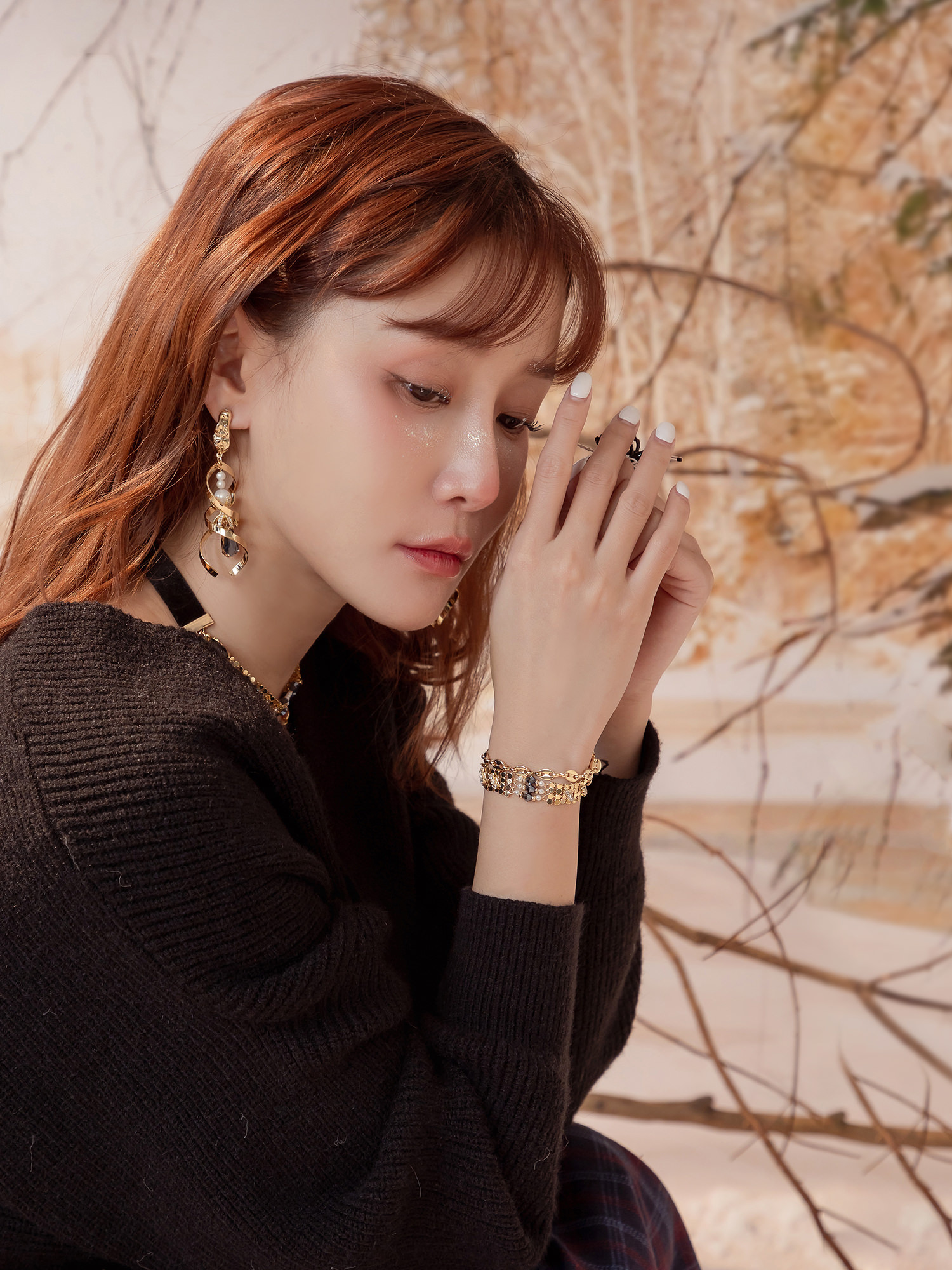 ▸ 素材:銅鍍14KGP、鋯石、水晶、仿珠等複合材質