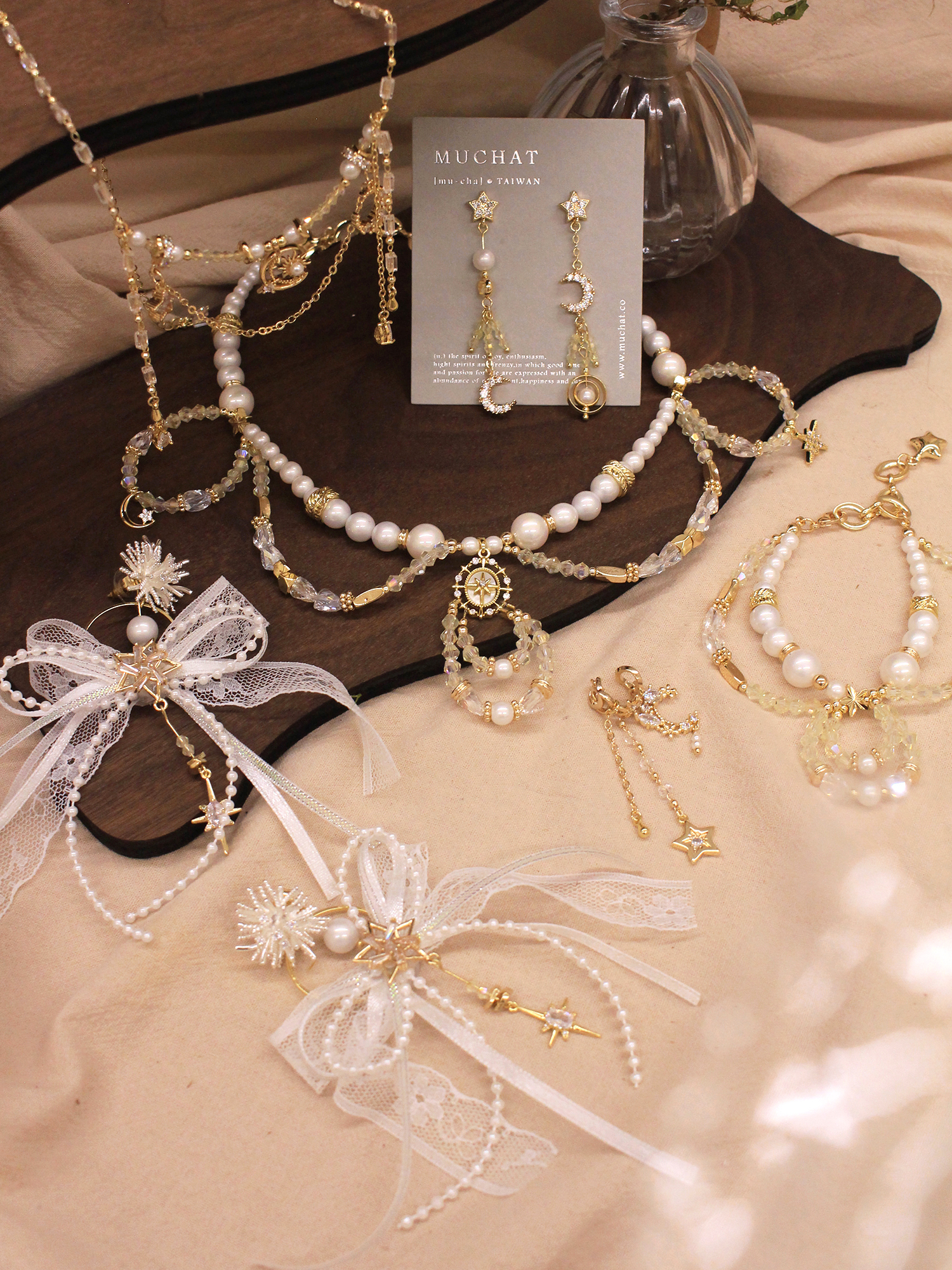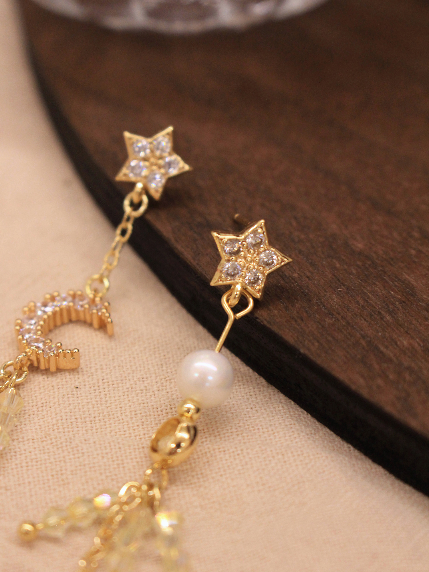 ▸ 素材:銅鍍14+16KGP、鋯石、仿珠、水晶珠等複合材質