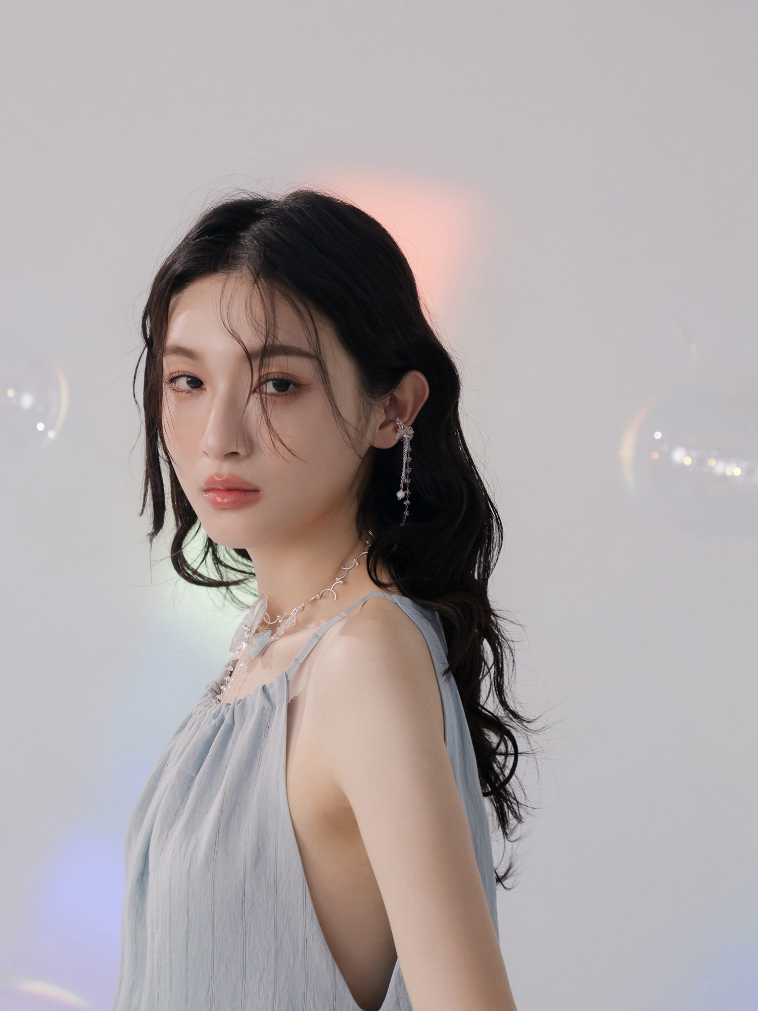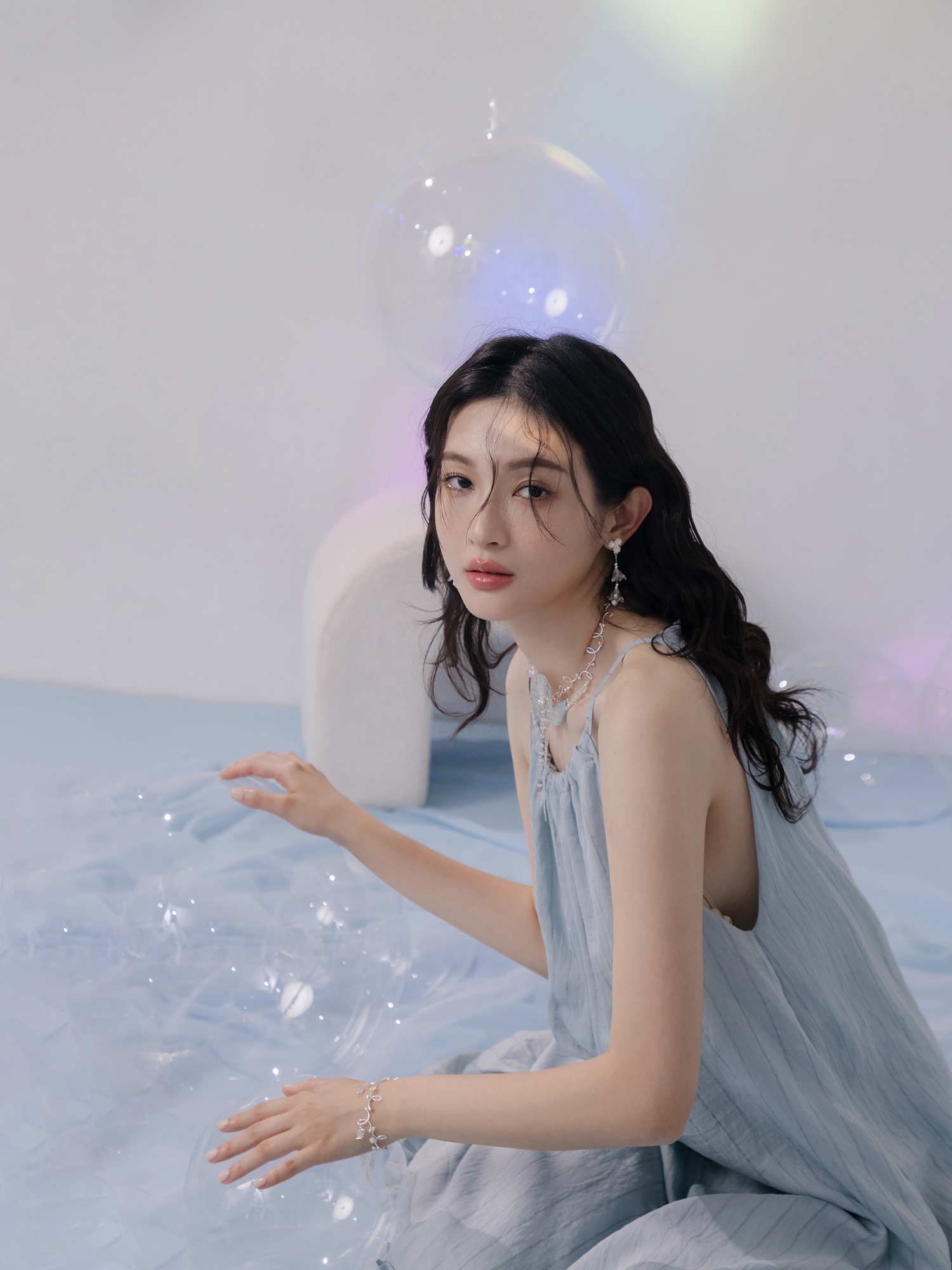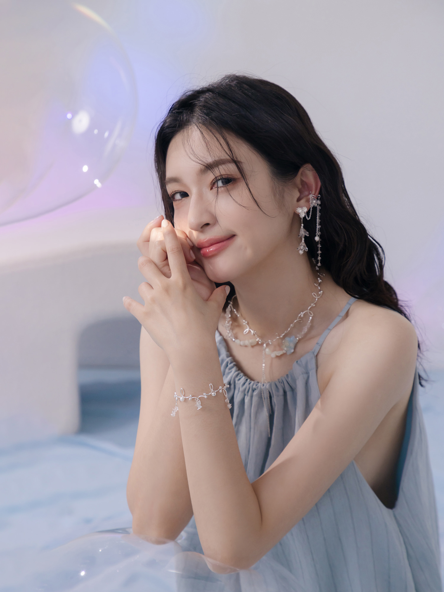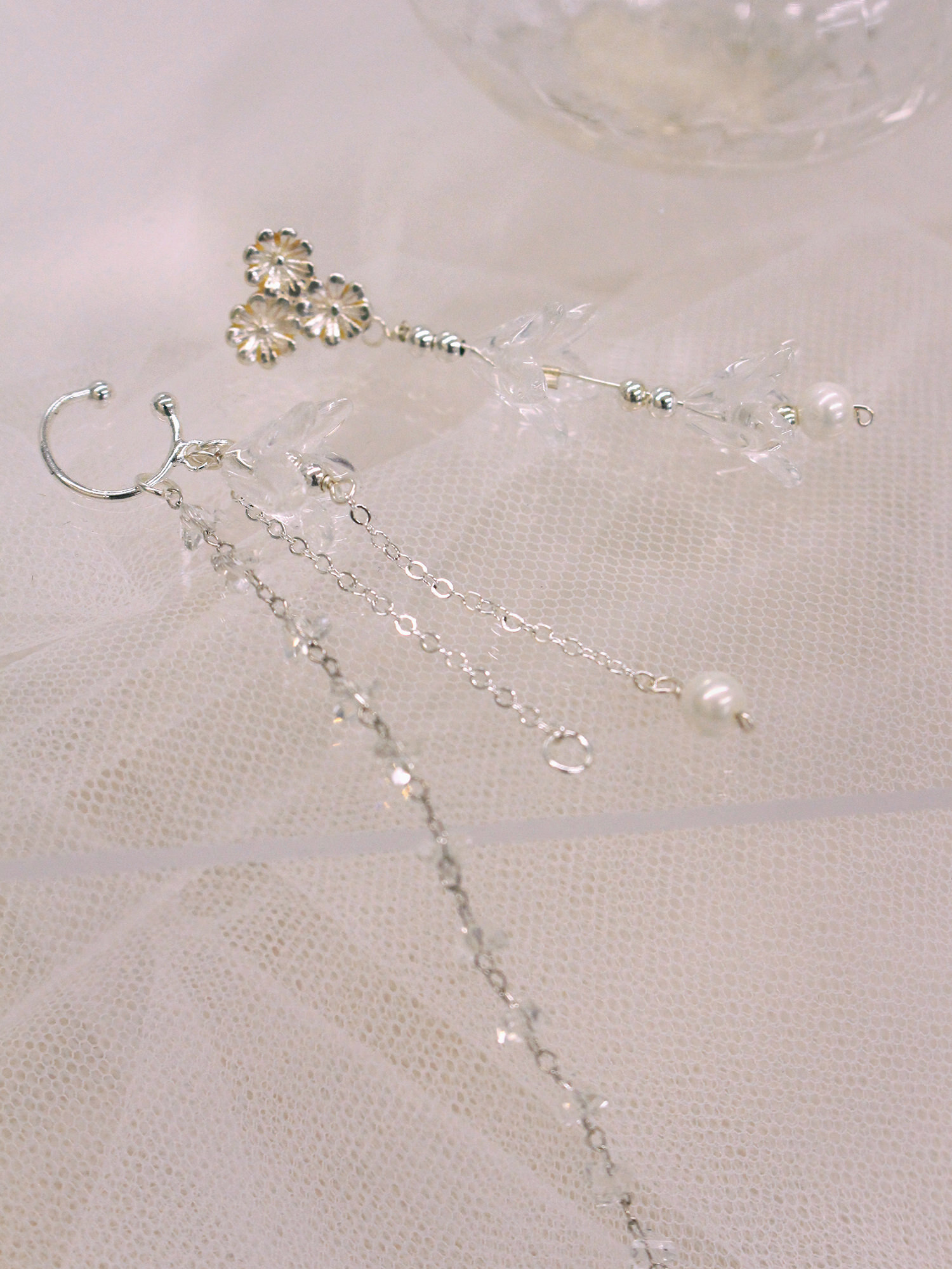 ▸ 素材:銅鍍白K、三角水晶、樹酯、串珠、仿珠等複合材質