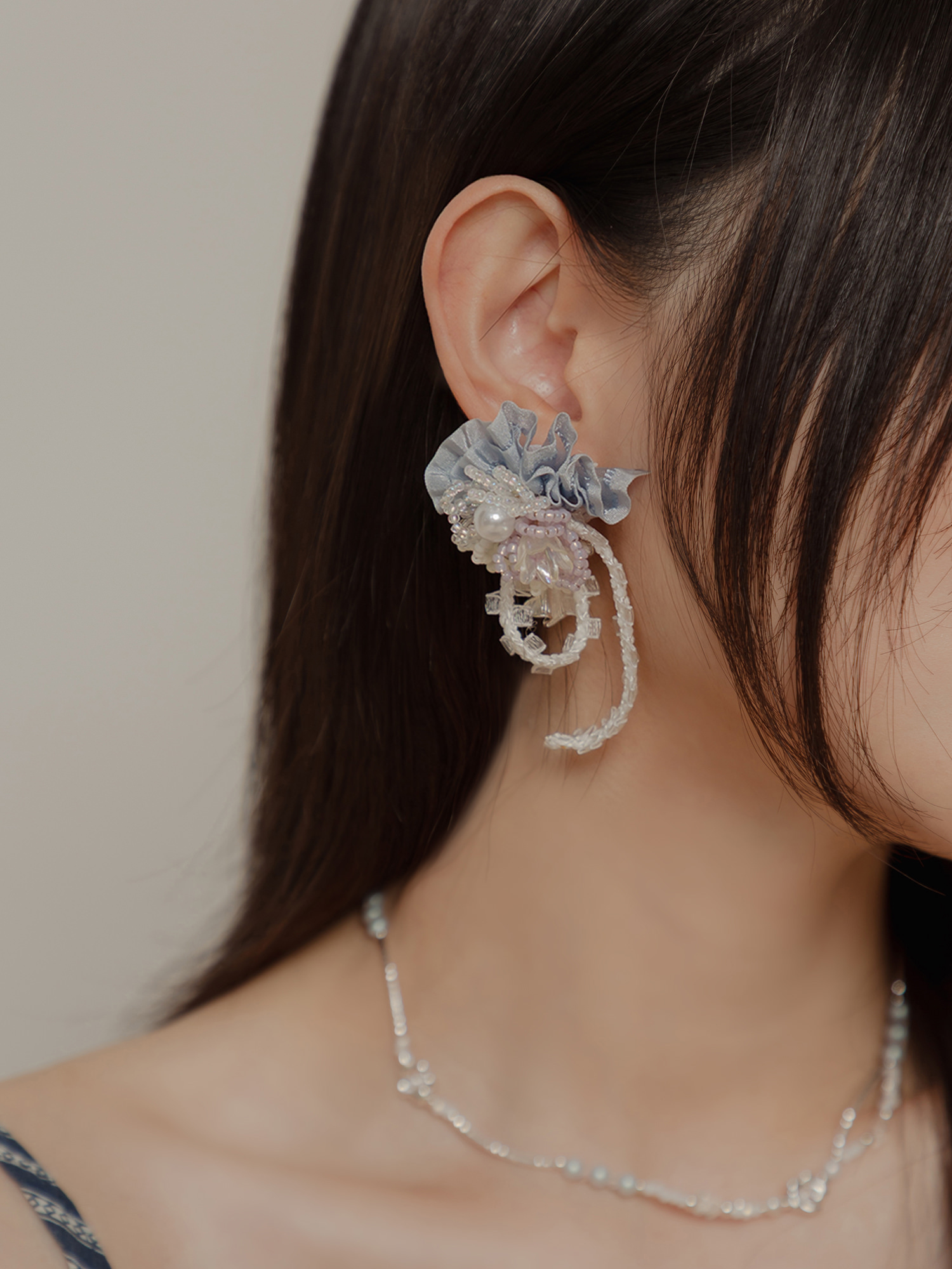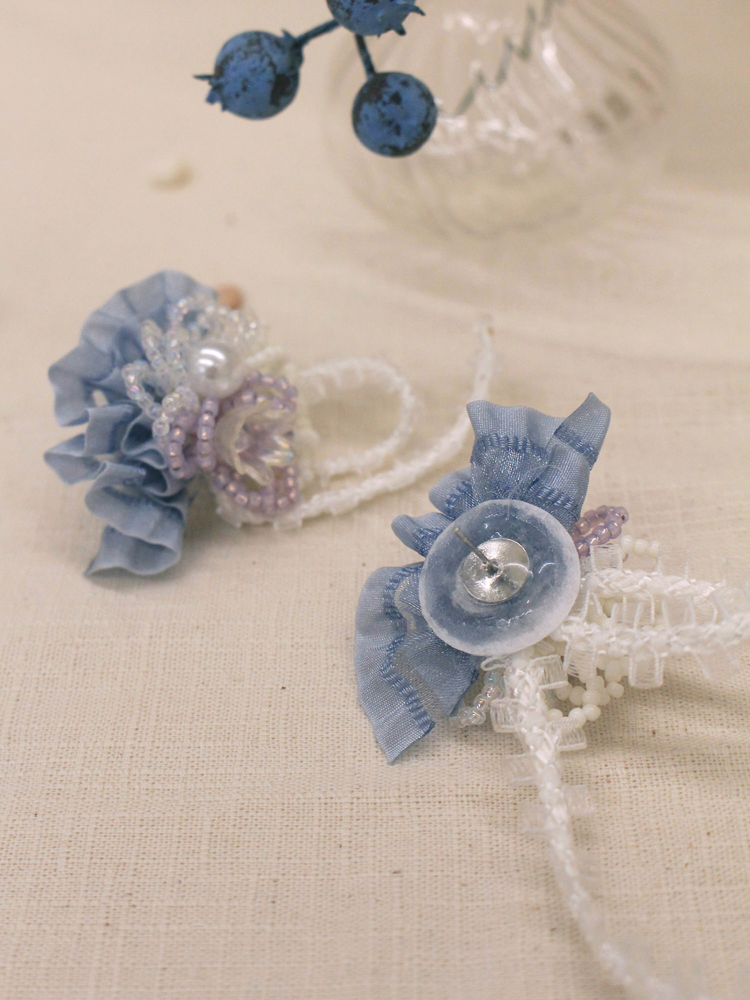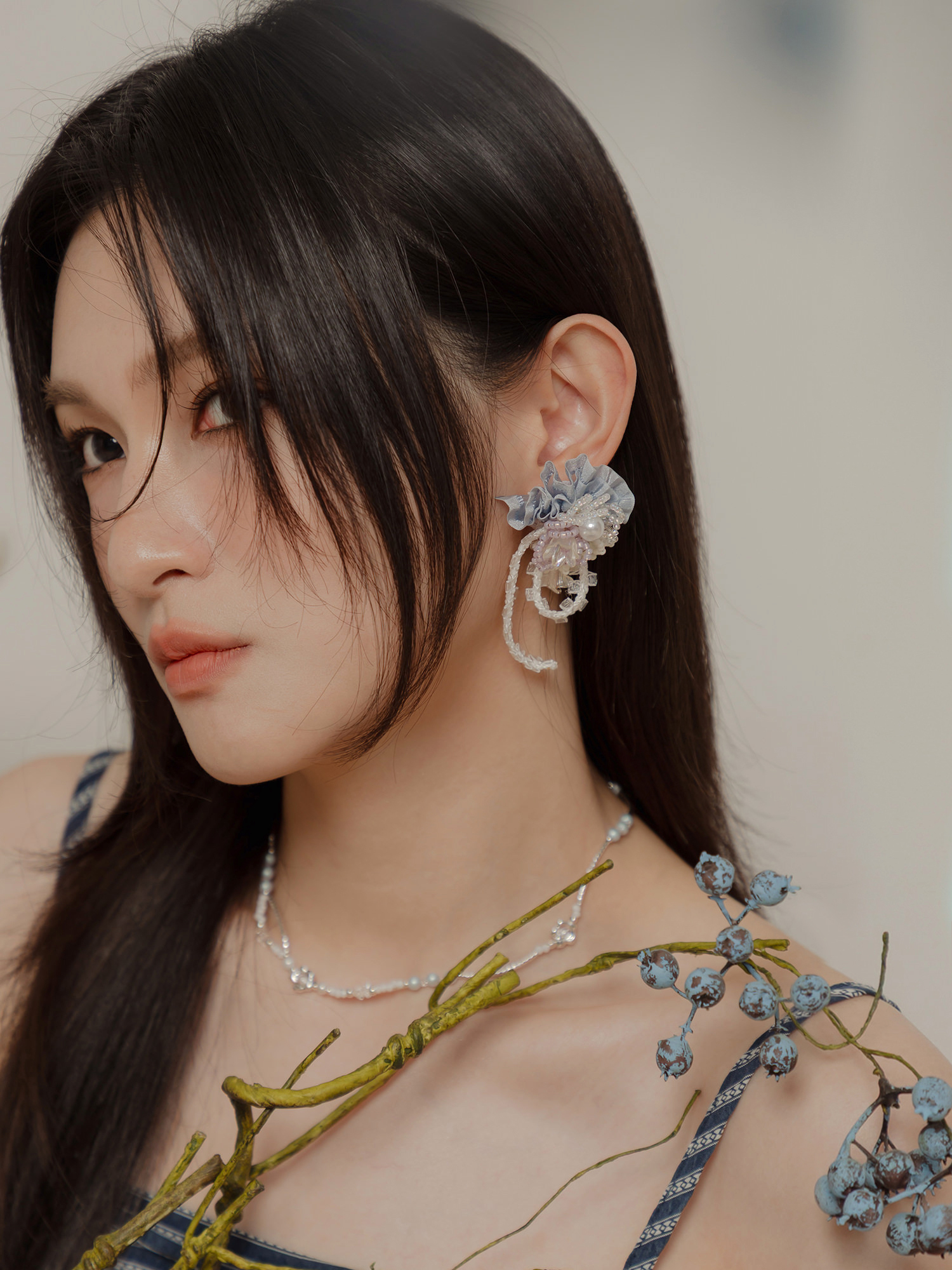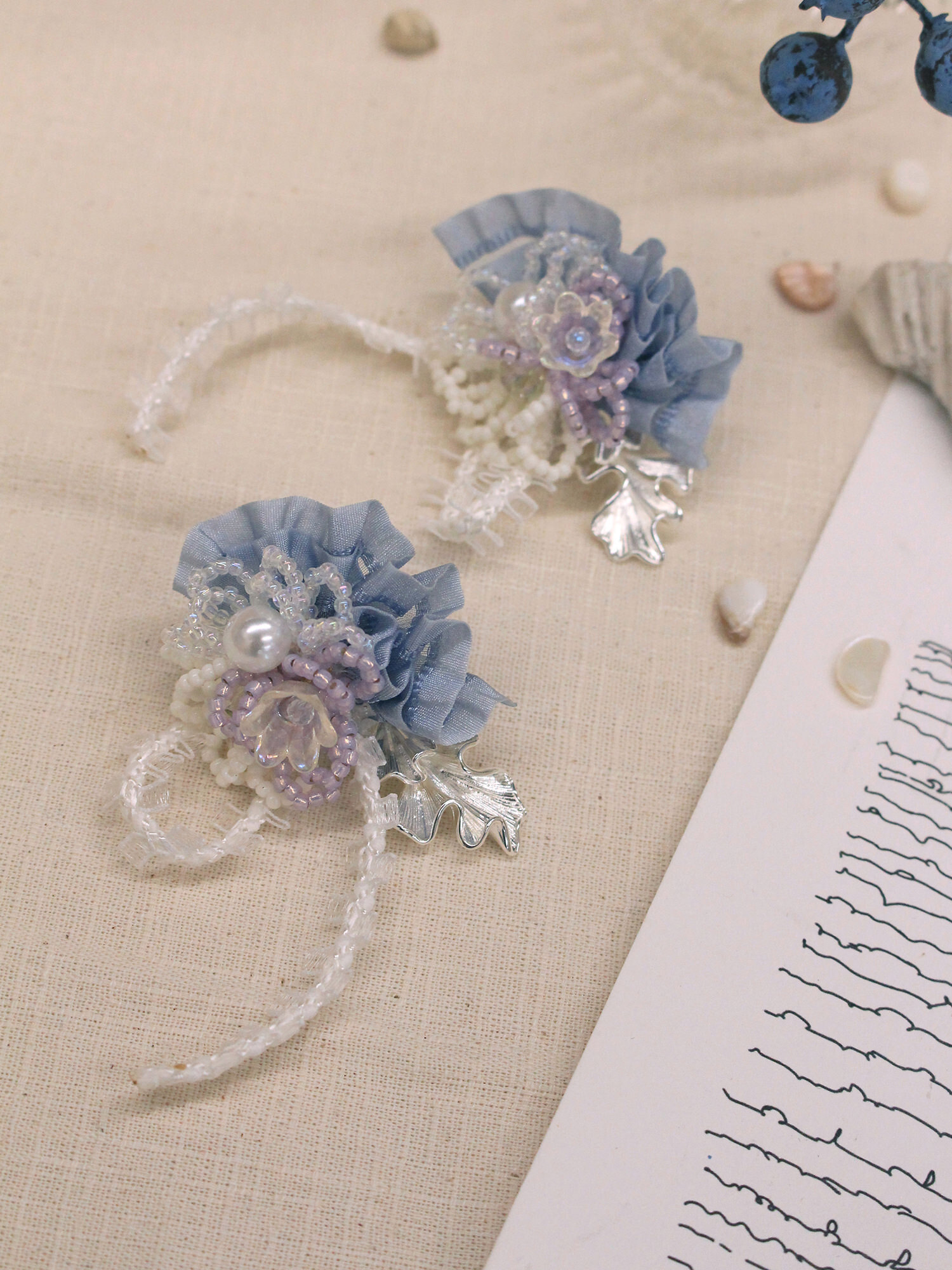 ▸ 素材:銅鍍銀、仿珠、樹酯、串珠、緞帶、聚酯纖維等複合材質