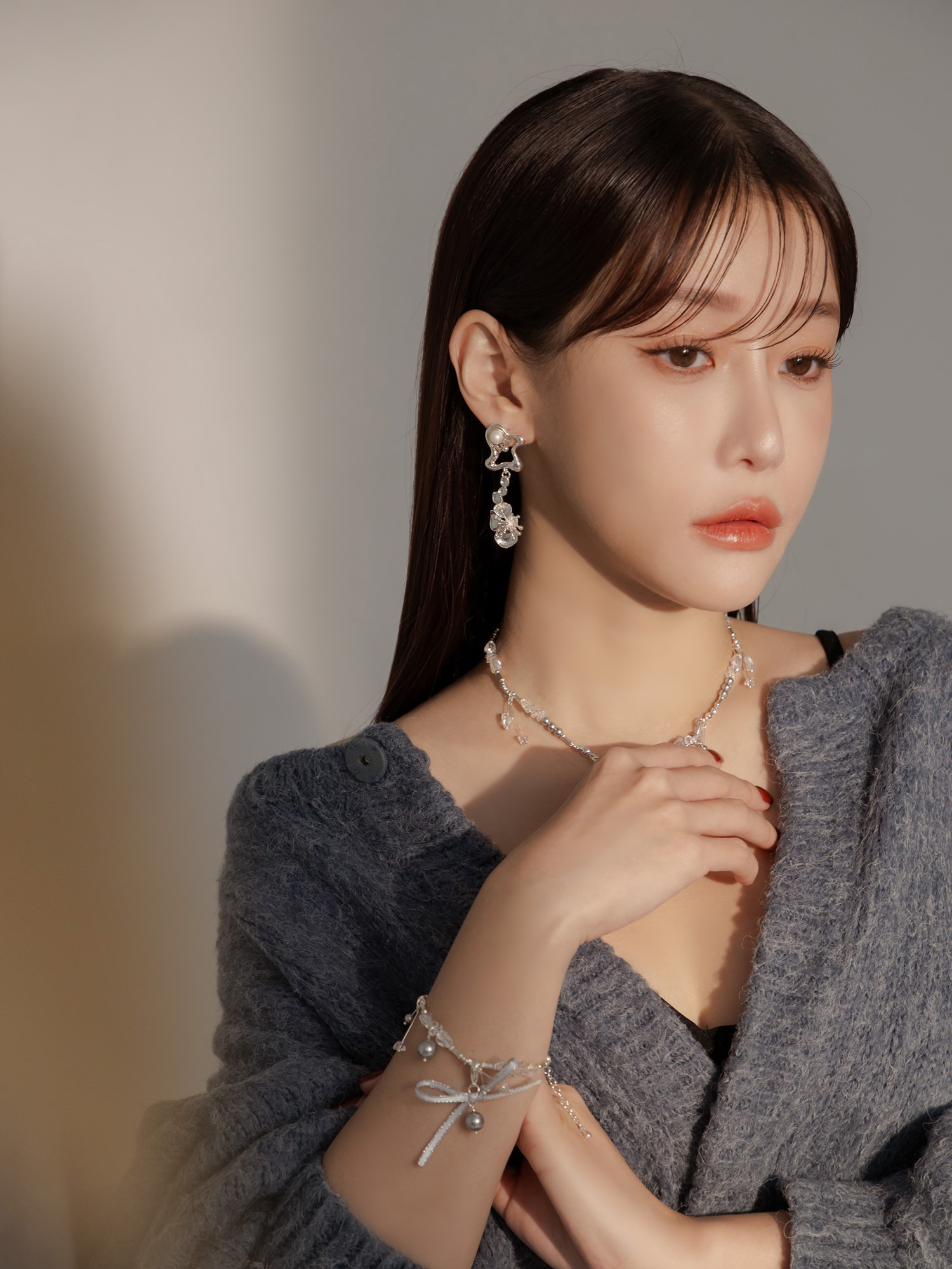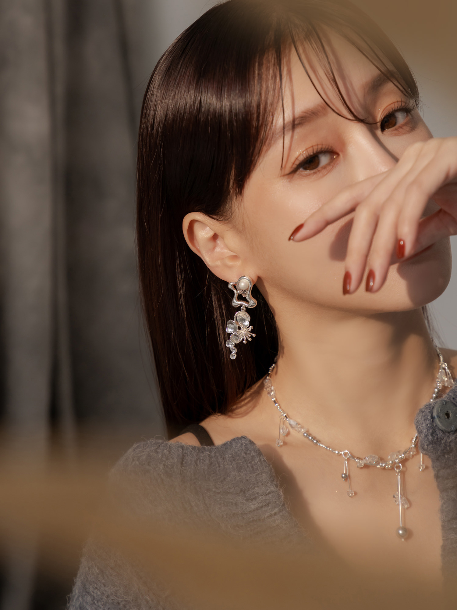 ▸ 素材:銅鍍銀、水晶珠、仿珠、三角水晶等複合材質
