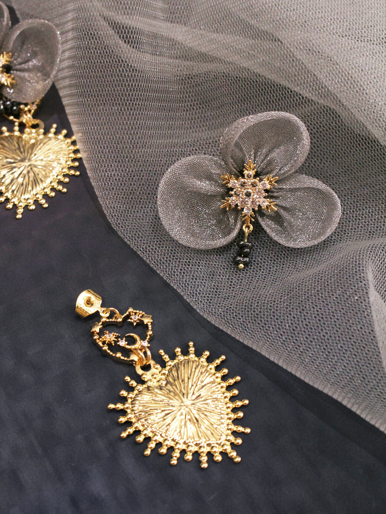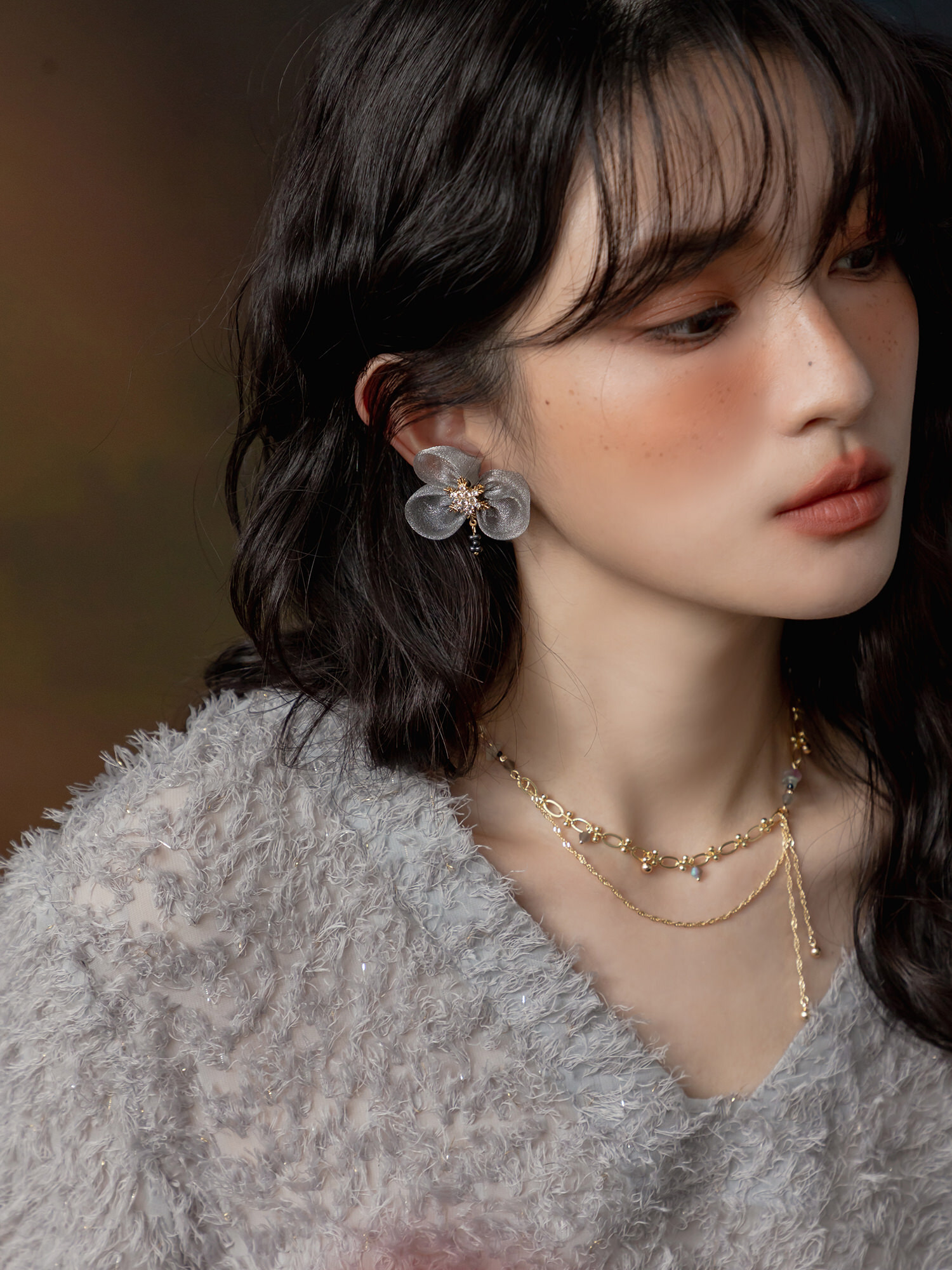 ▸ 素材:銅鍍14KGP、聚酯纖維、鋯石、串珠等複合材質