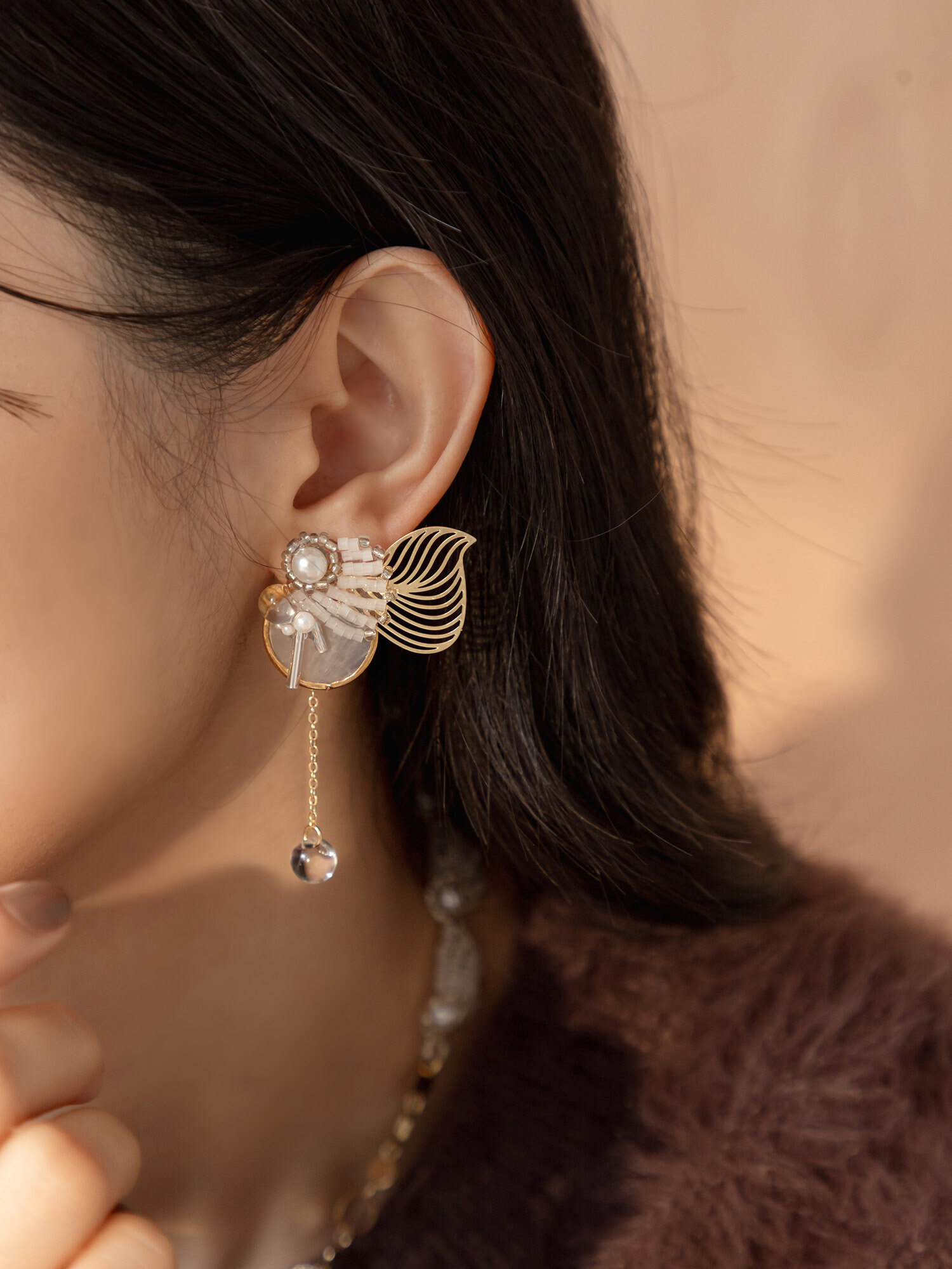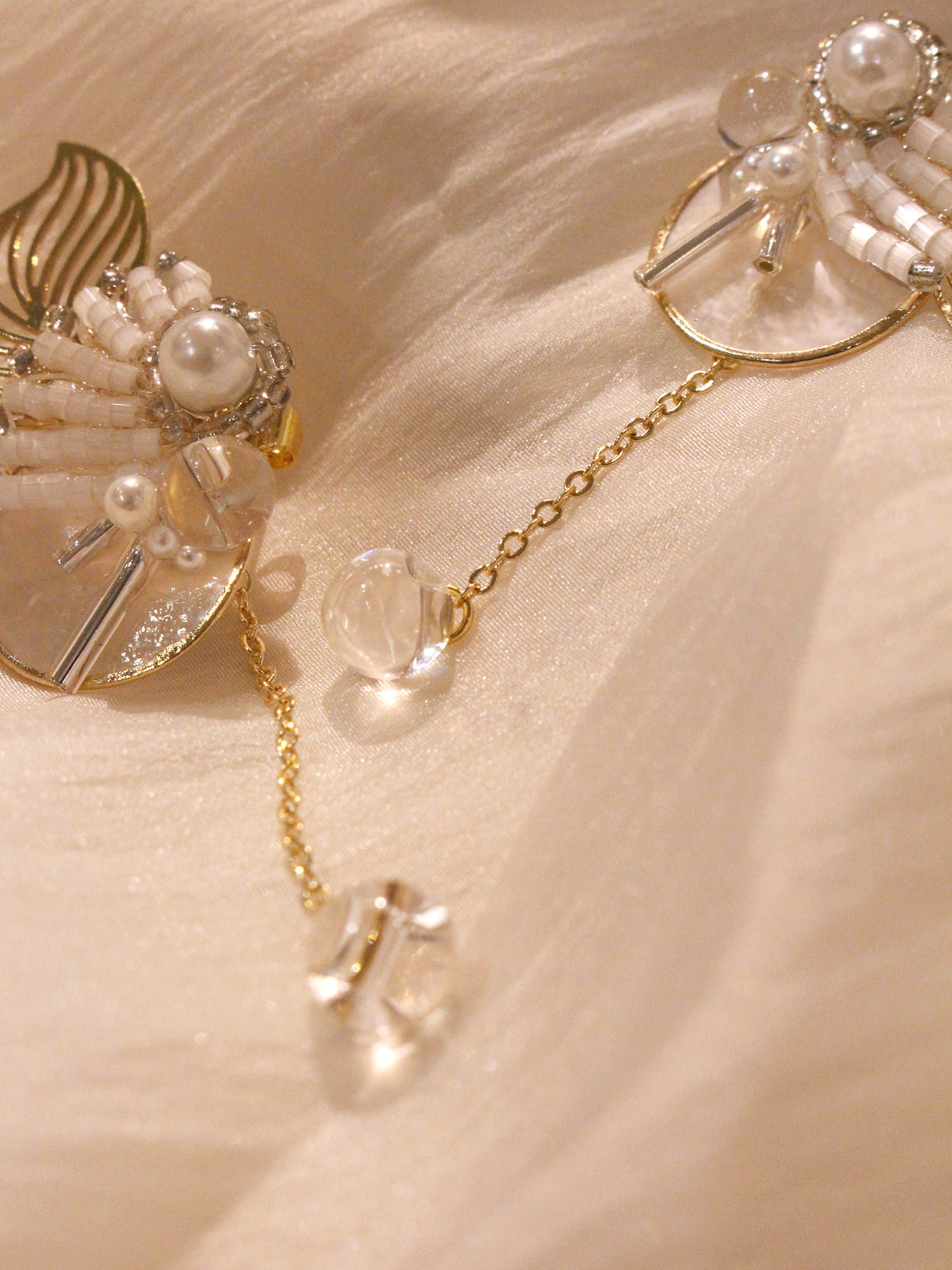 ▸ 素材:銅鍍14KGP、天然貝殼片、日本樹酯氣泡珠、仿珠、串珠等複合材質