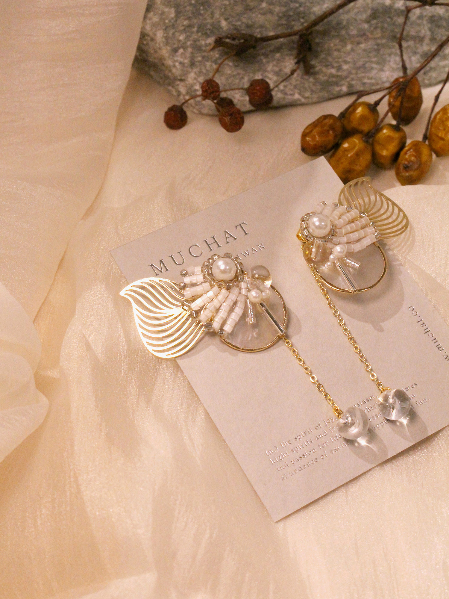 ▸ 水晶、貝殼、天然珍珠為天然材料,混色與花紋每款或有差異,鍍金屬不均、斑點、刮痕與凹洞為正常,非瑕疵。