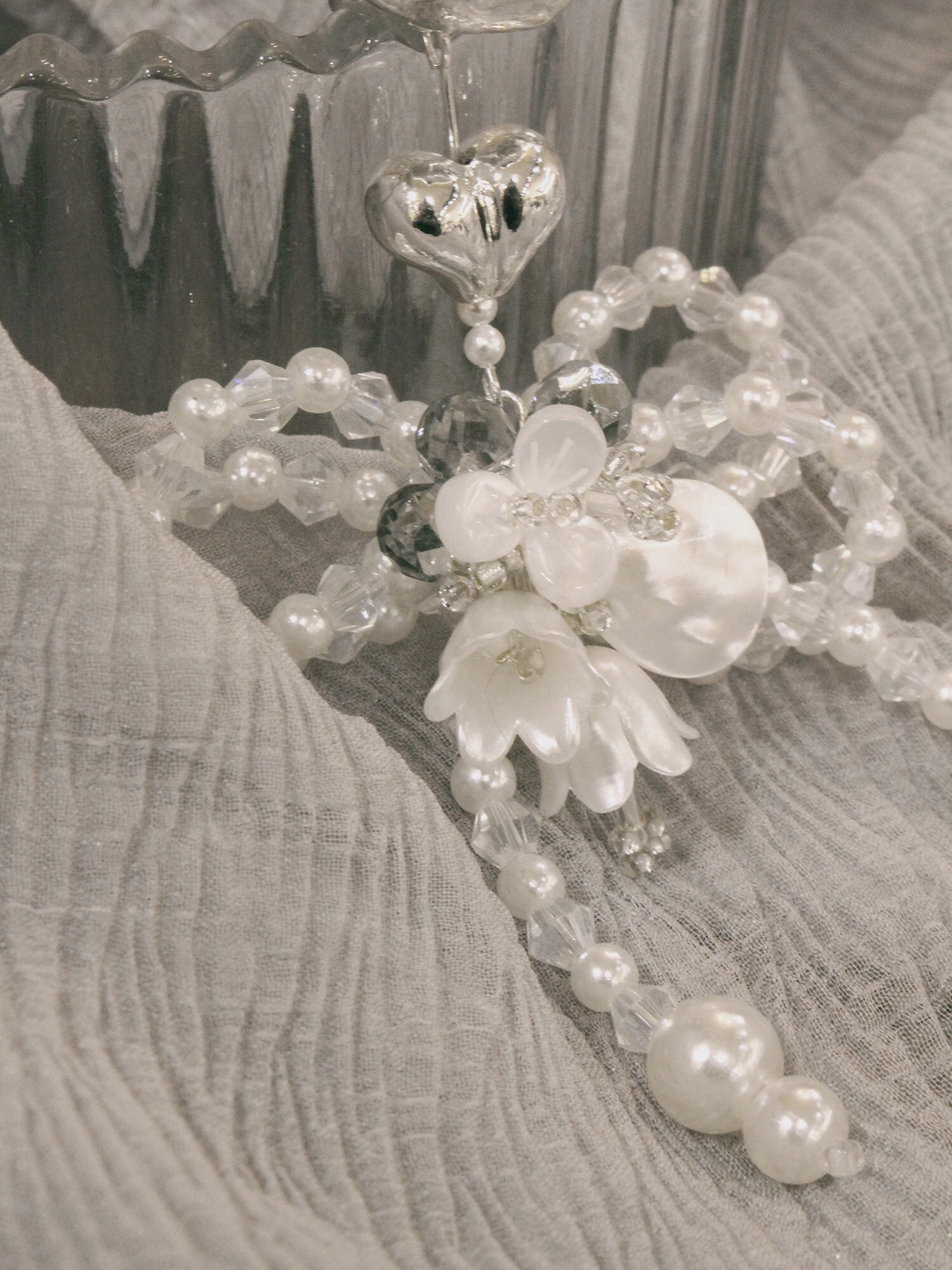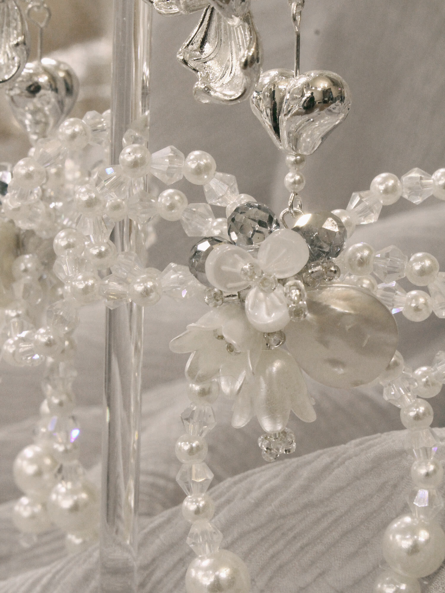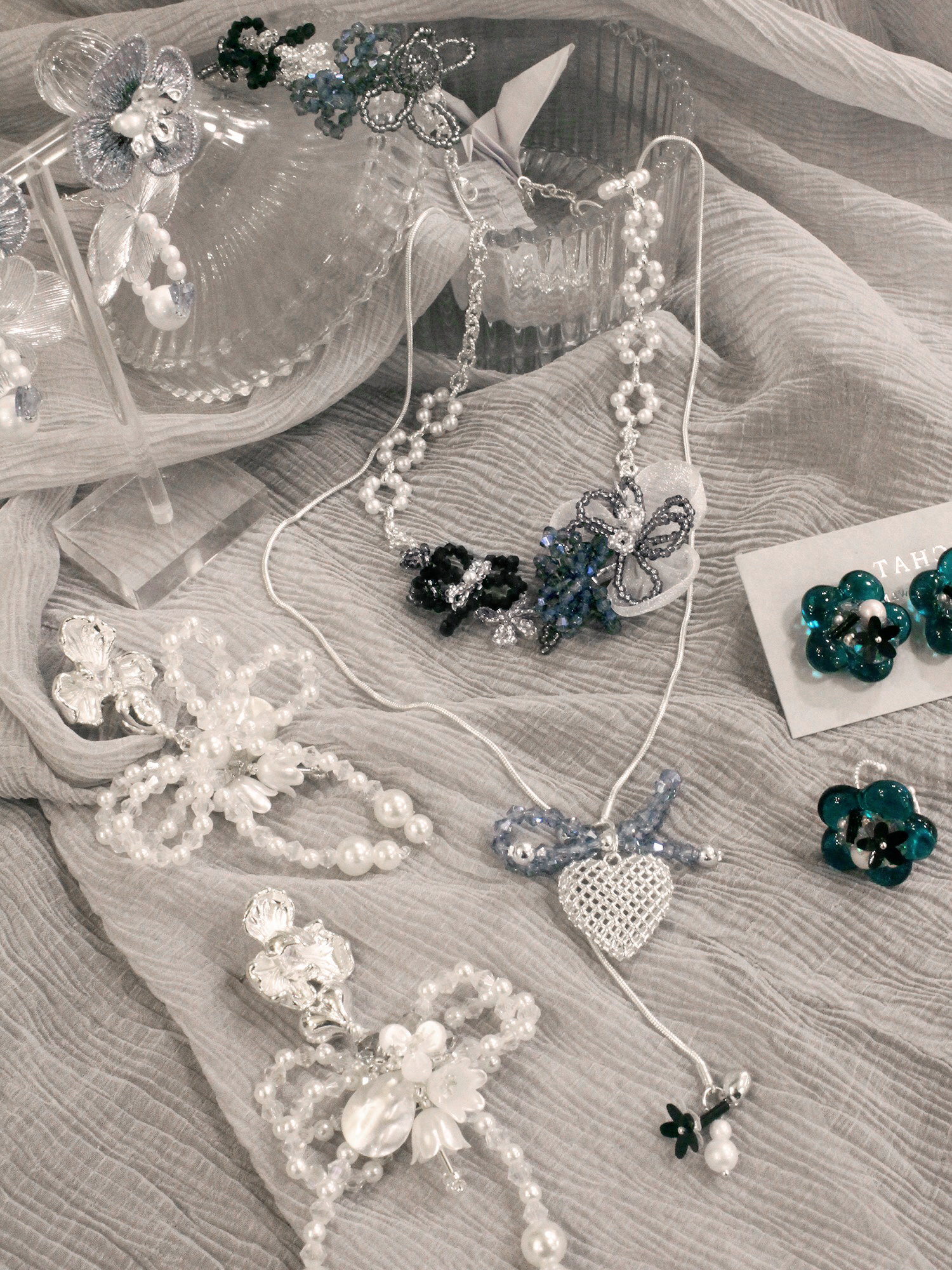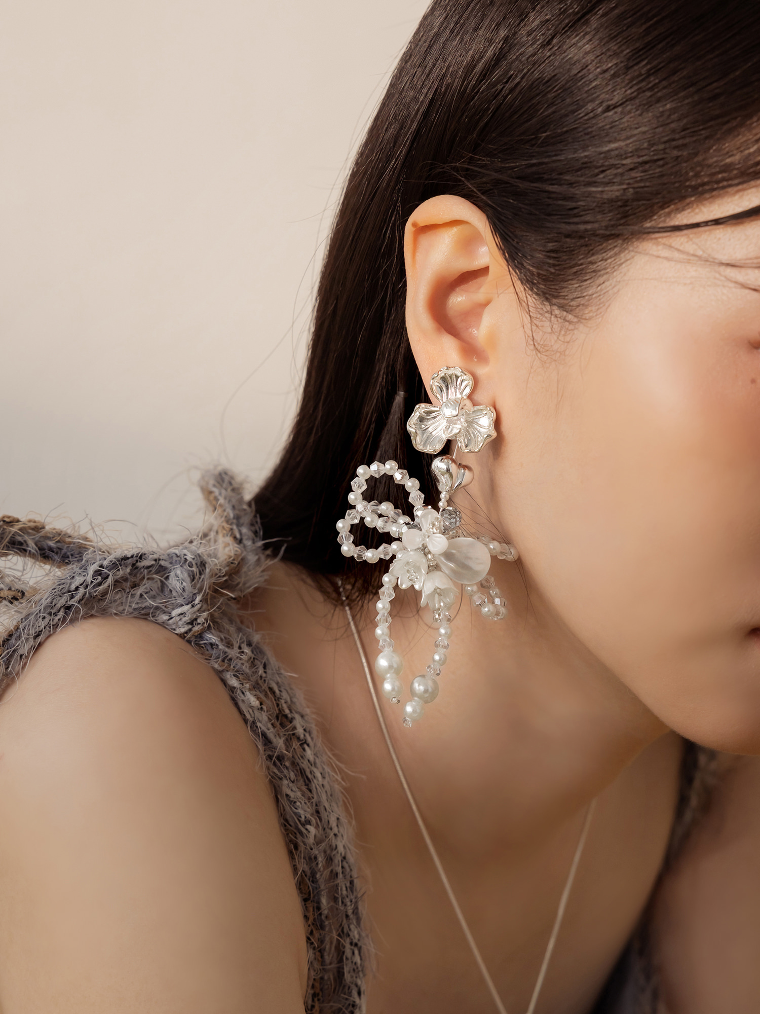 ▸ 素材:銅鍍銀、天然貝殼片、仿珠、水晶珠、串珠等複合材質