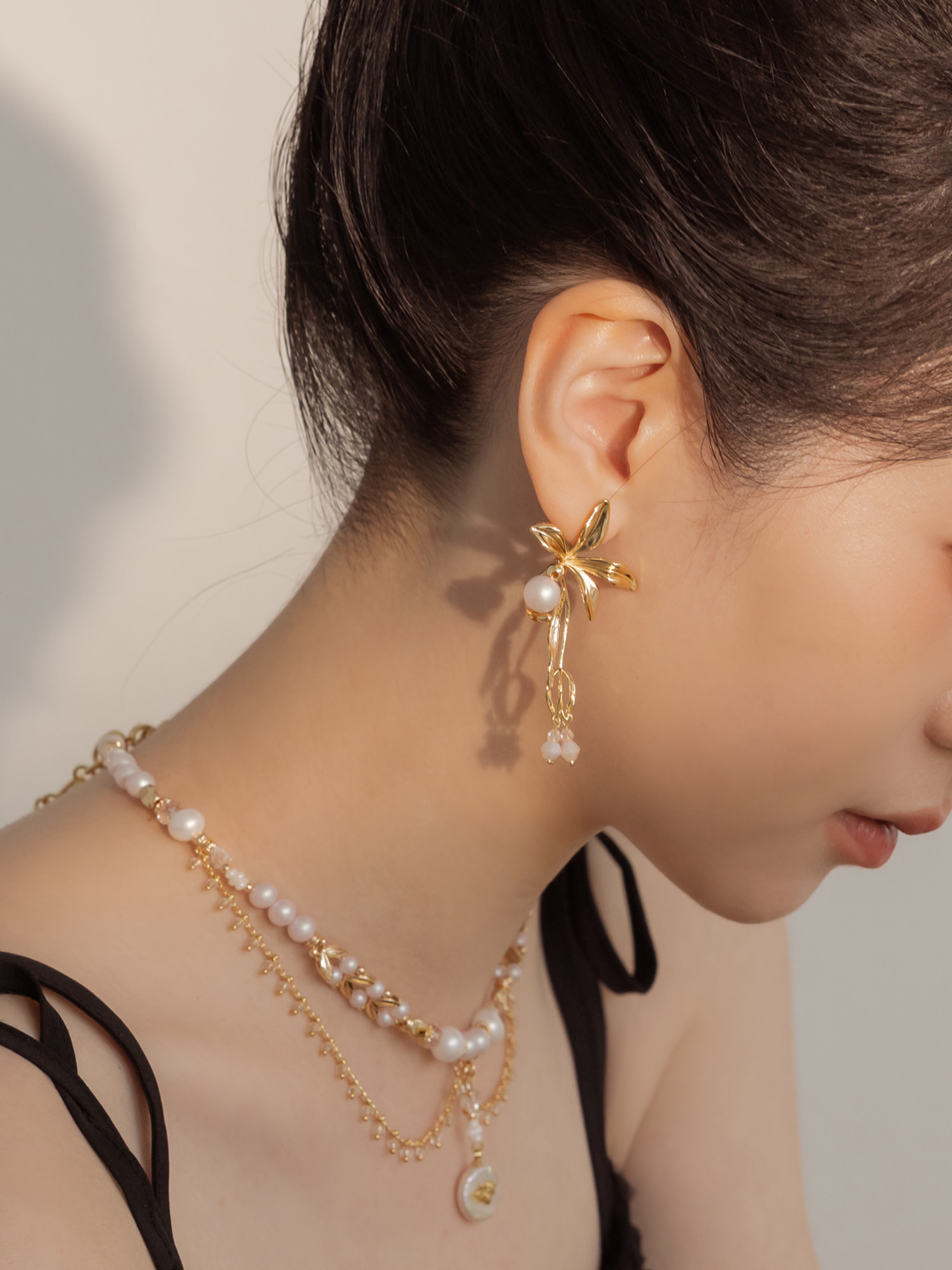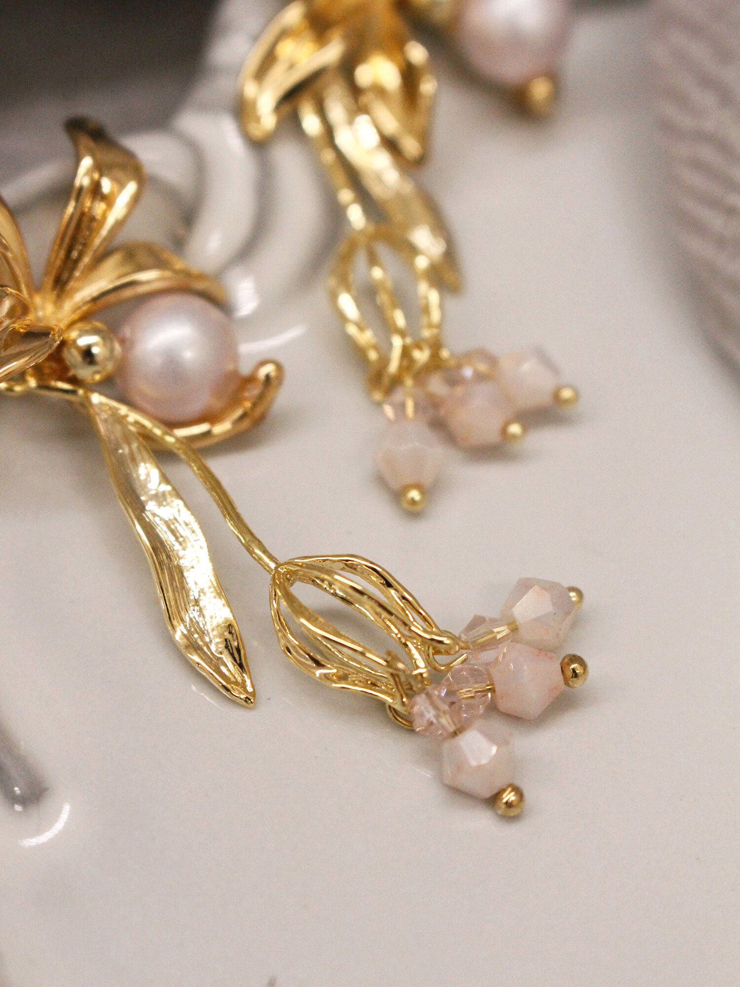 ▸ 素材:銅鍍14KGP、仿珠、水晶角珠、串珠等複合材質