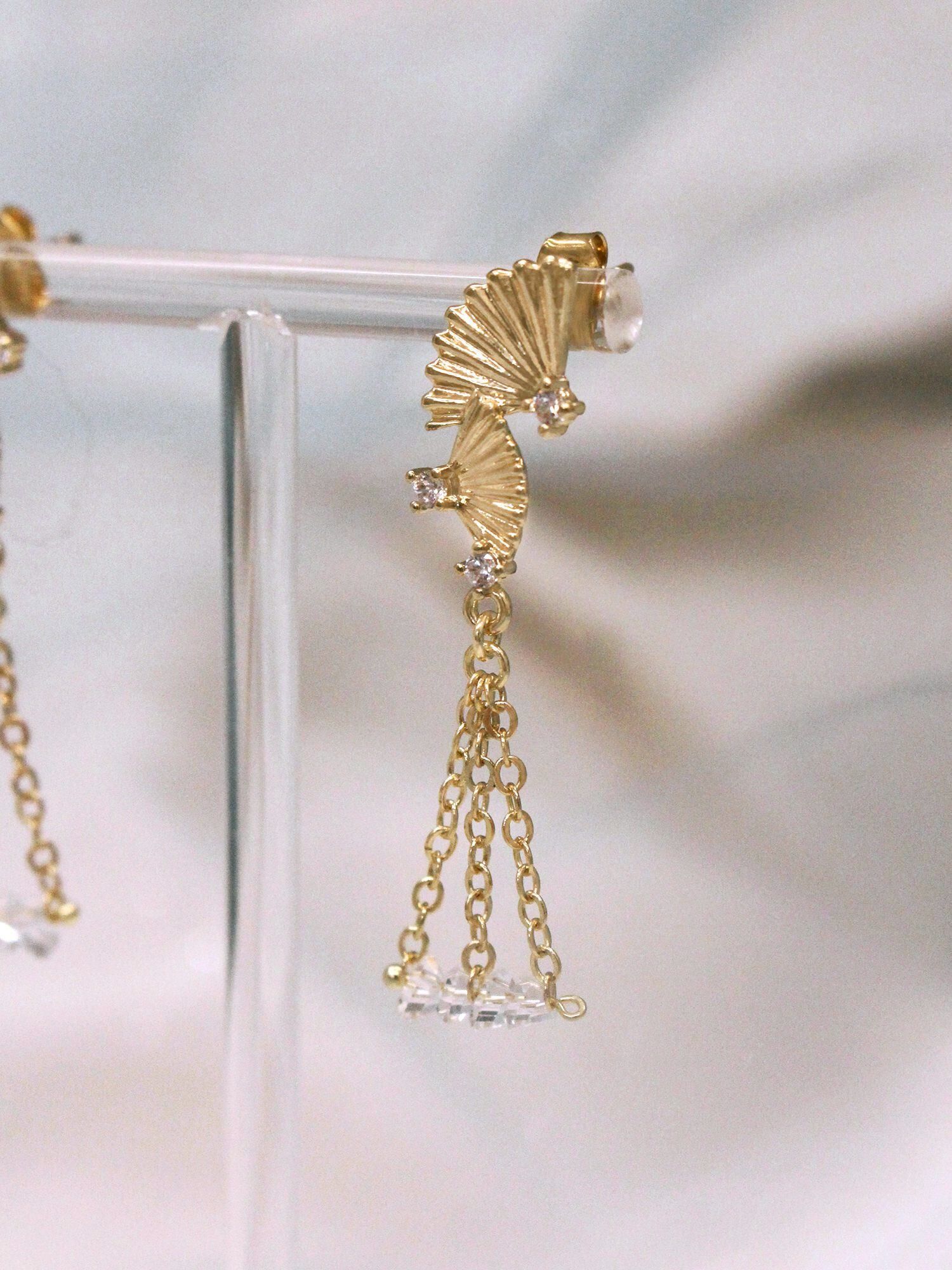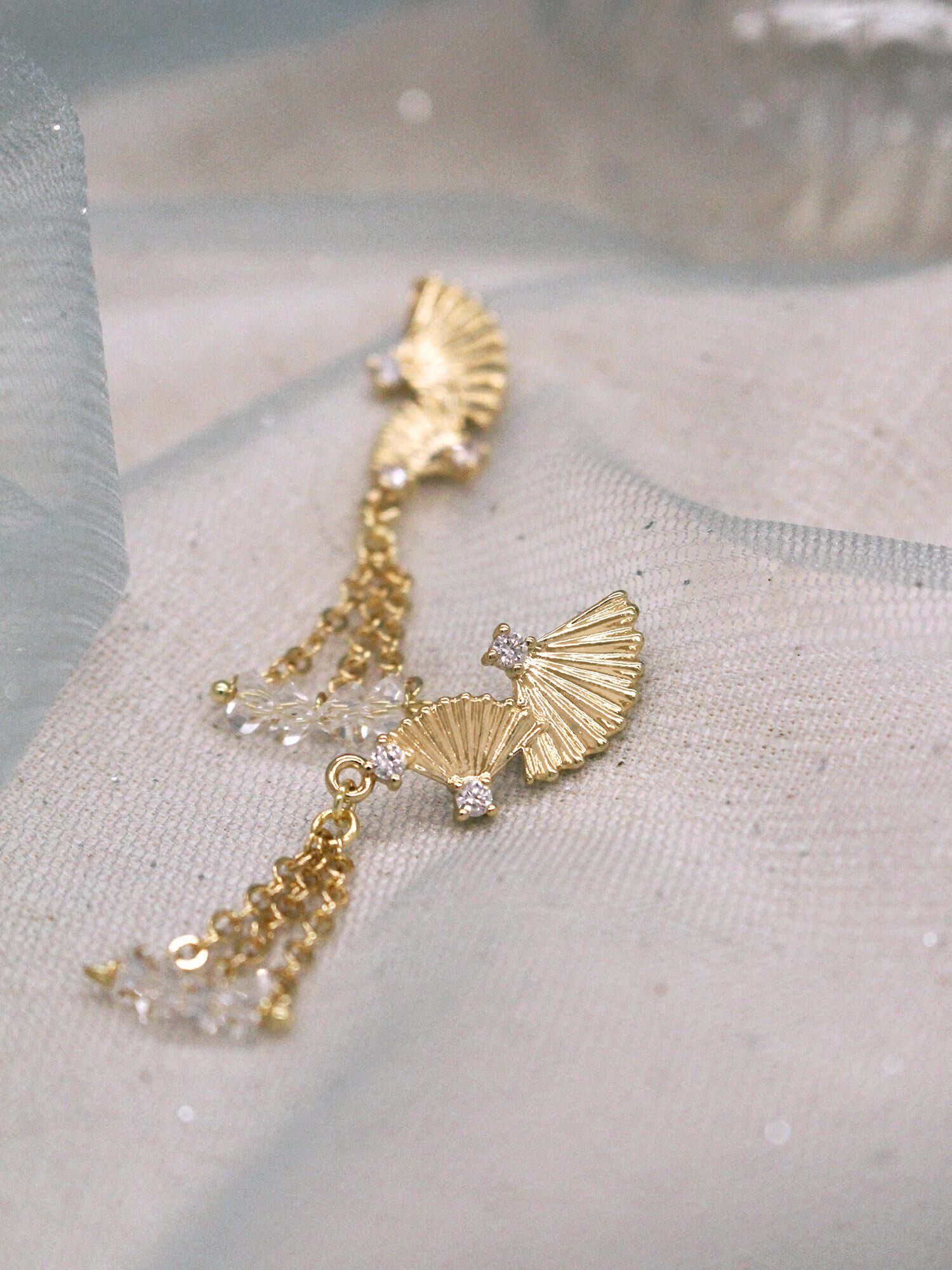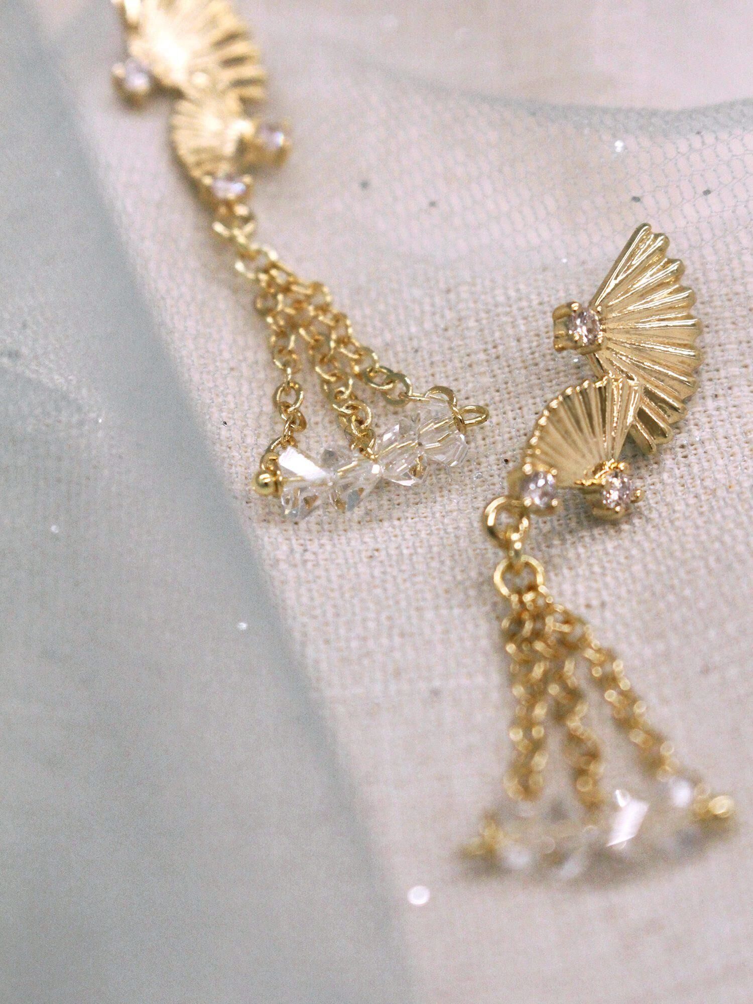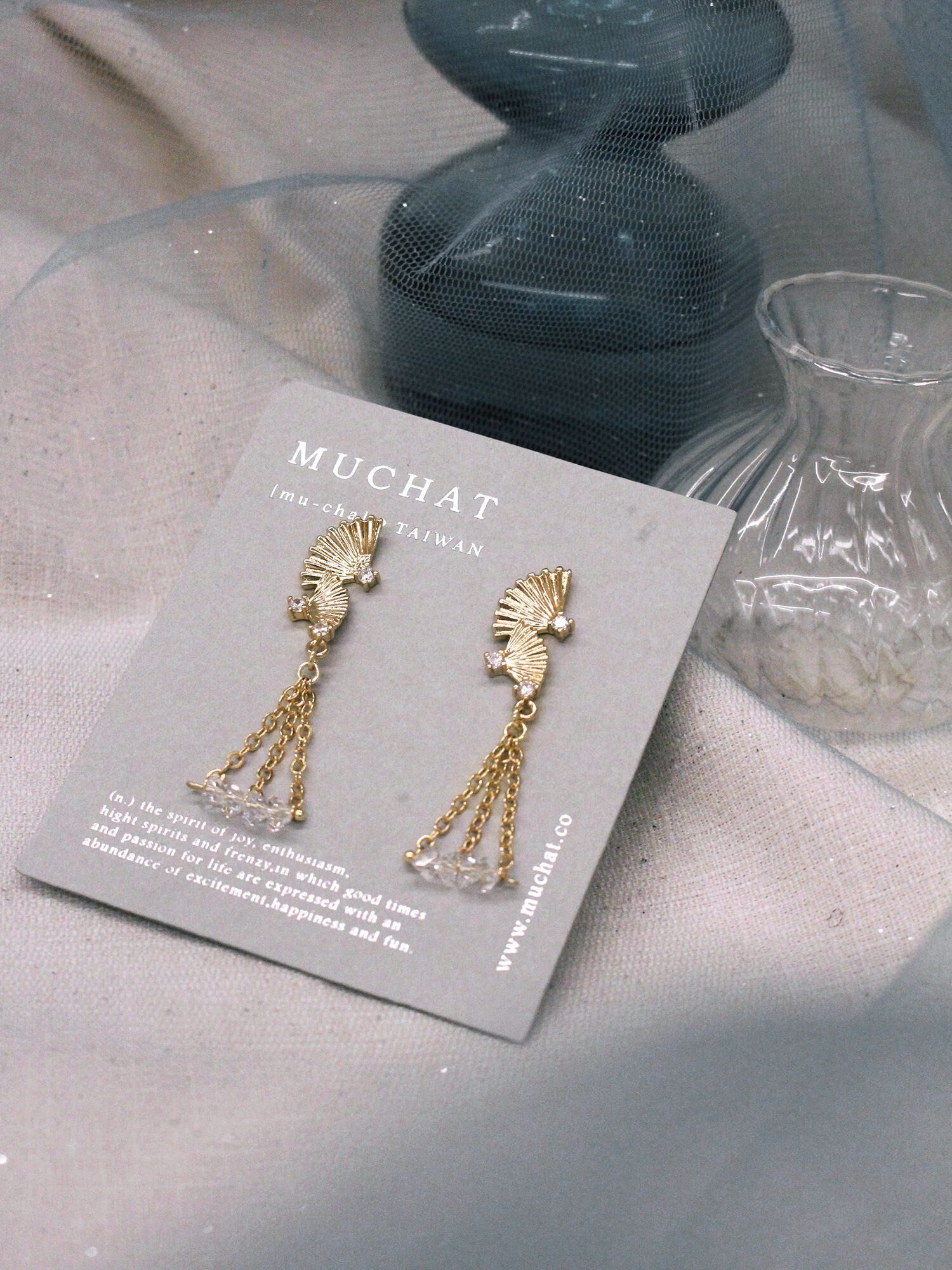 ▸ 素材:銅鍍14KGP、鋯石、三角水晶珠等複合材質