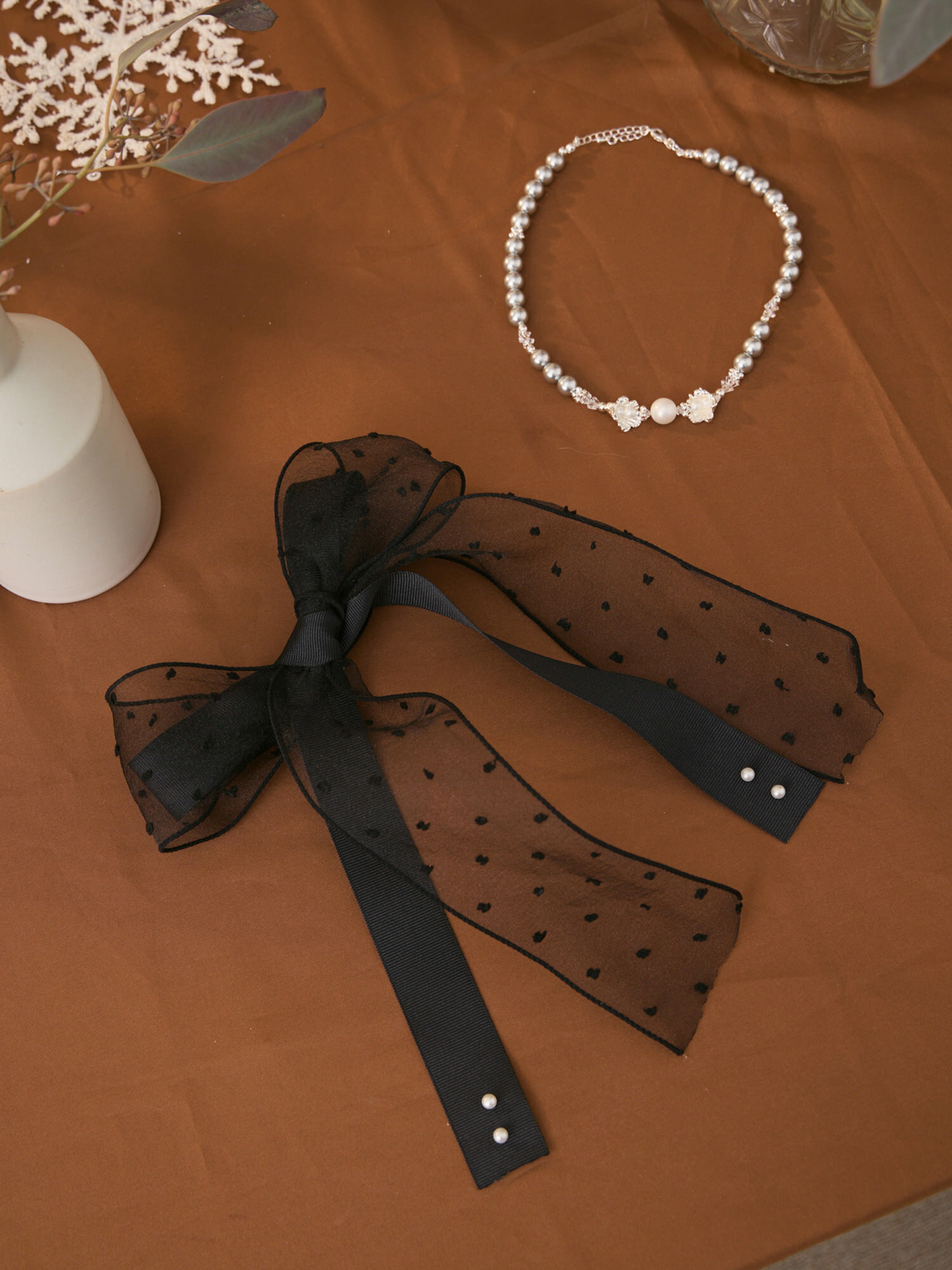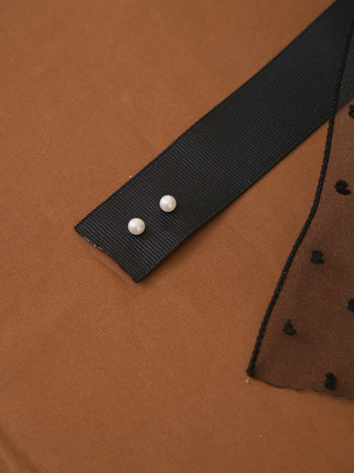 ▸ 素材:銅鍍14KGP、緞帶、聚酯纖維、仿珠等複合材質
