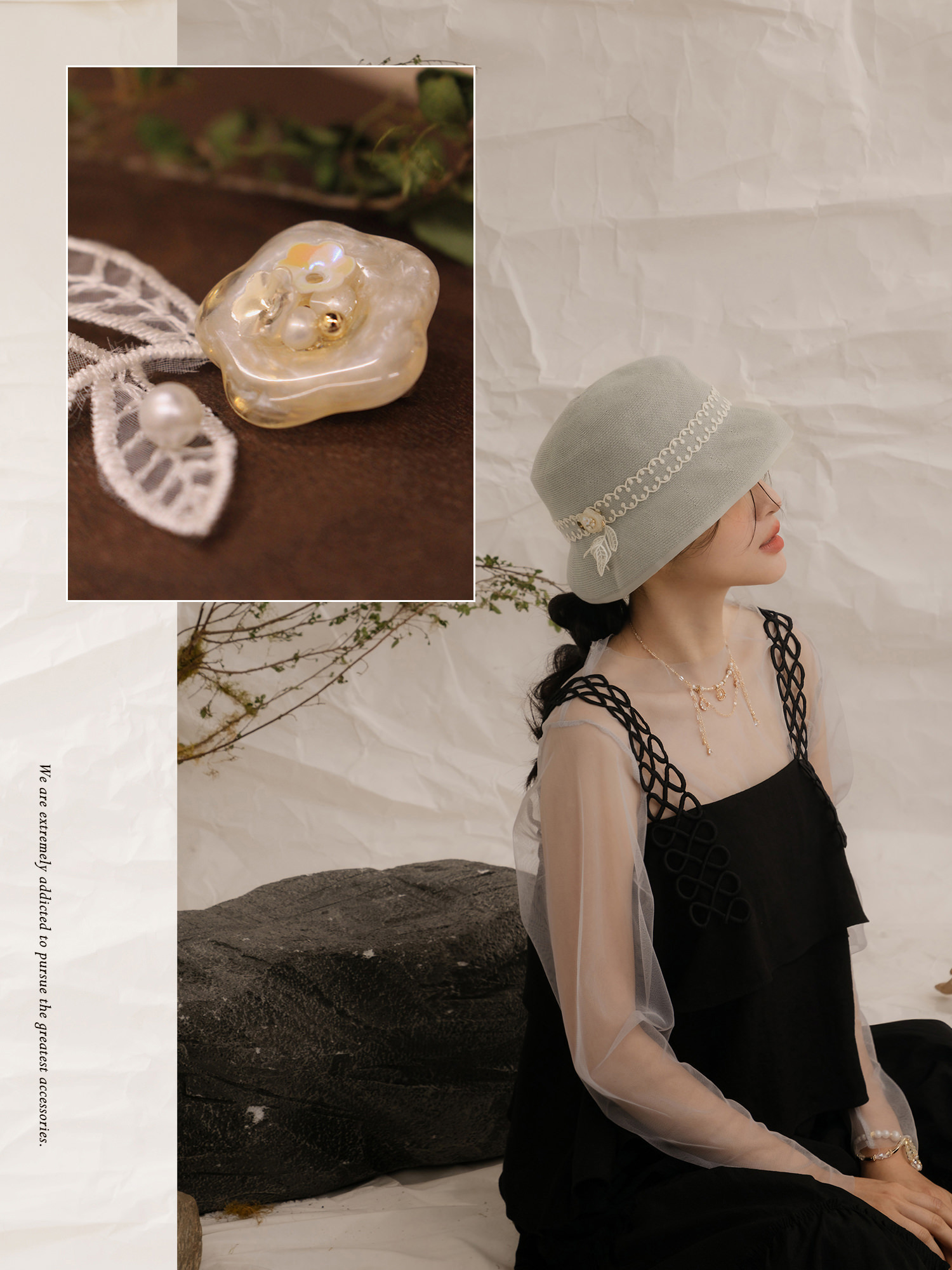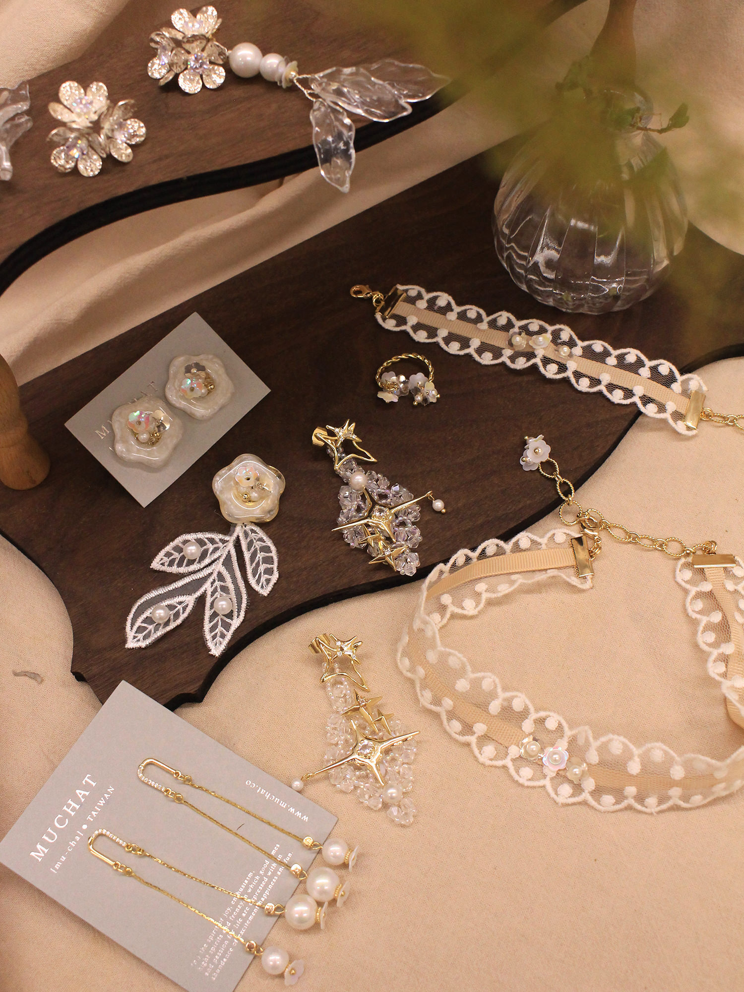 ▸ 素材:銅鍍14KGP、亮片、仿珠、聚酯纖維、樹酯等複合材質