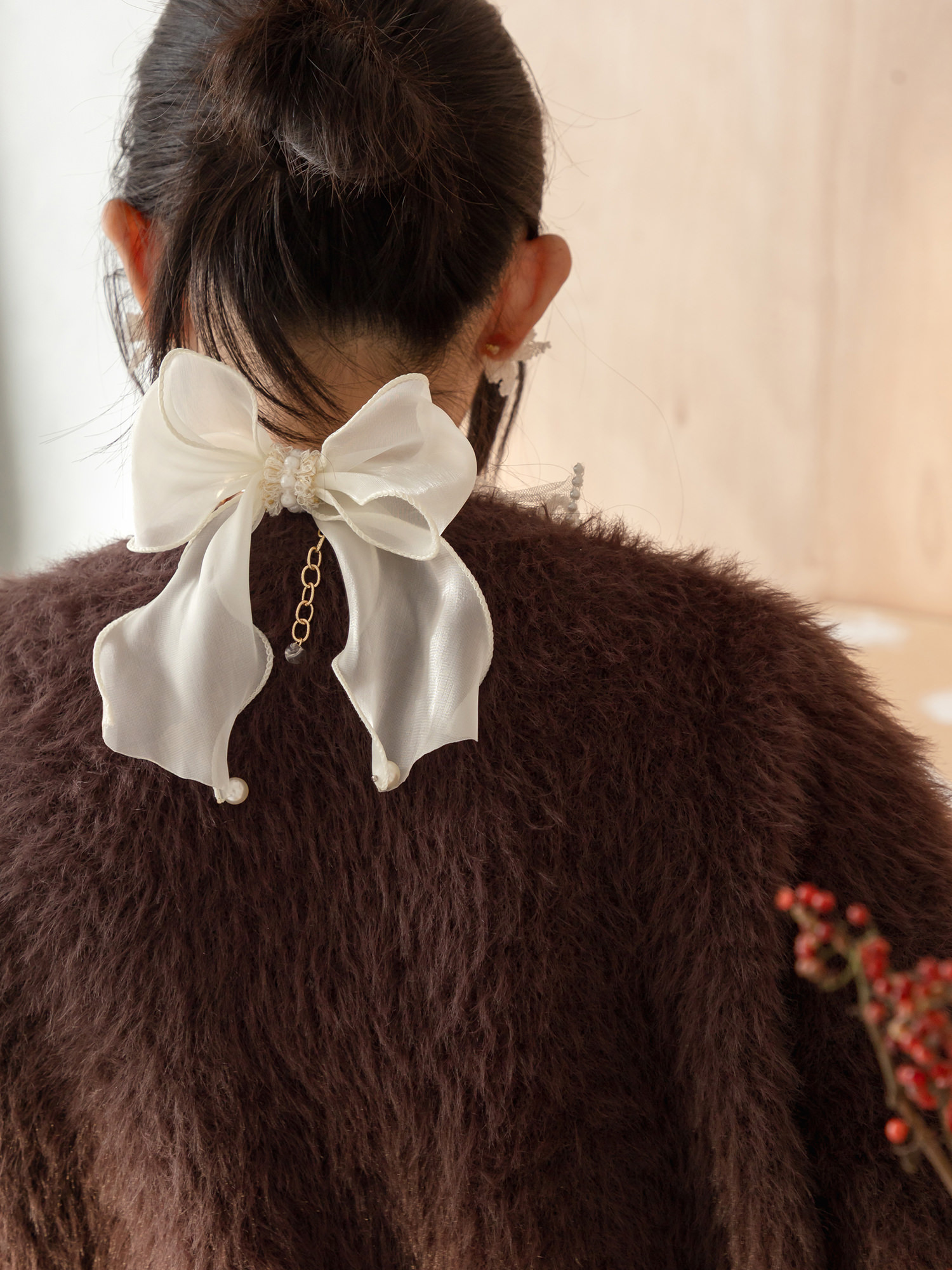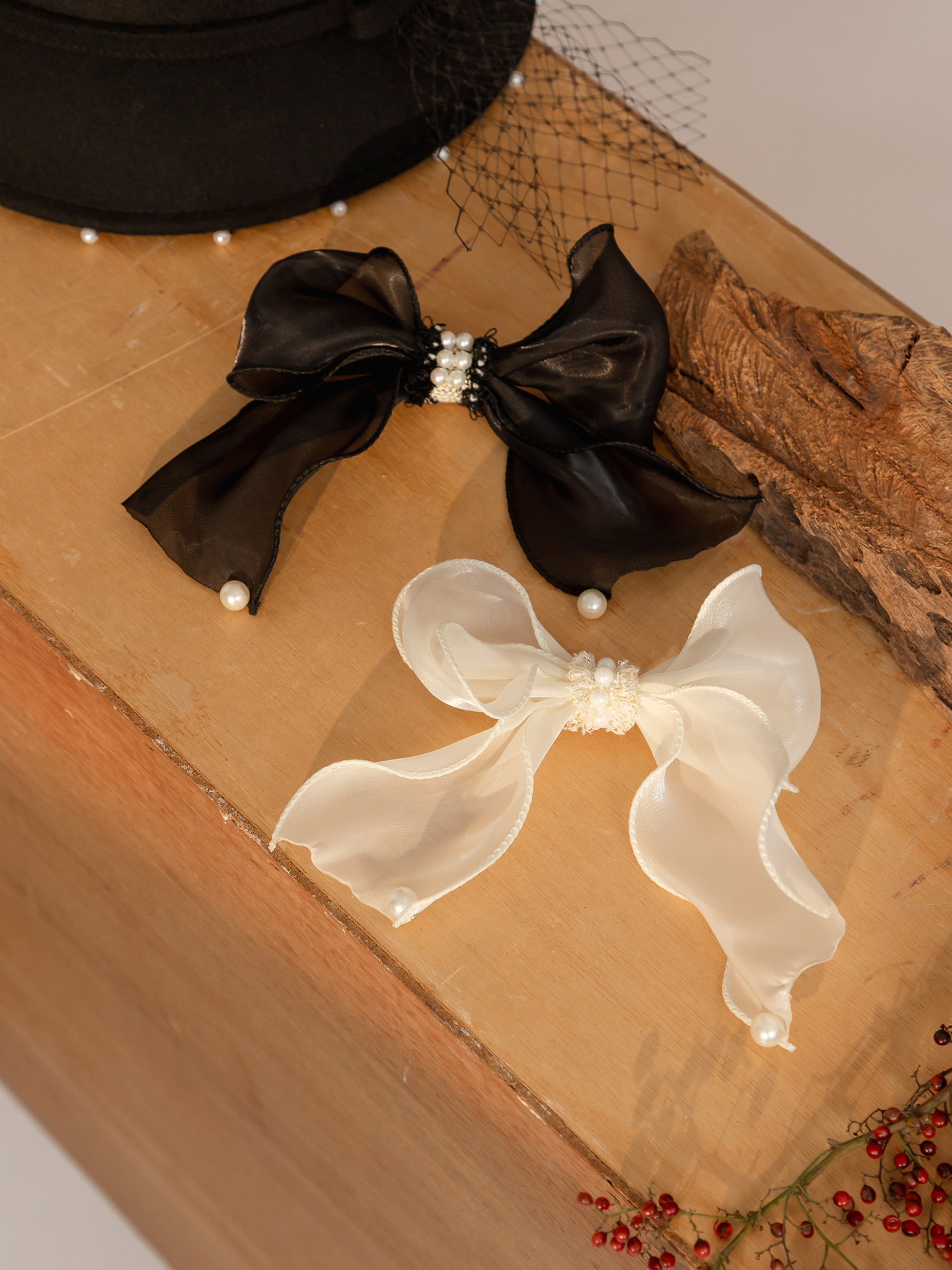 晴空日。MUCHAT手作14KGP透紗珍珠蝶結別針 (黑)