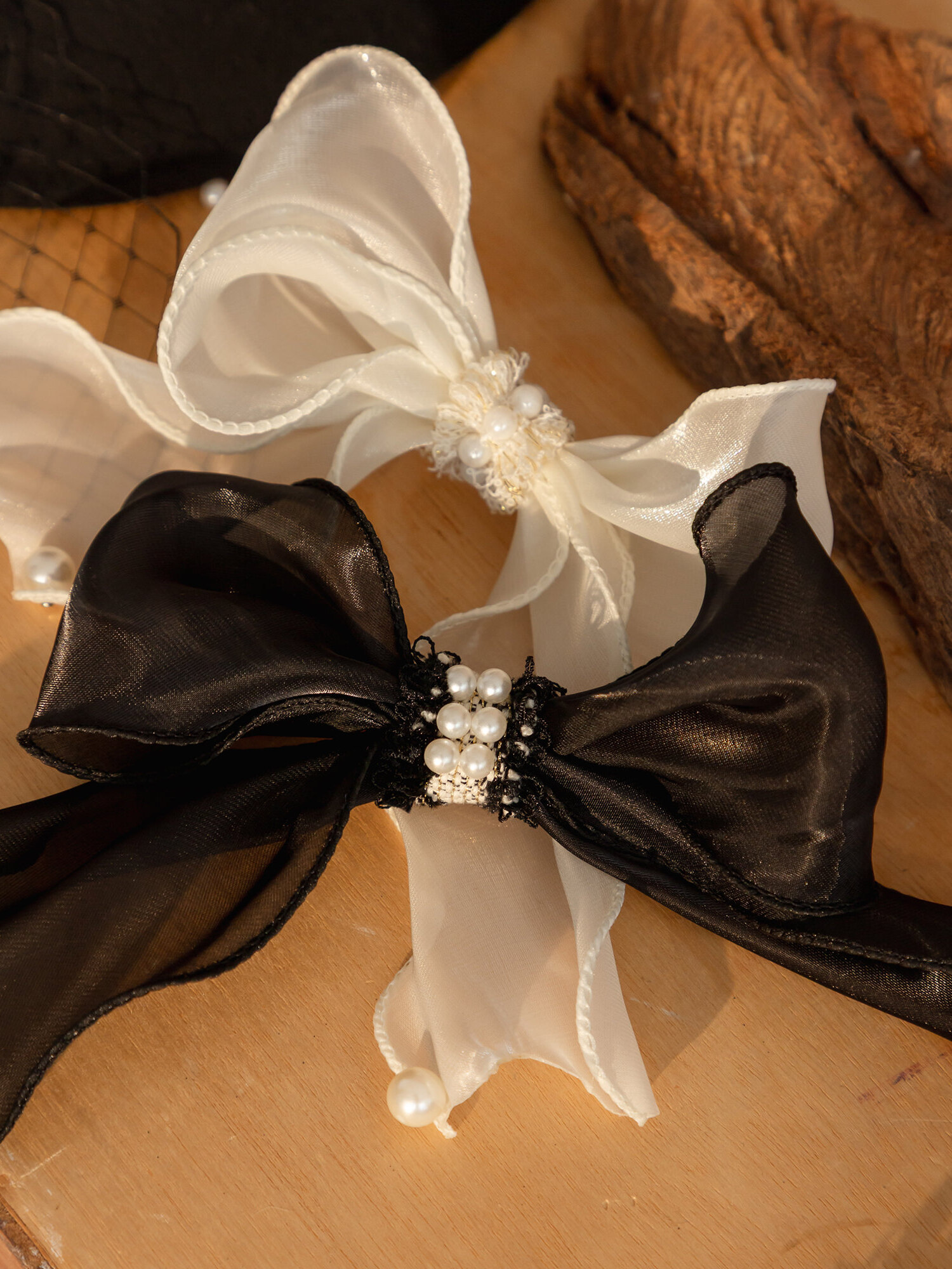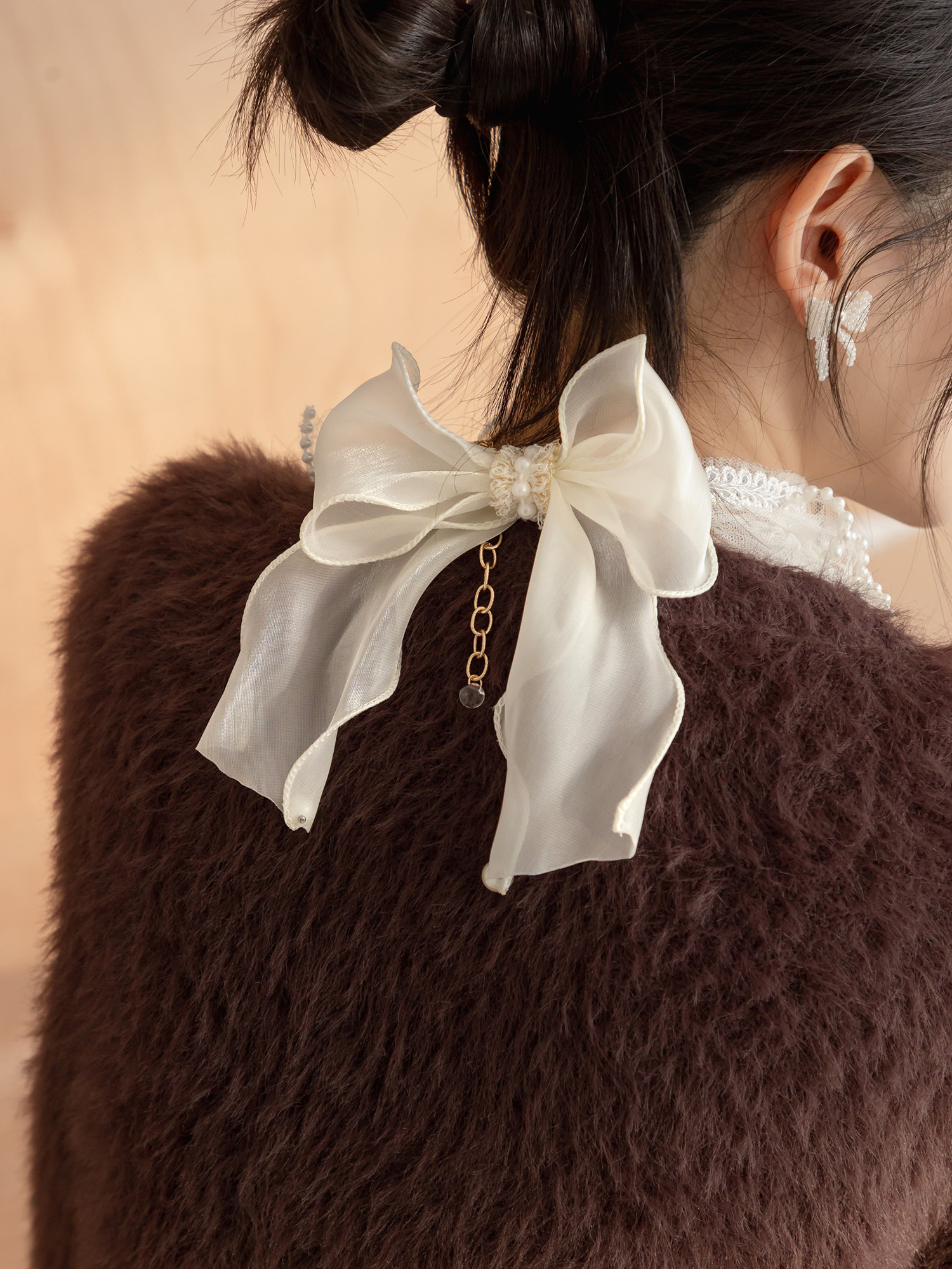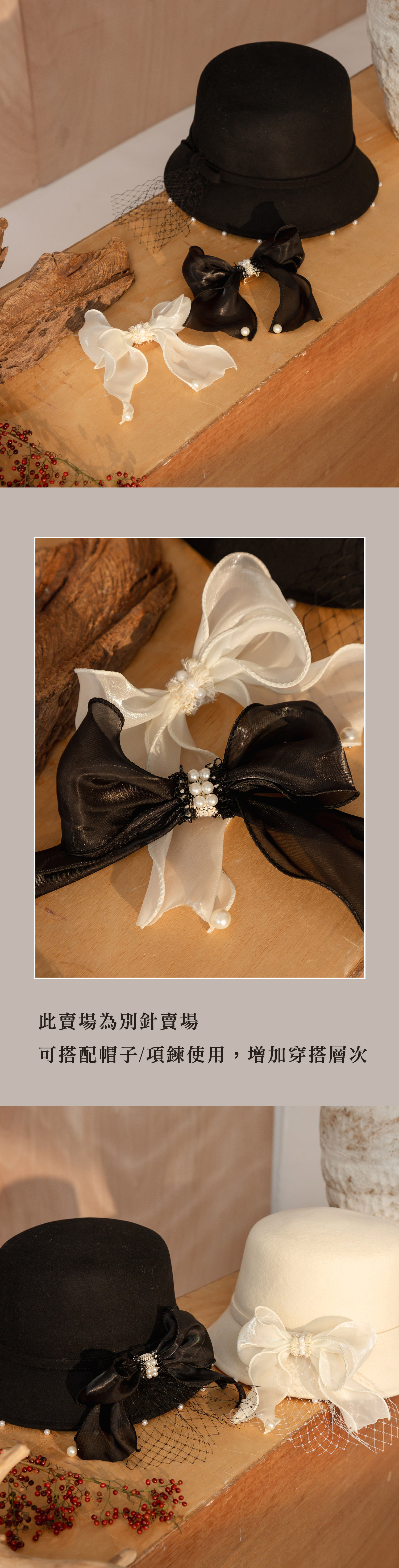 晴空日。MUCHAT手作14KGP透紗珍珠蝶結別針 (米白)