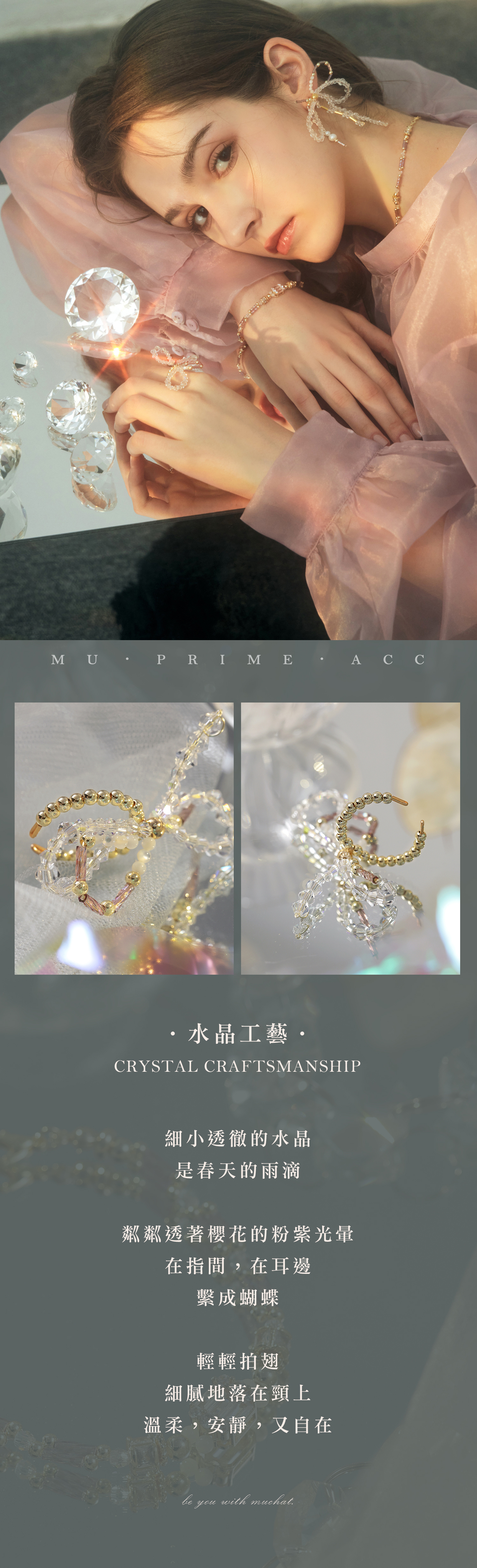 ▸ 素材:銅鍍14KGP、天然白蝶貝珠、水晶珠、串珠等複合材質