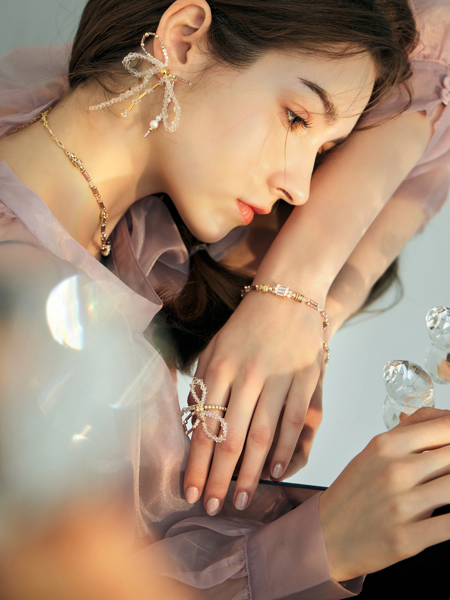 ▸ 水晶、貝殼、天然珍珠為天然材料,每個切面、光澤、形狀、紋理、顏色皆有所不同,刮痕與凹洞跟不均色為正常,非瑕疵。