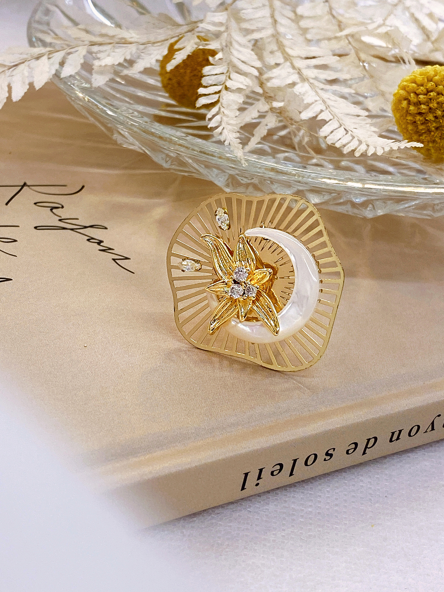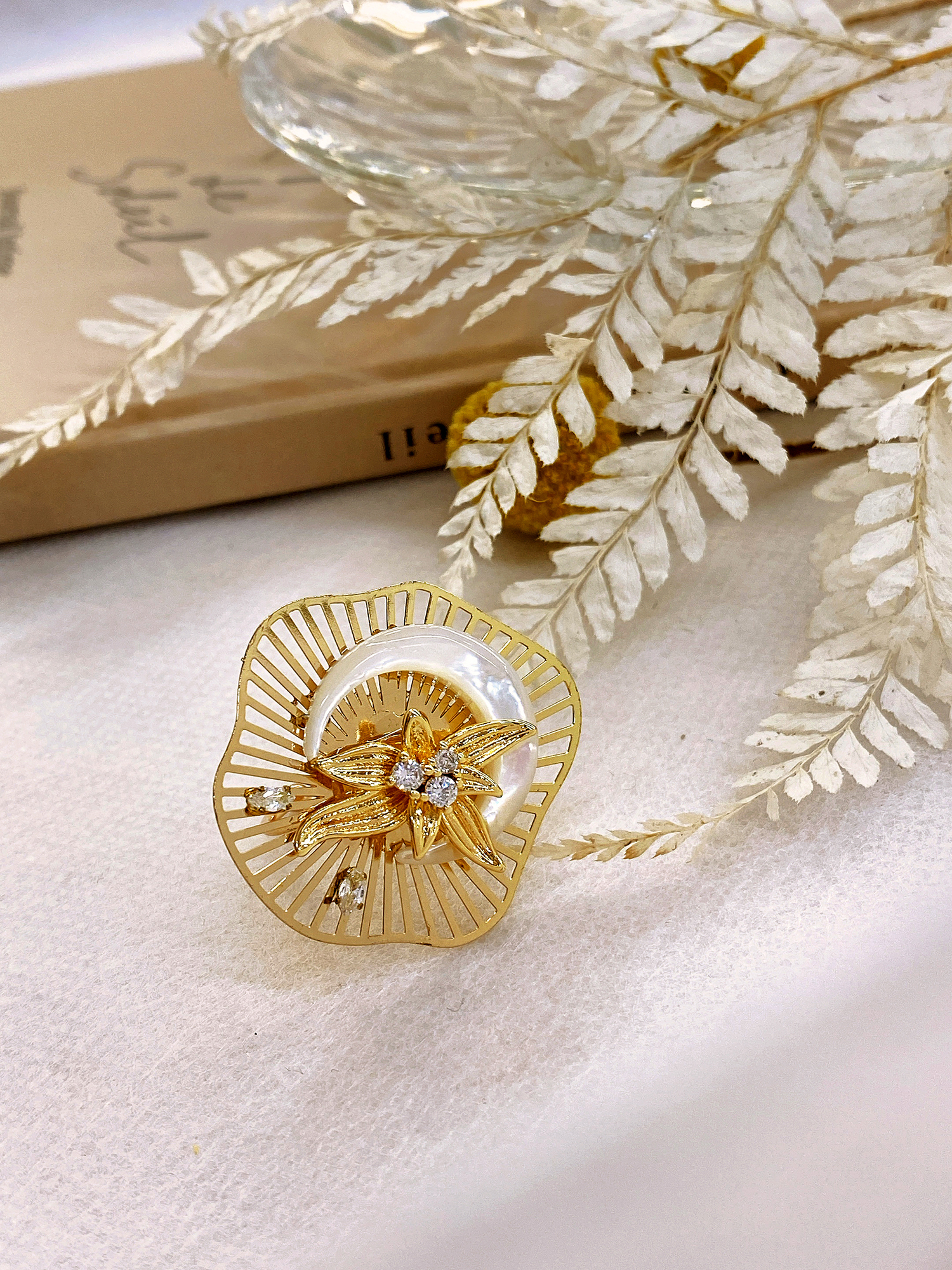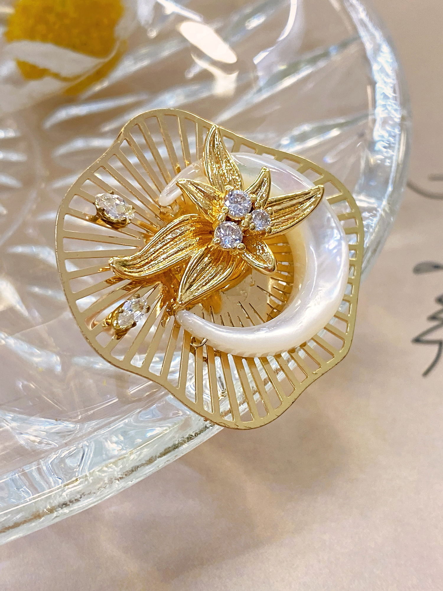 ▸ 素材:銅鍍14KGP、天然貝殼、水鑽、鋯石等複合材質