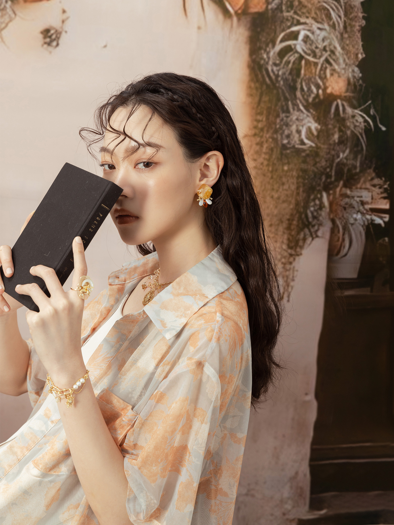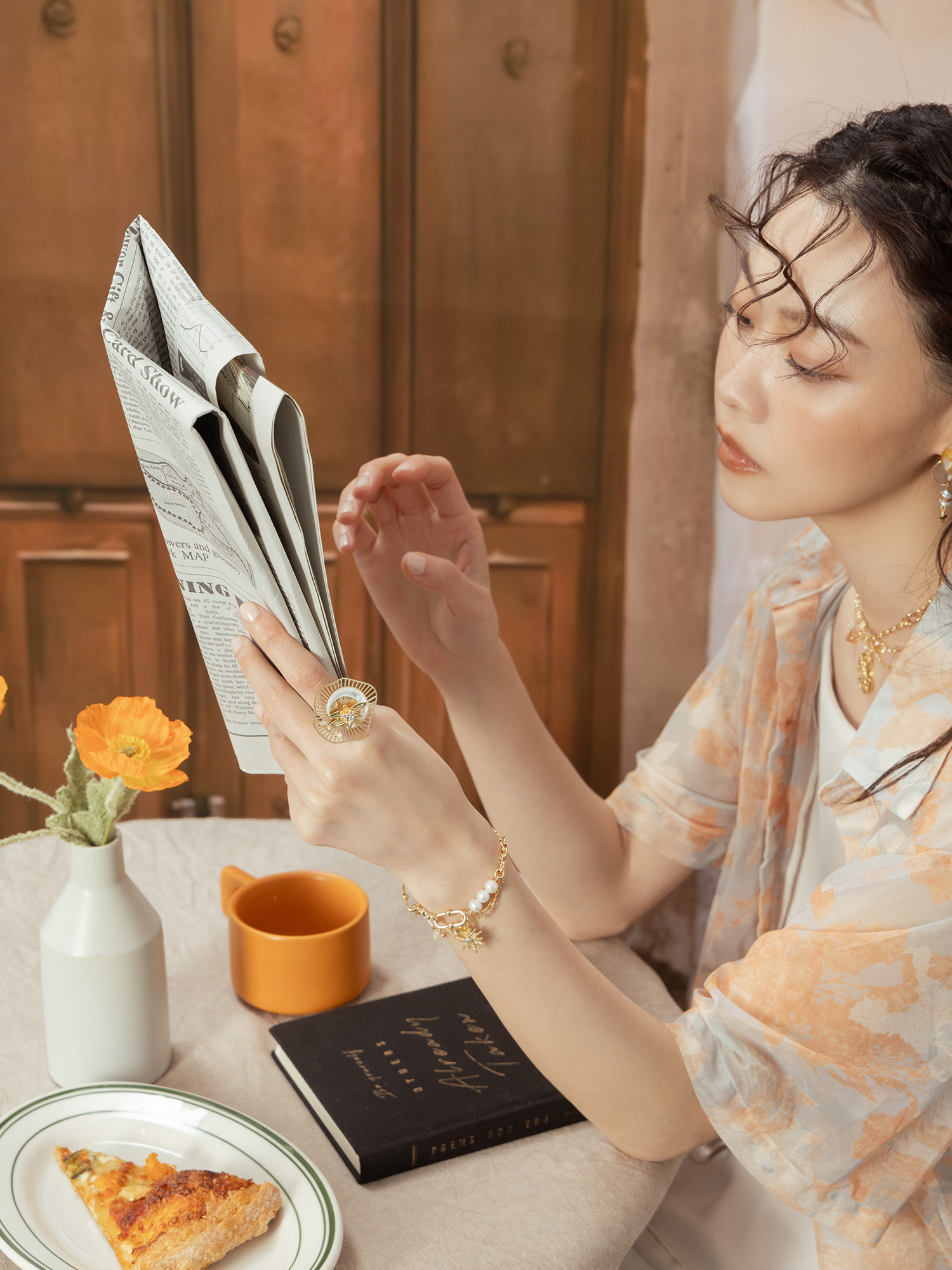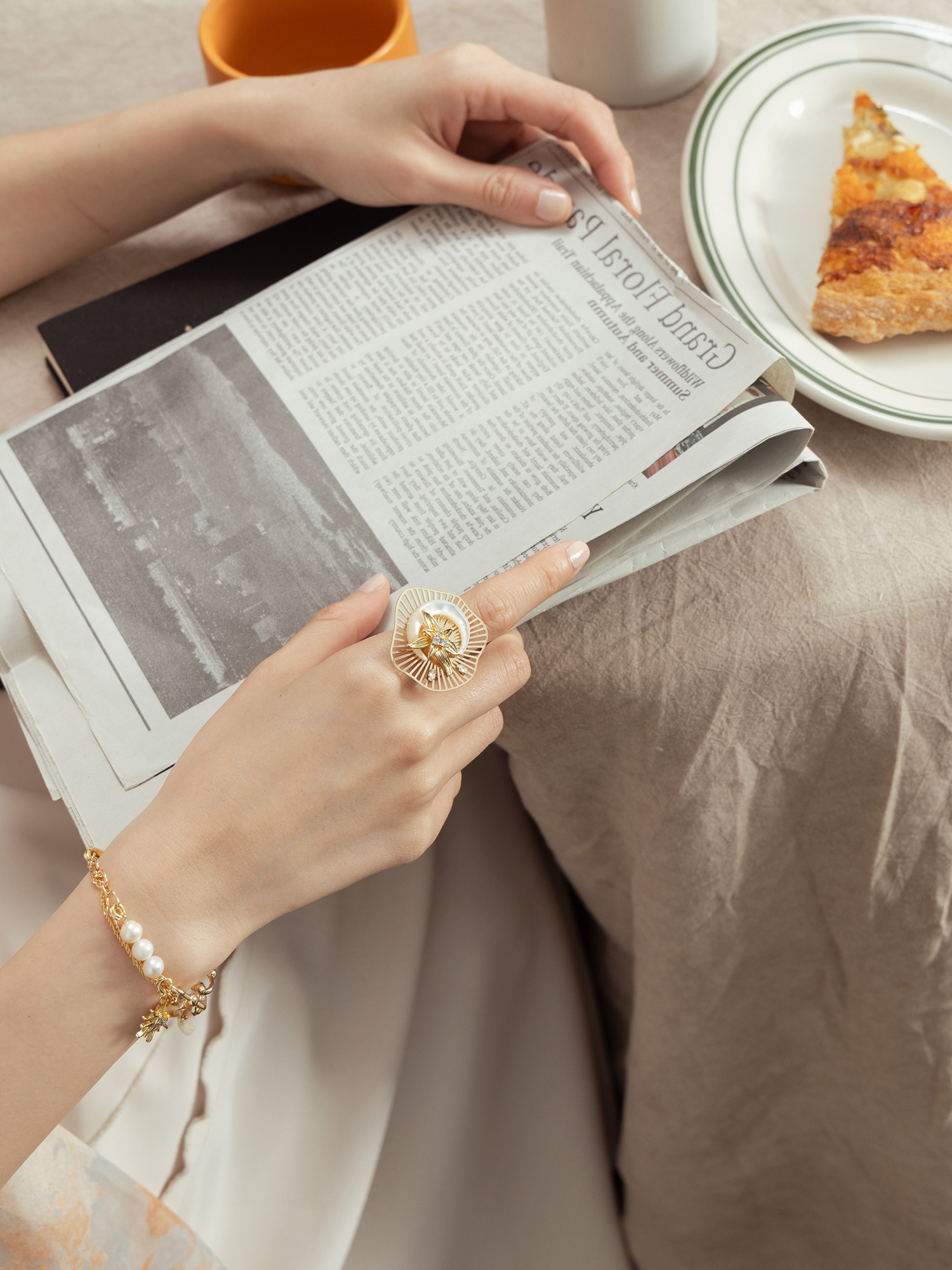 ▸ 素材:銅鍍14KGP、天然貝殼、水鑽、鋯石等複合材質