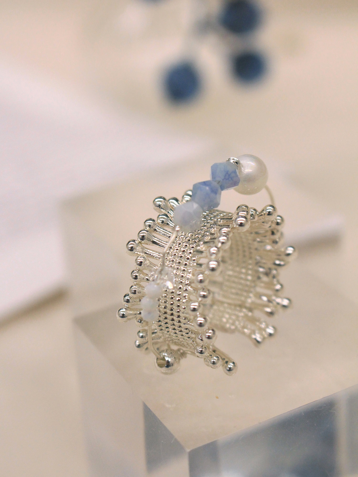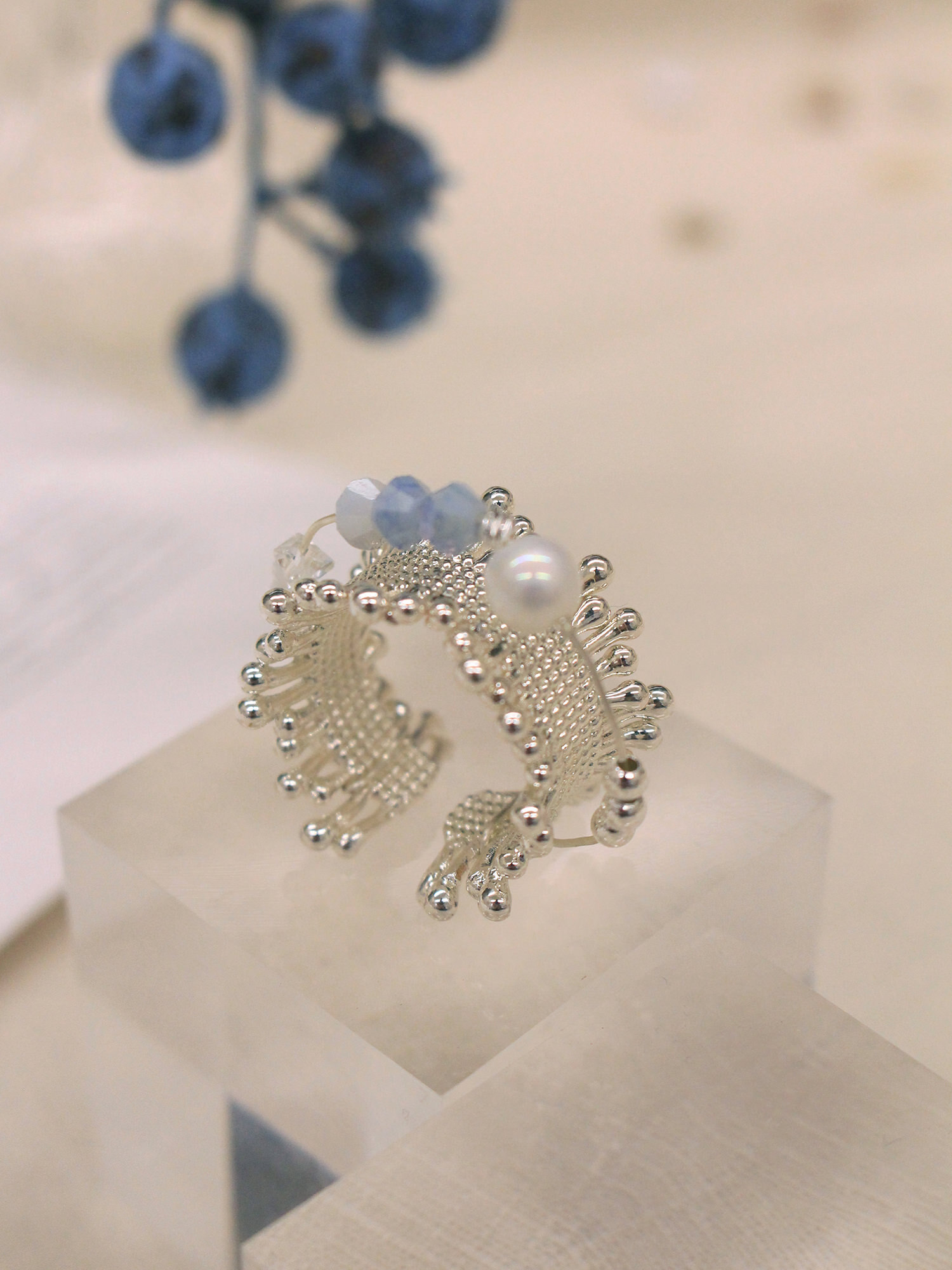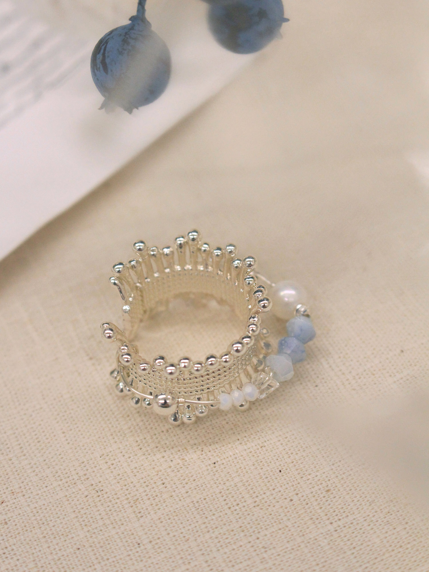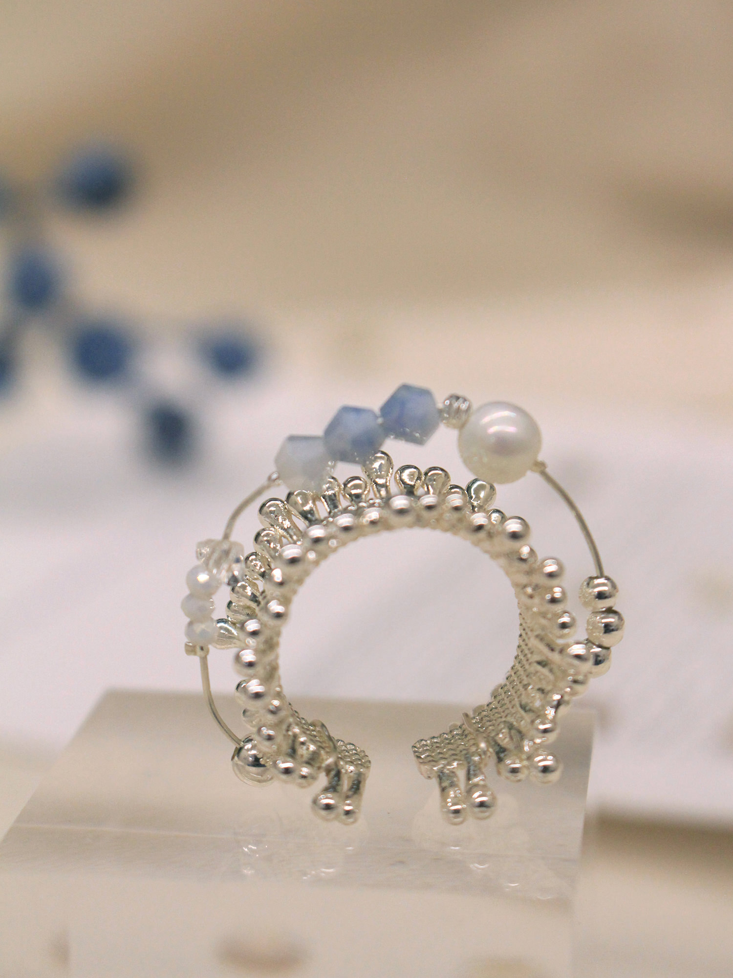▸ 素材:銅鍍銀、仿珠、三角水晶珠、串珠等複合材質
