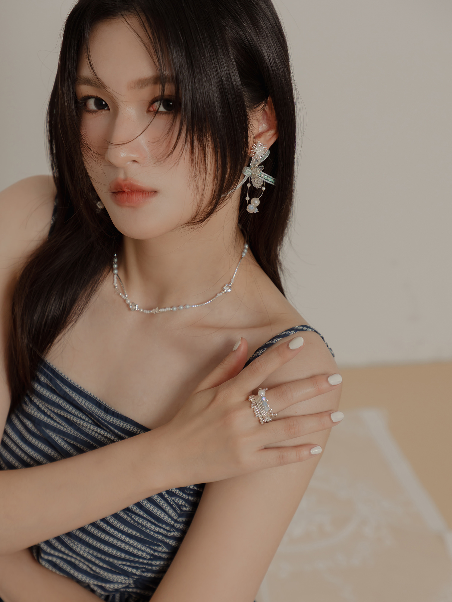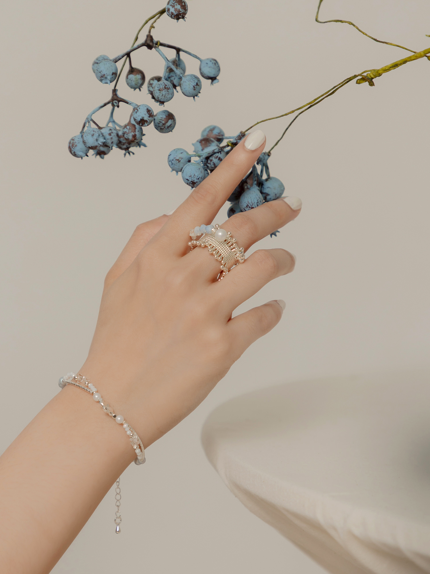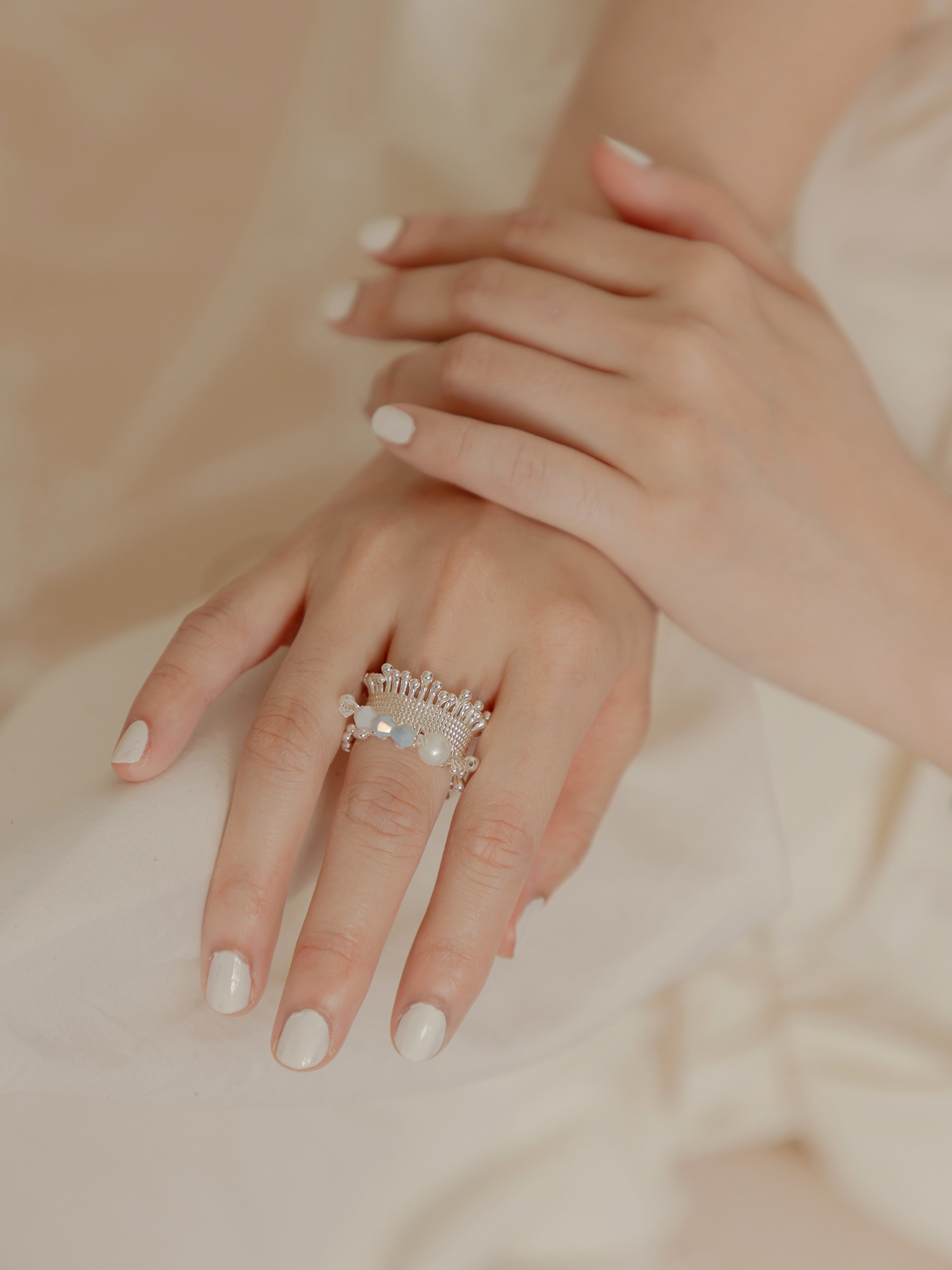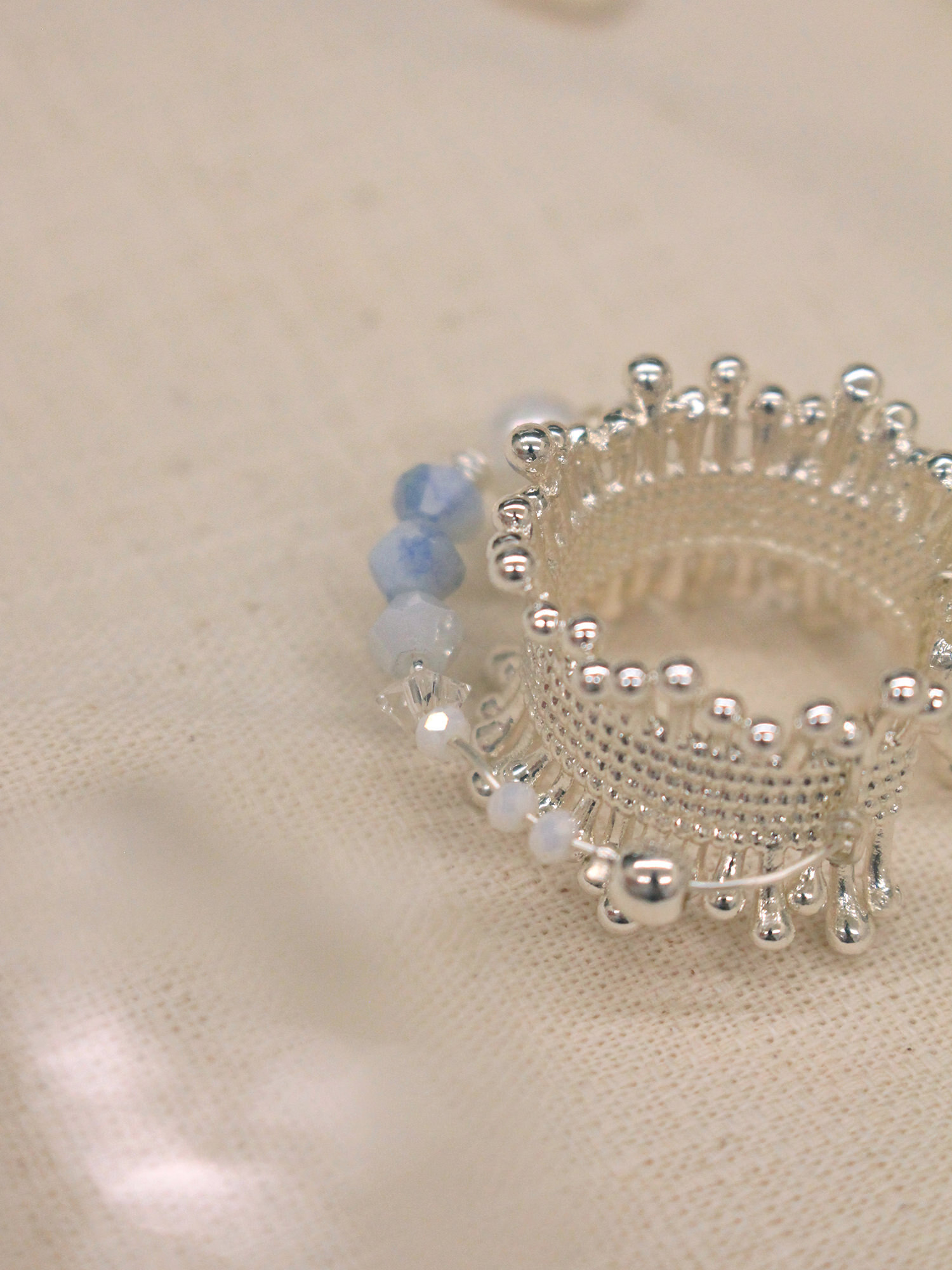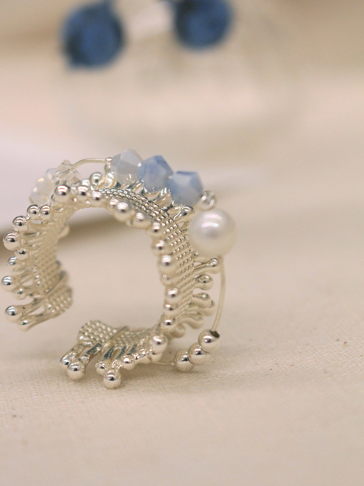 ▸ 素材:銅鍍銀、仿珠、三角水晶珠、串珠等複合材質